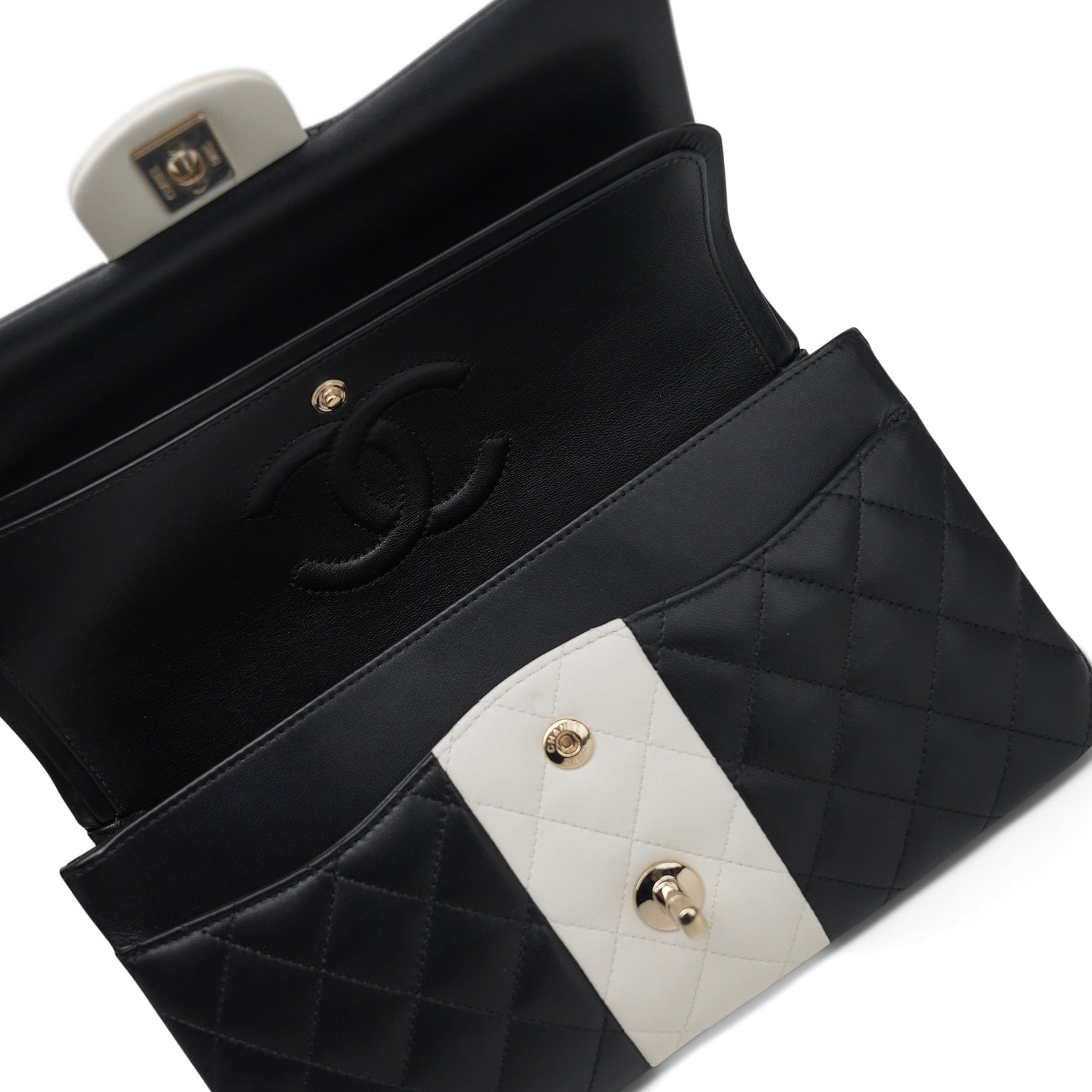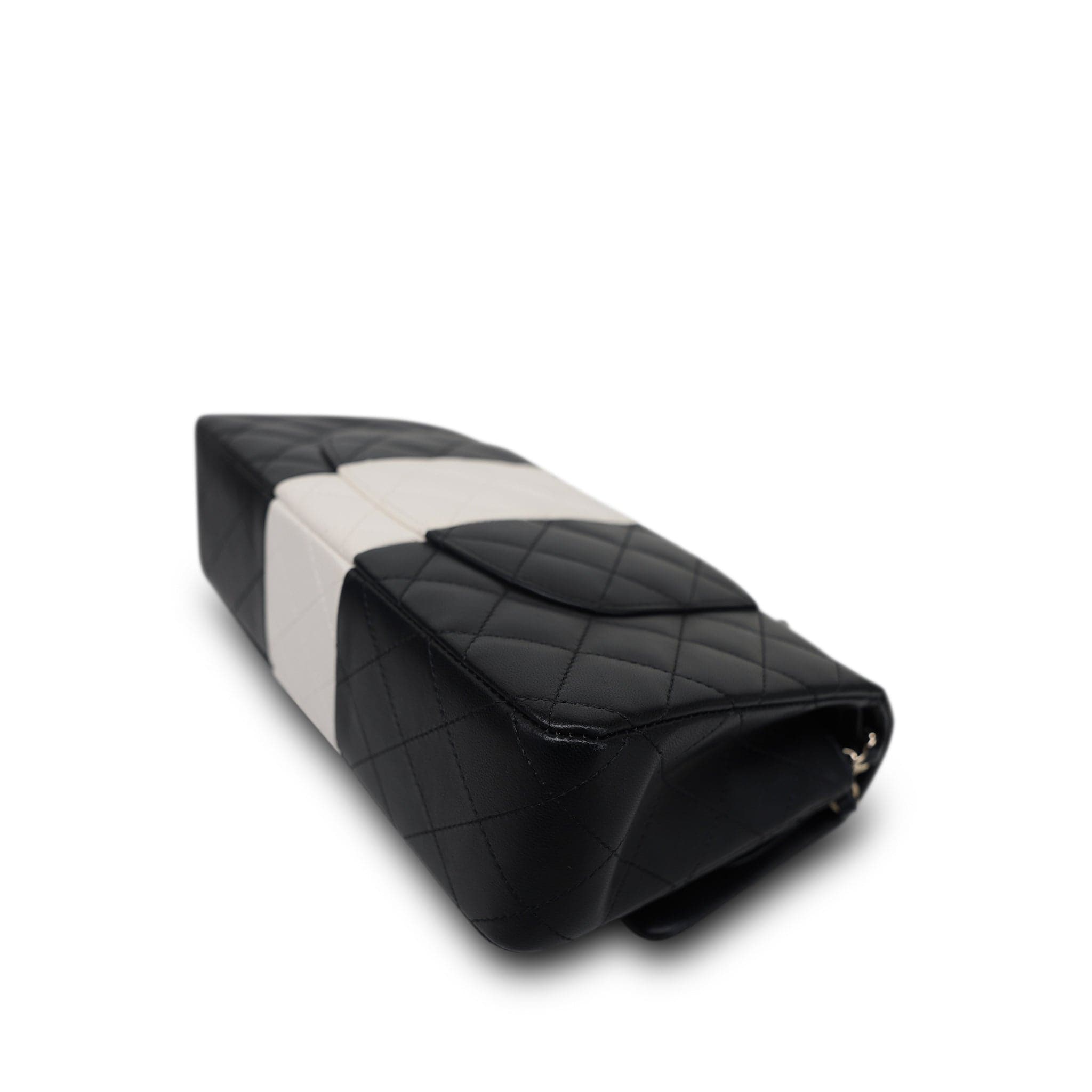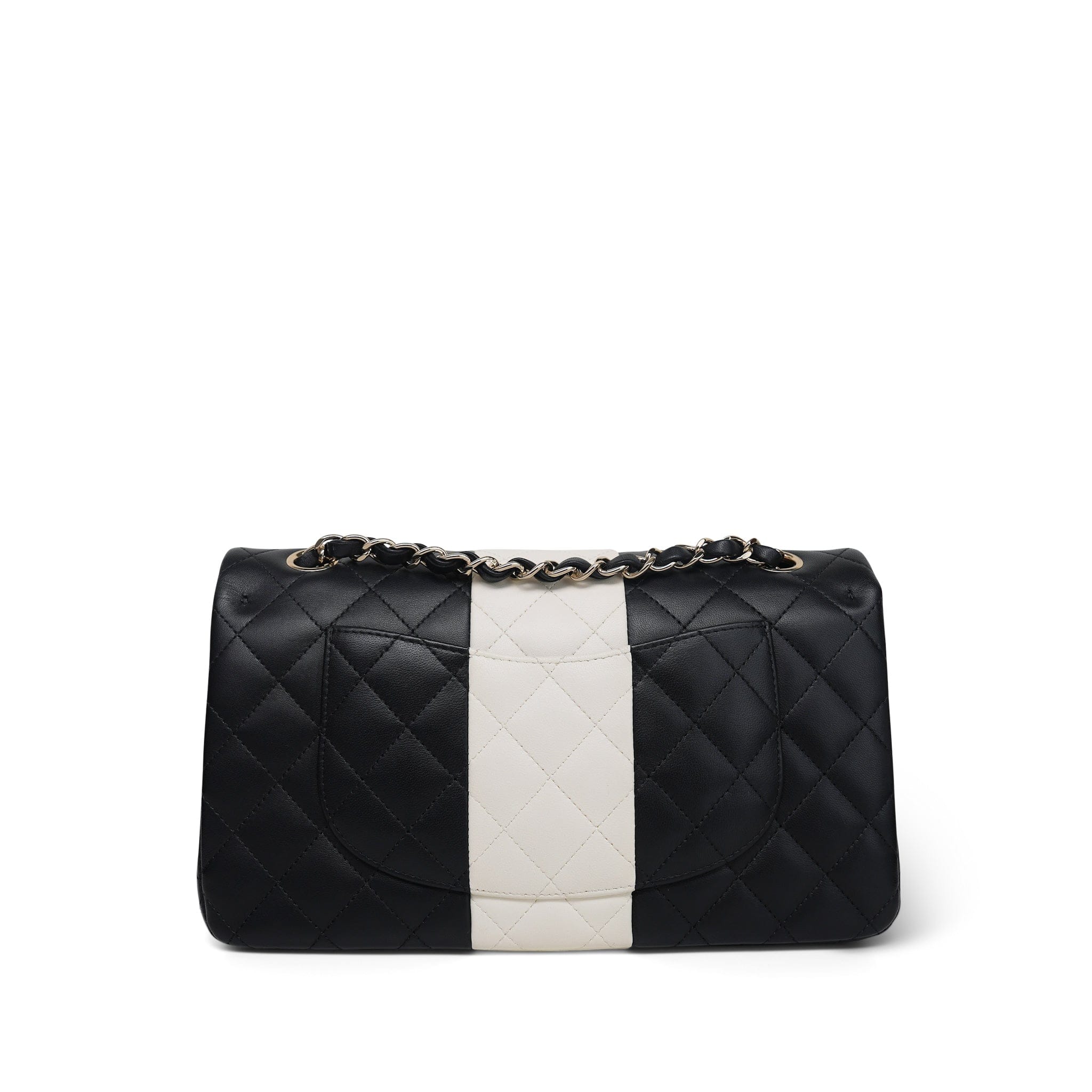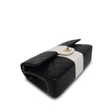 22C Black Lambskin White Stripe Quilted Classic Flap Medium LGHW