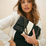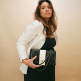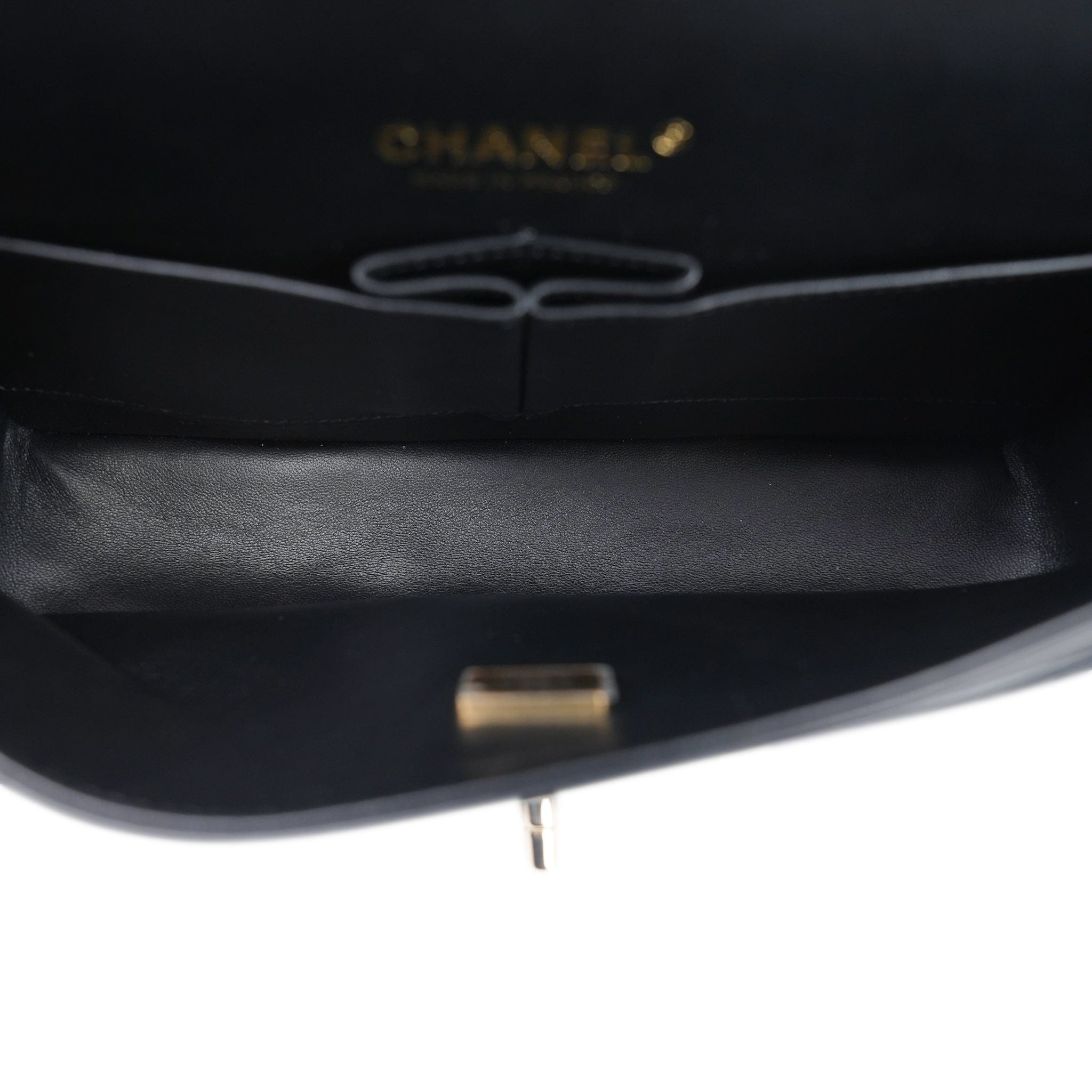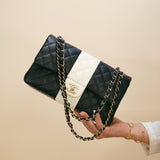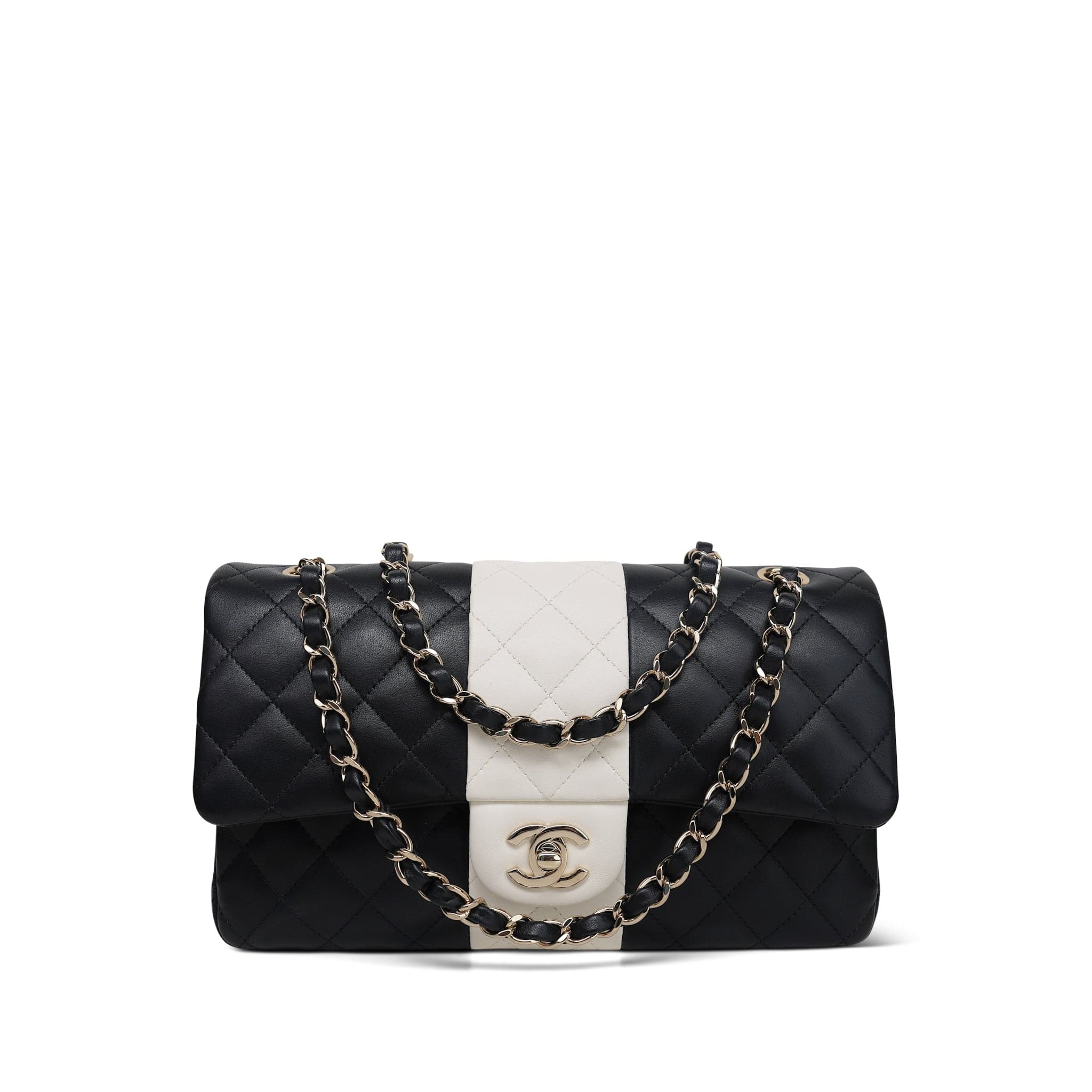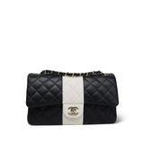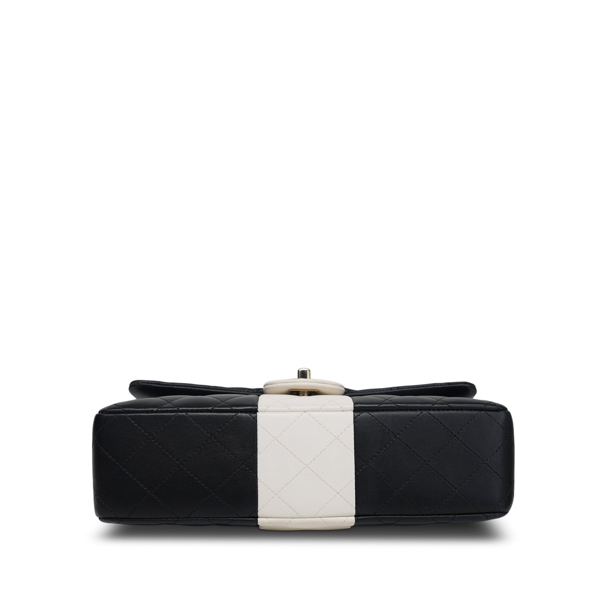 22C Black Lambskin White Stripe Quilted Classic Flap Medium LGHW
