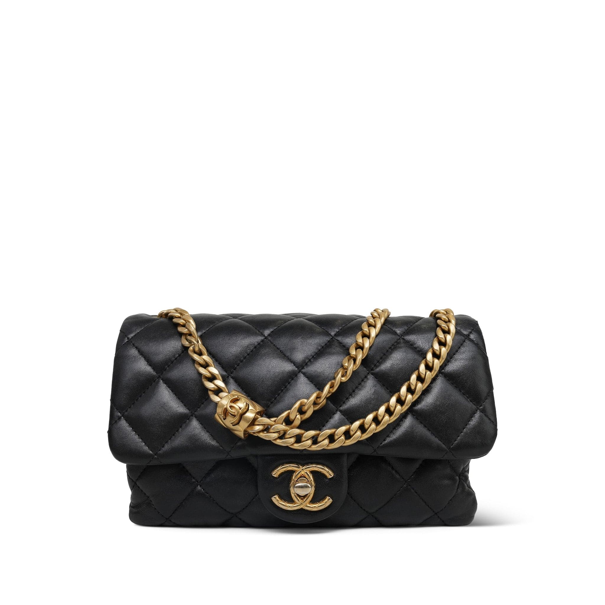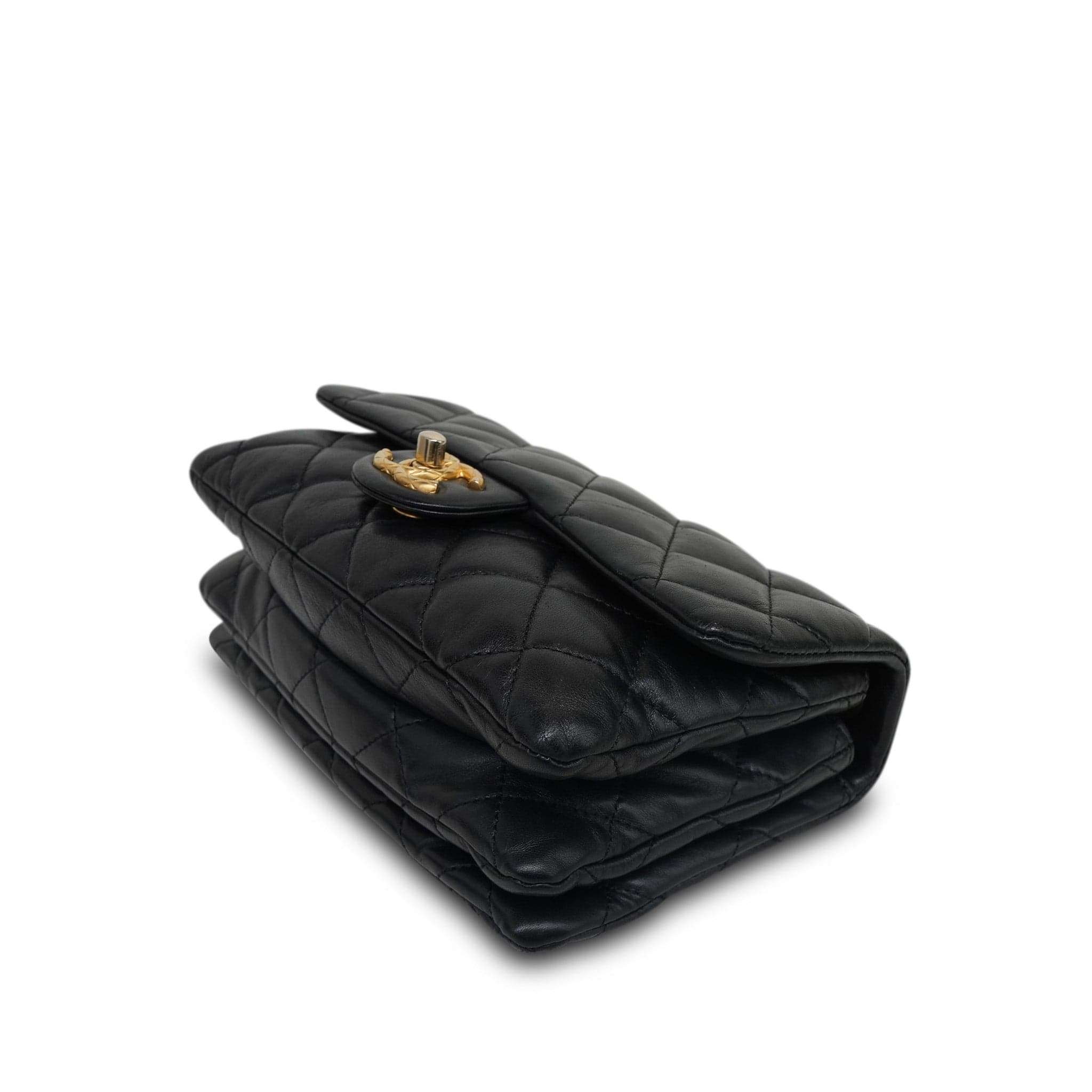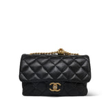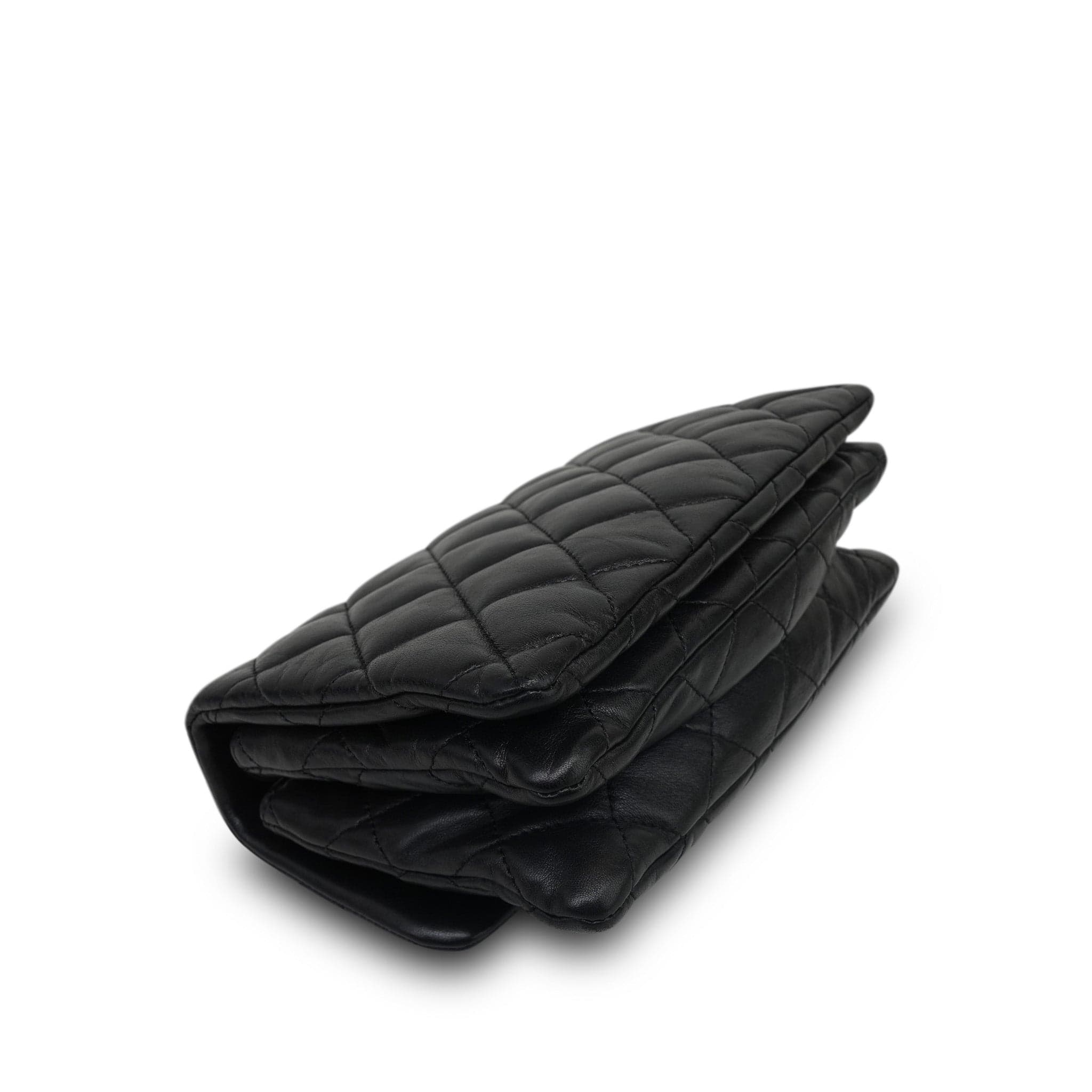 22K Black Lambskin Quilted Pillow Crush Single Flap AGHW