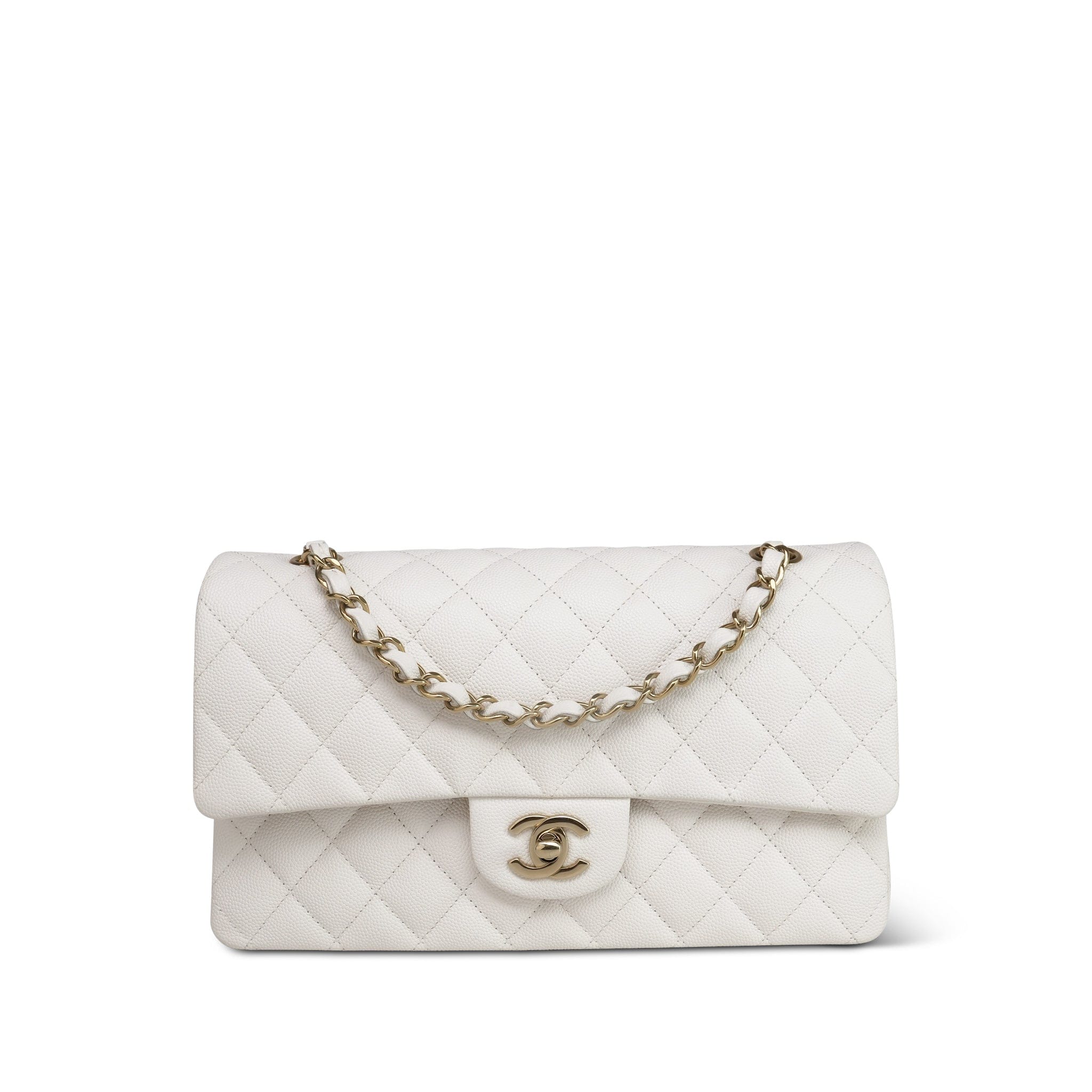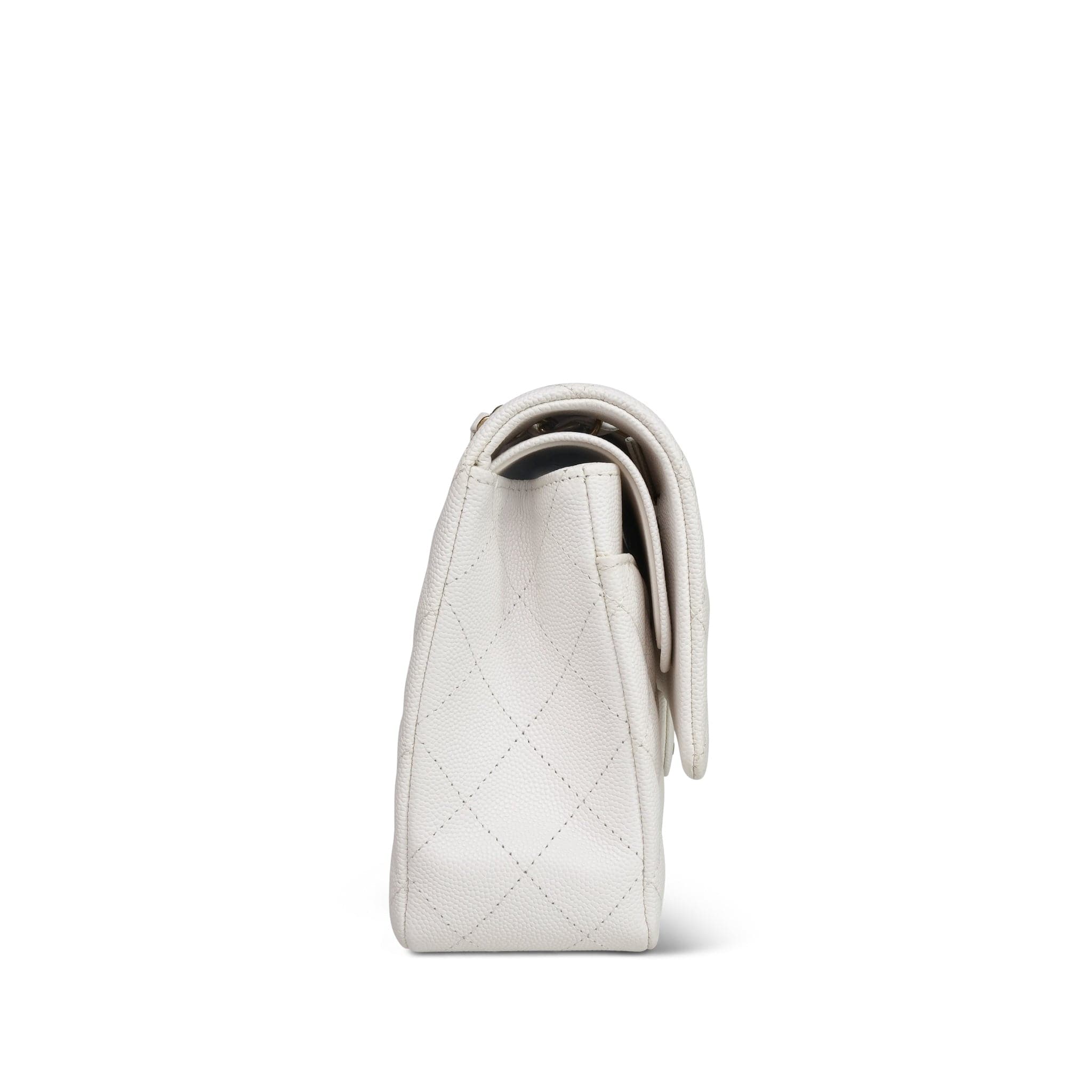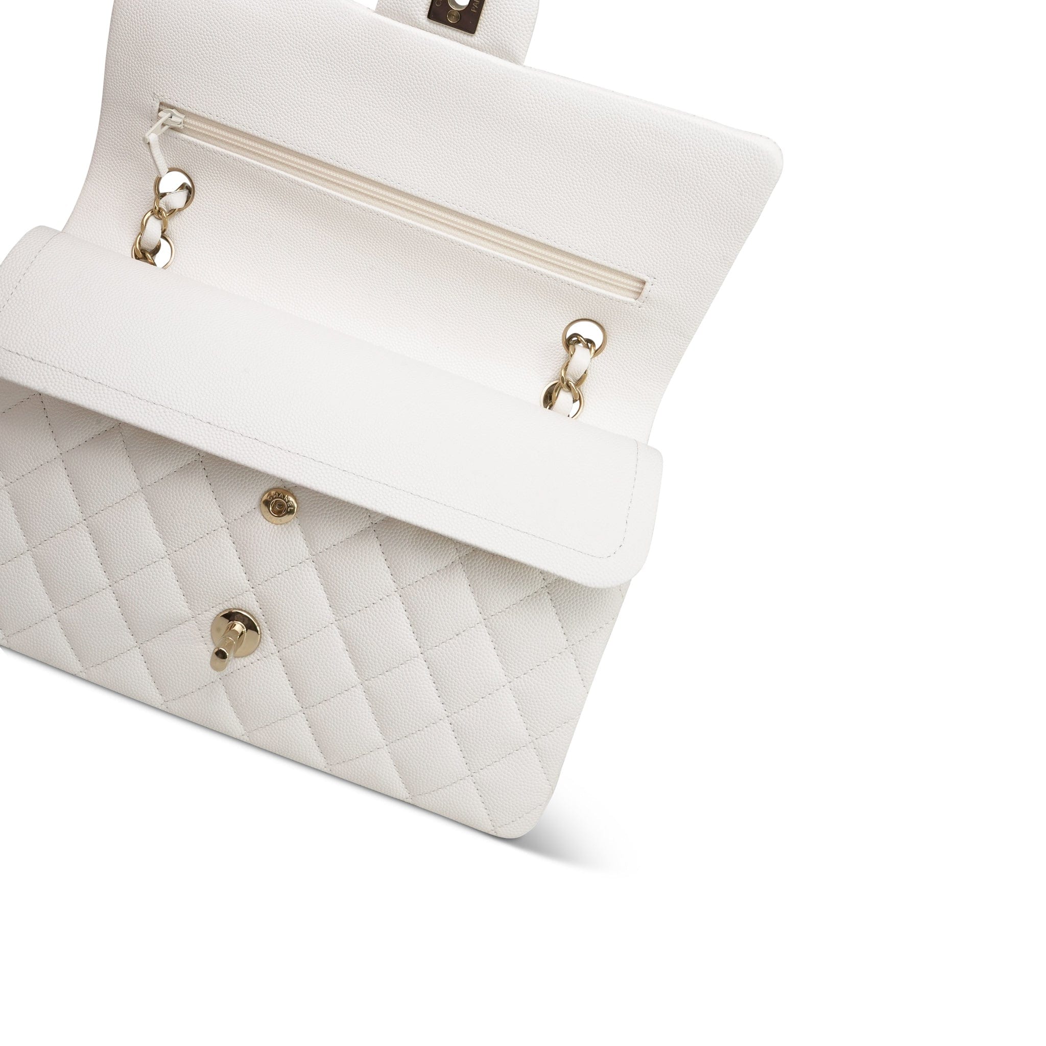 22K White Caviar Quilted Classic Flap Medium LGHW