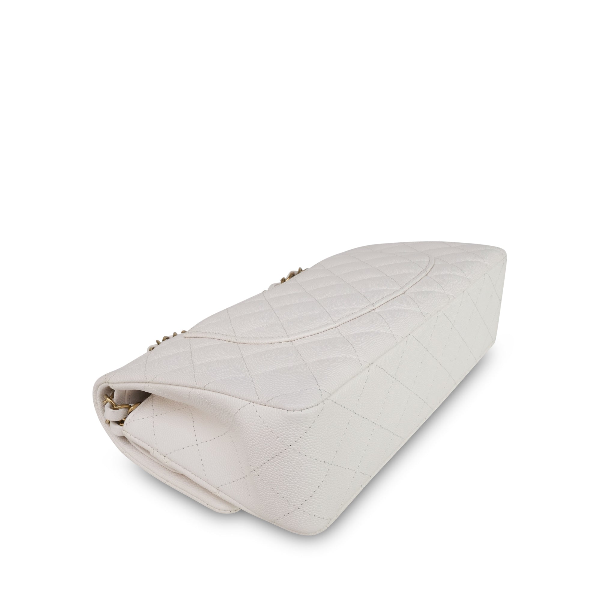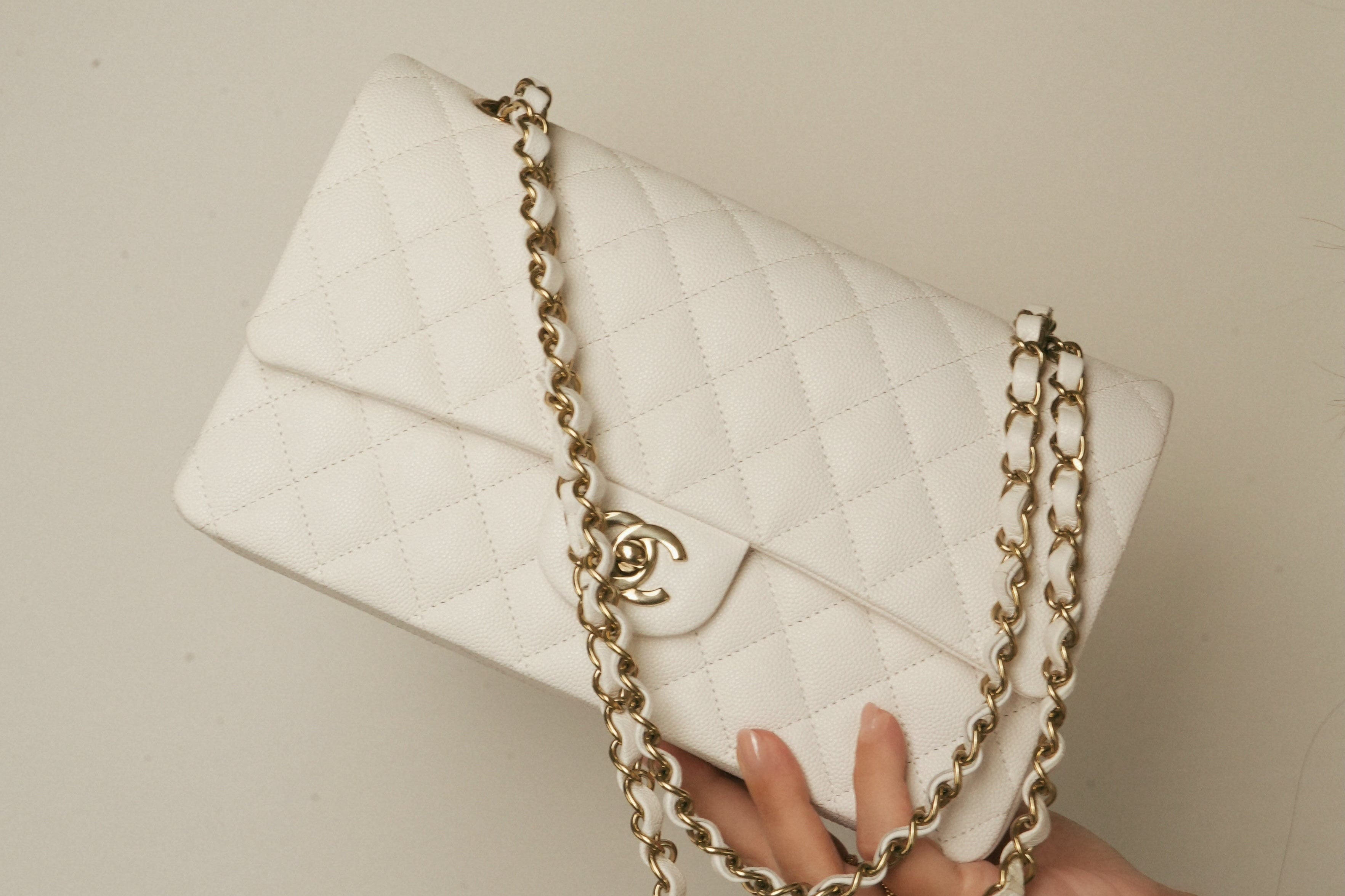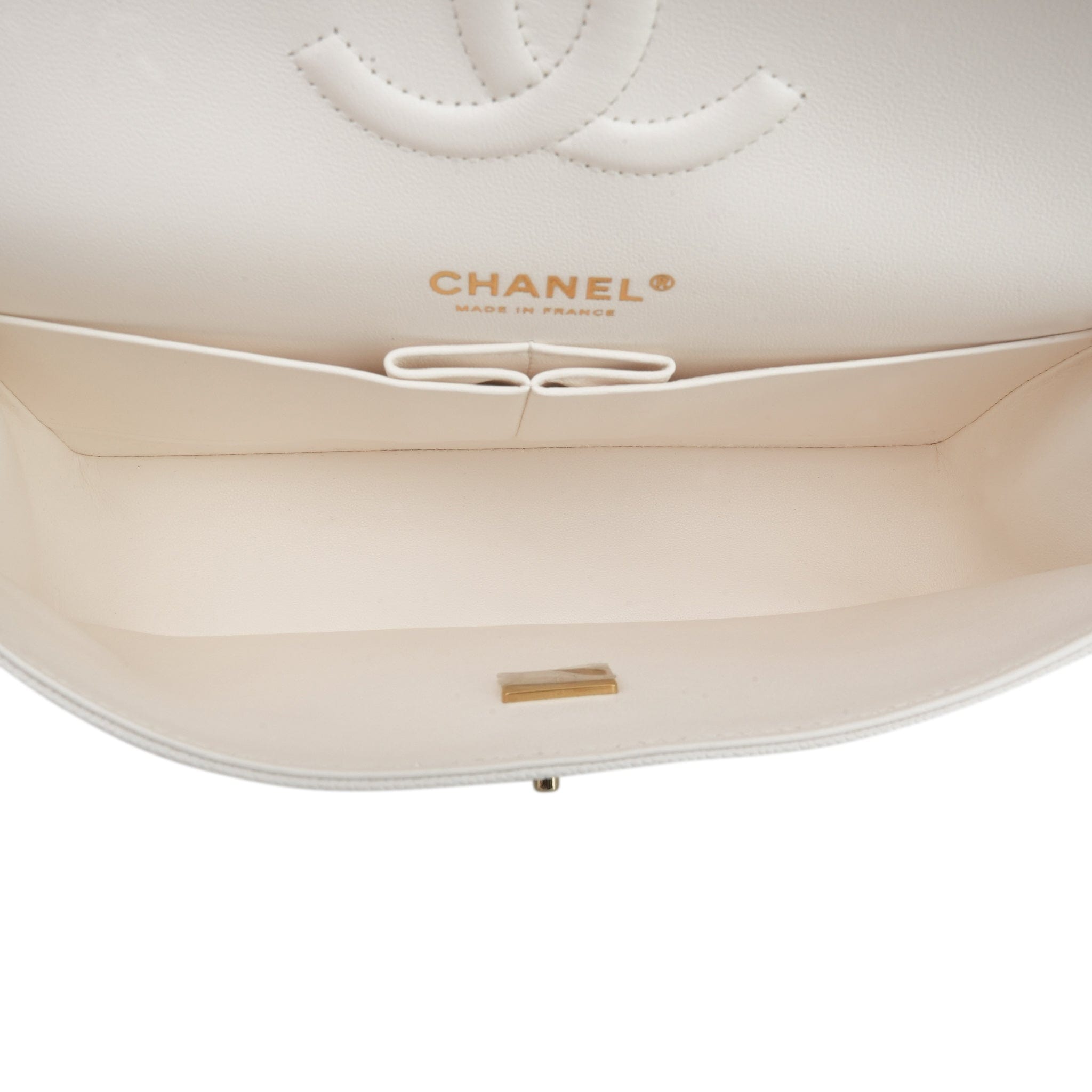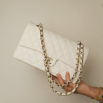 22K White Caviar Quilted Classic Flap Medium LGHW
