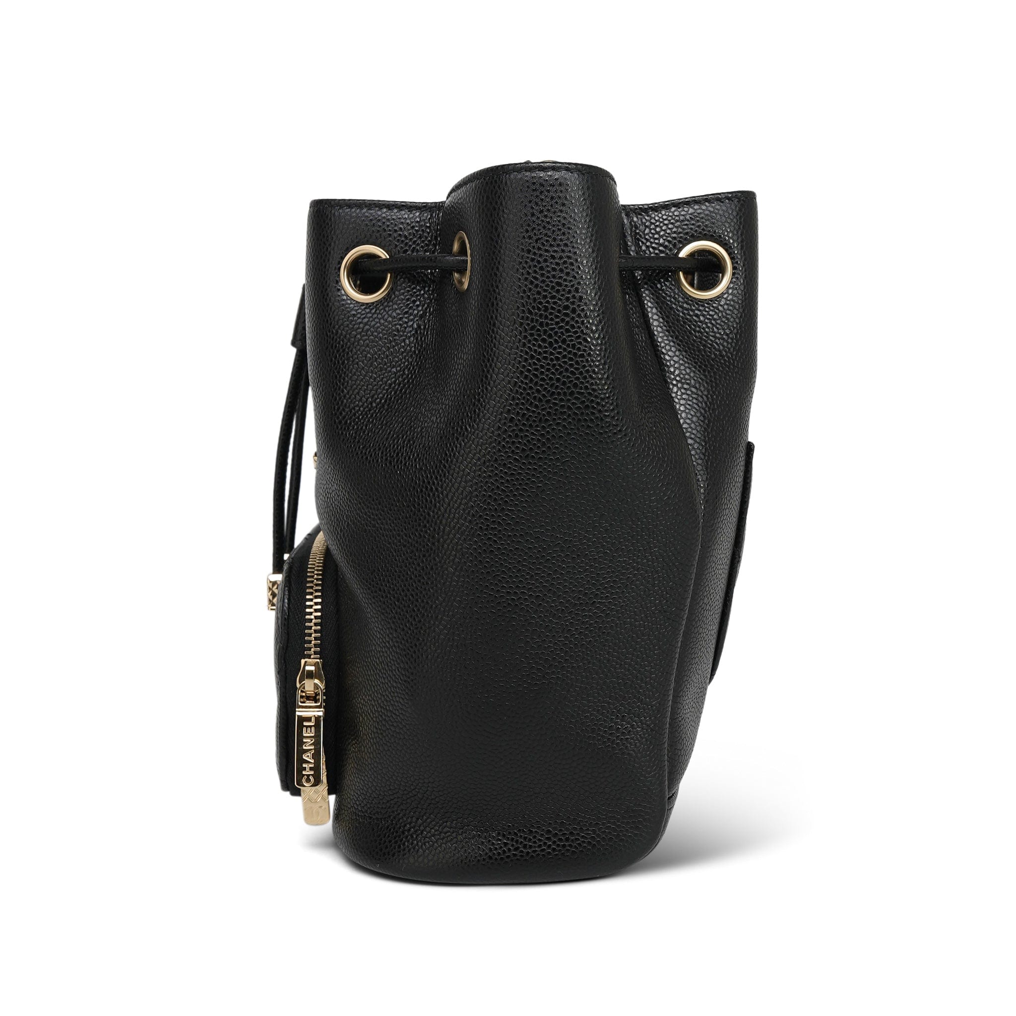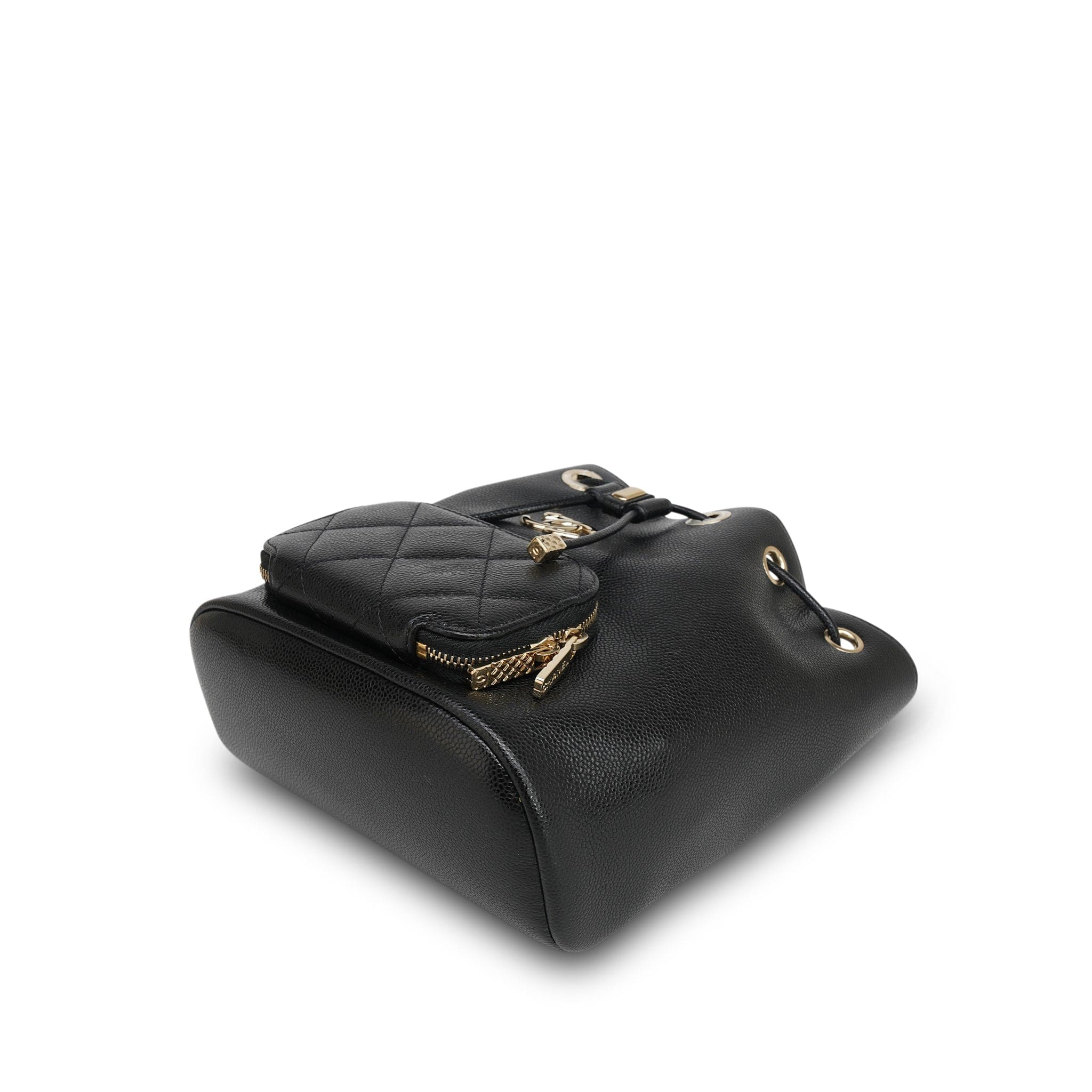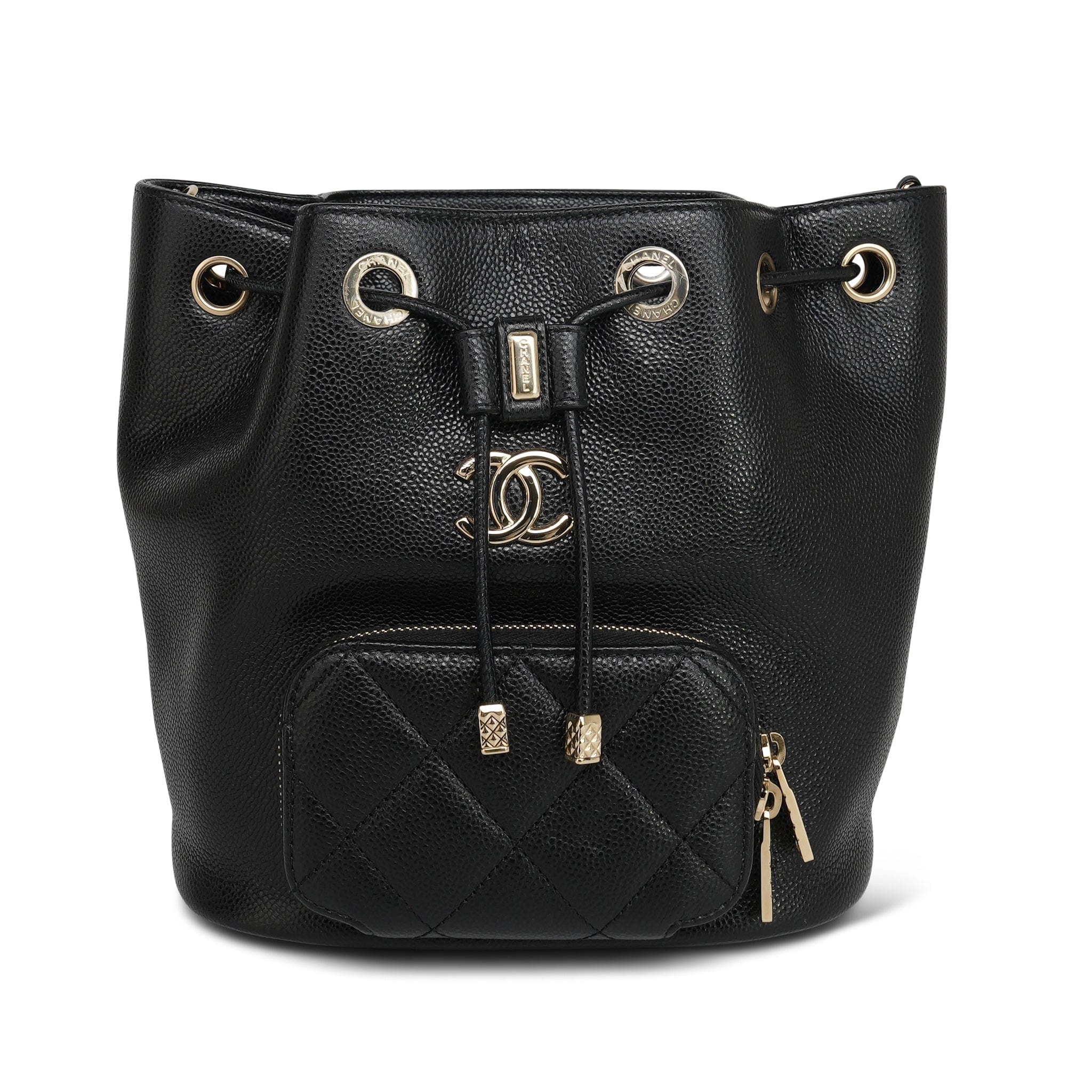 22P Black Caviar Quilted Business Affinity Bucket Bag Small LGHW