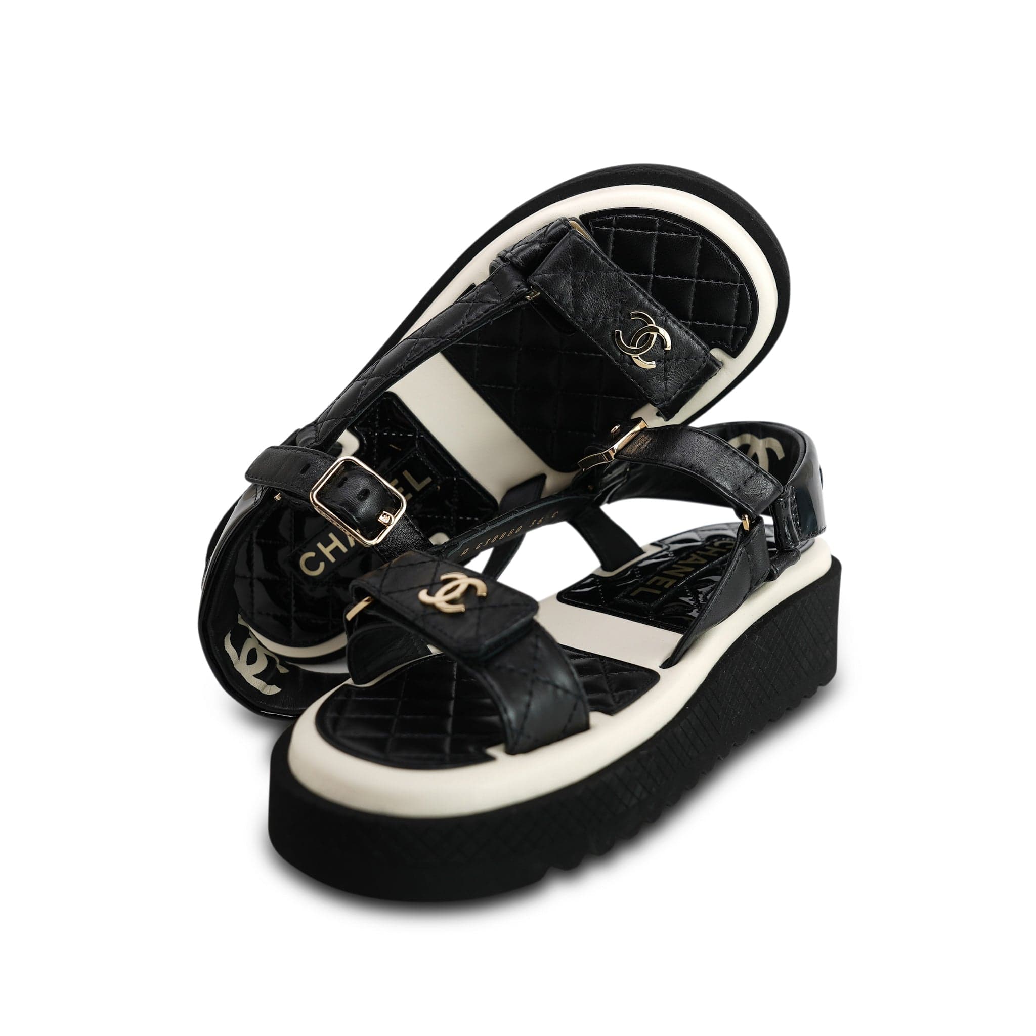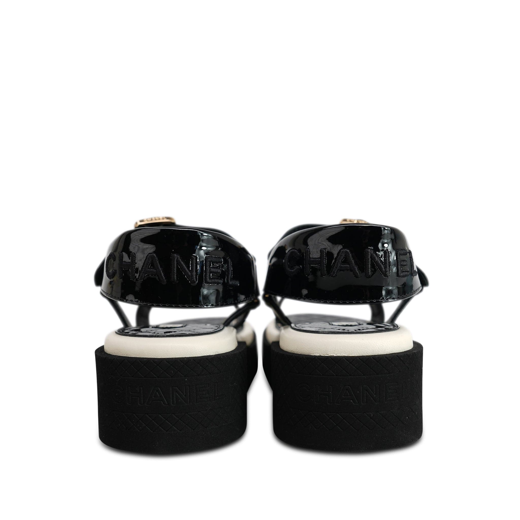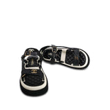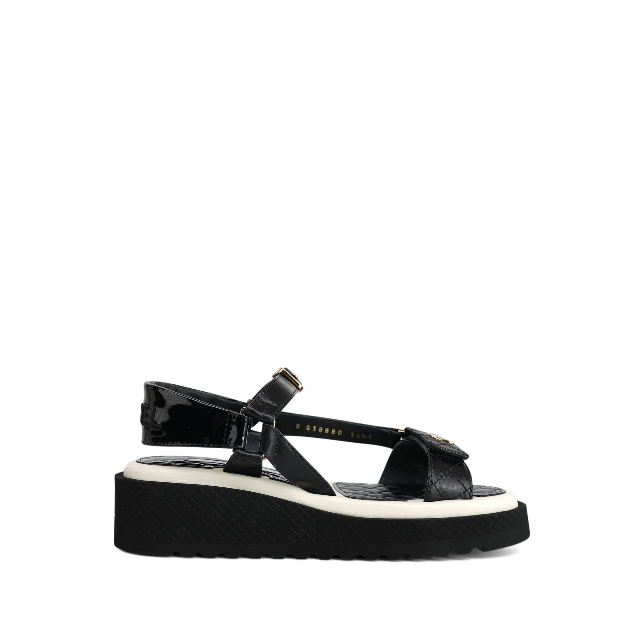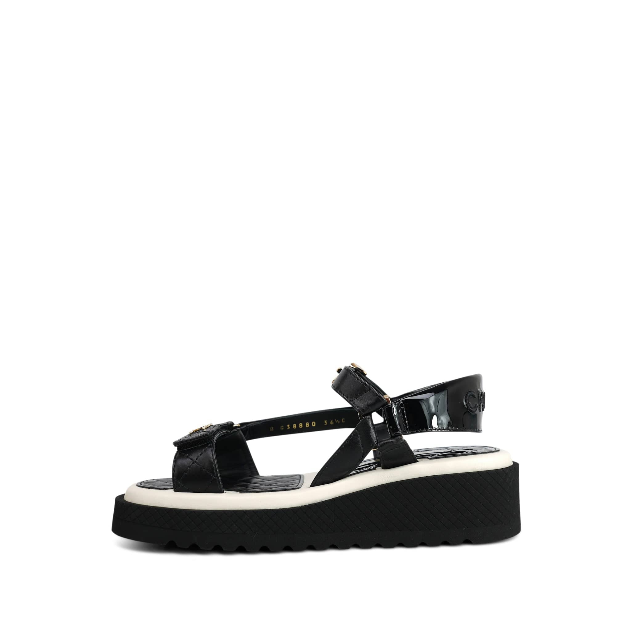 22P Black White Lambskin & Patent CC Platform Sandals Size 36.5