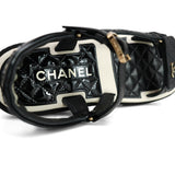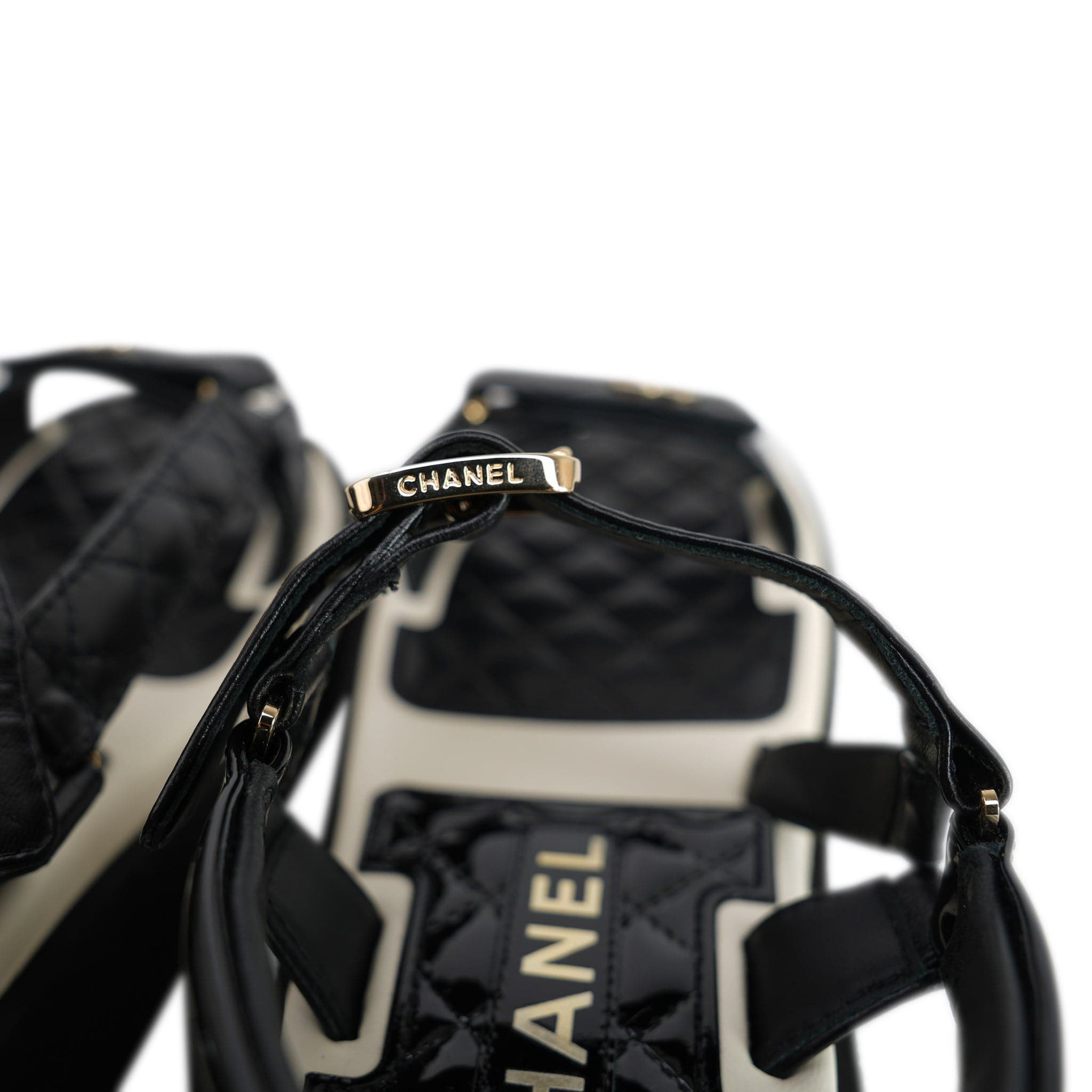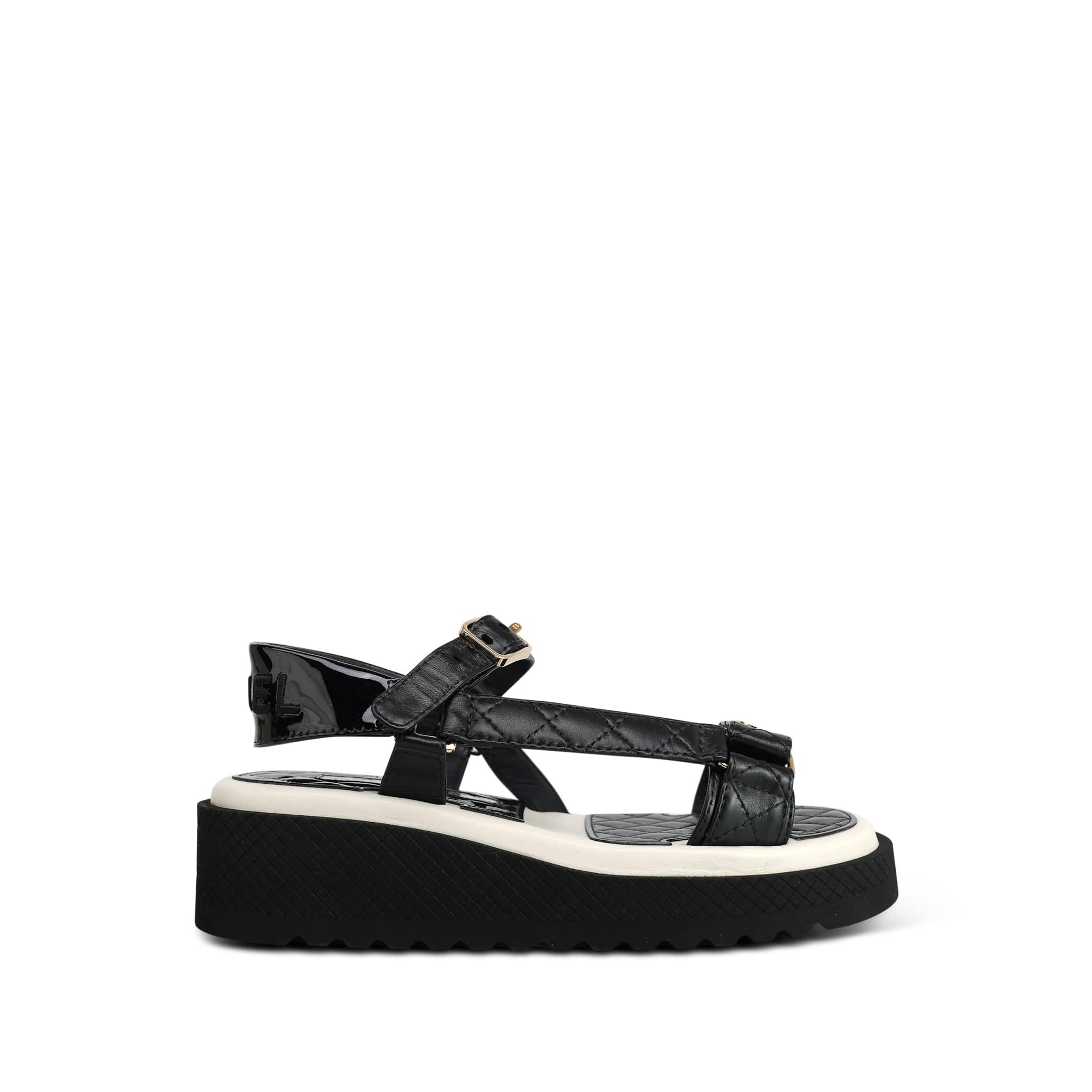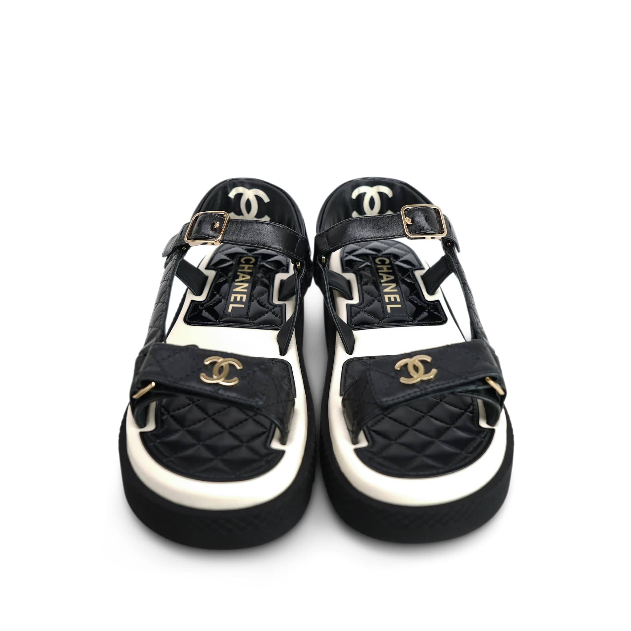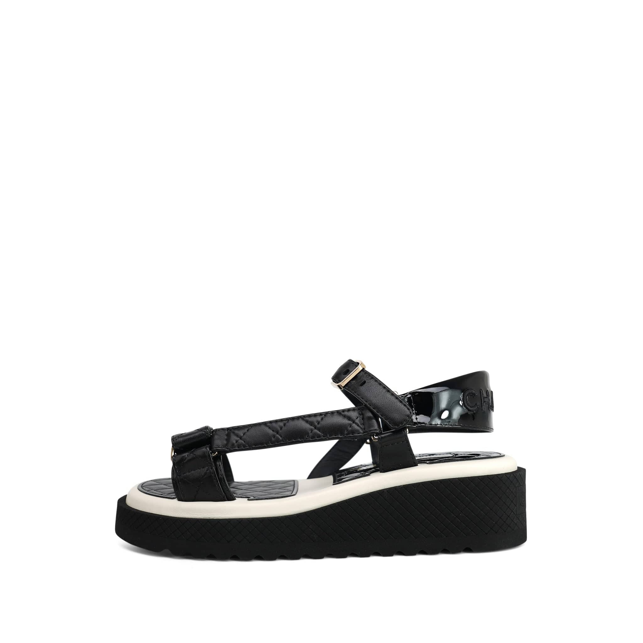 22P Black White Lambskin & Patent CC Platform Sandals Size 36.5