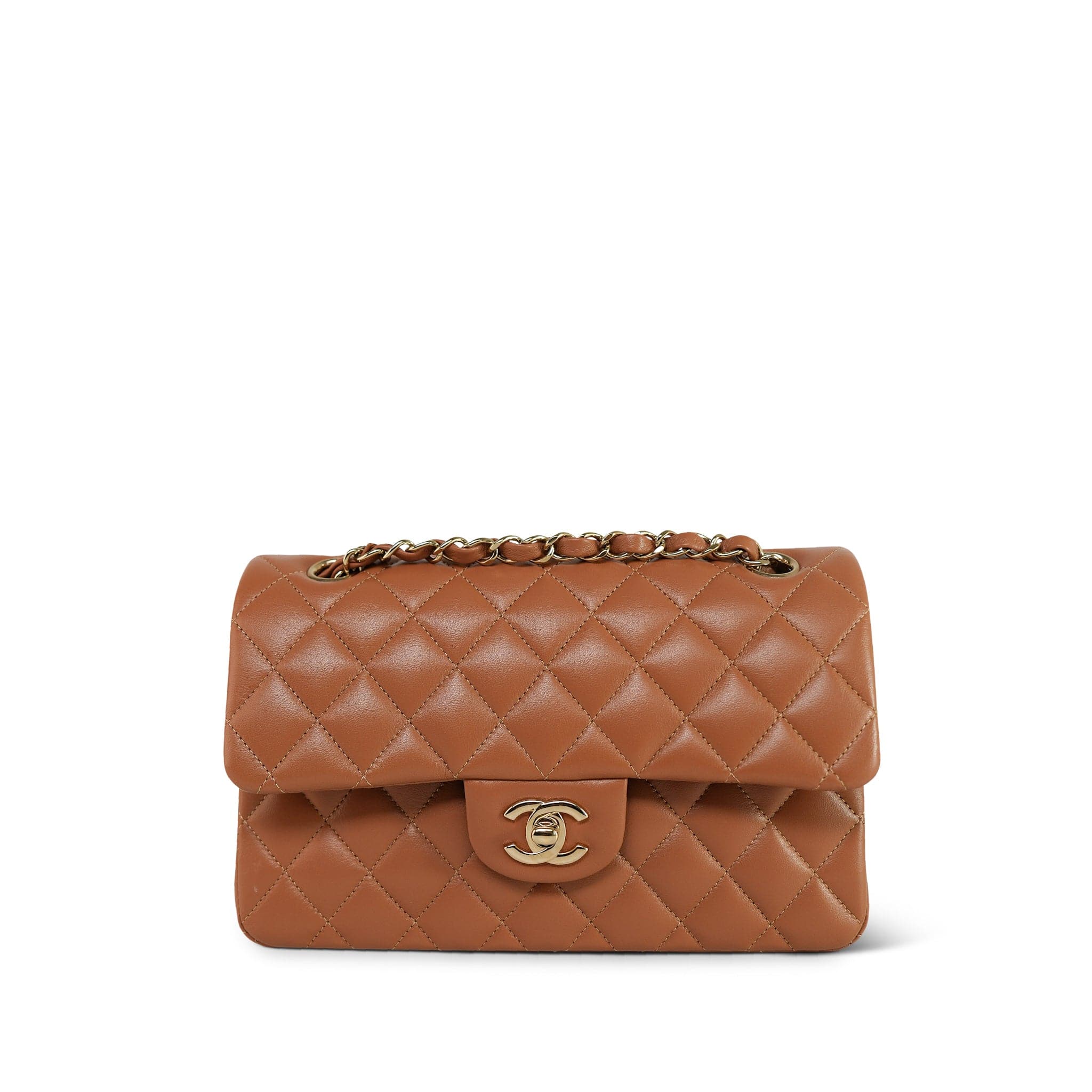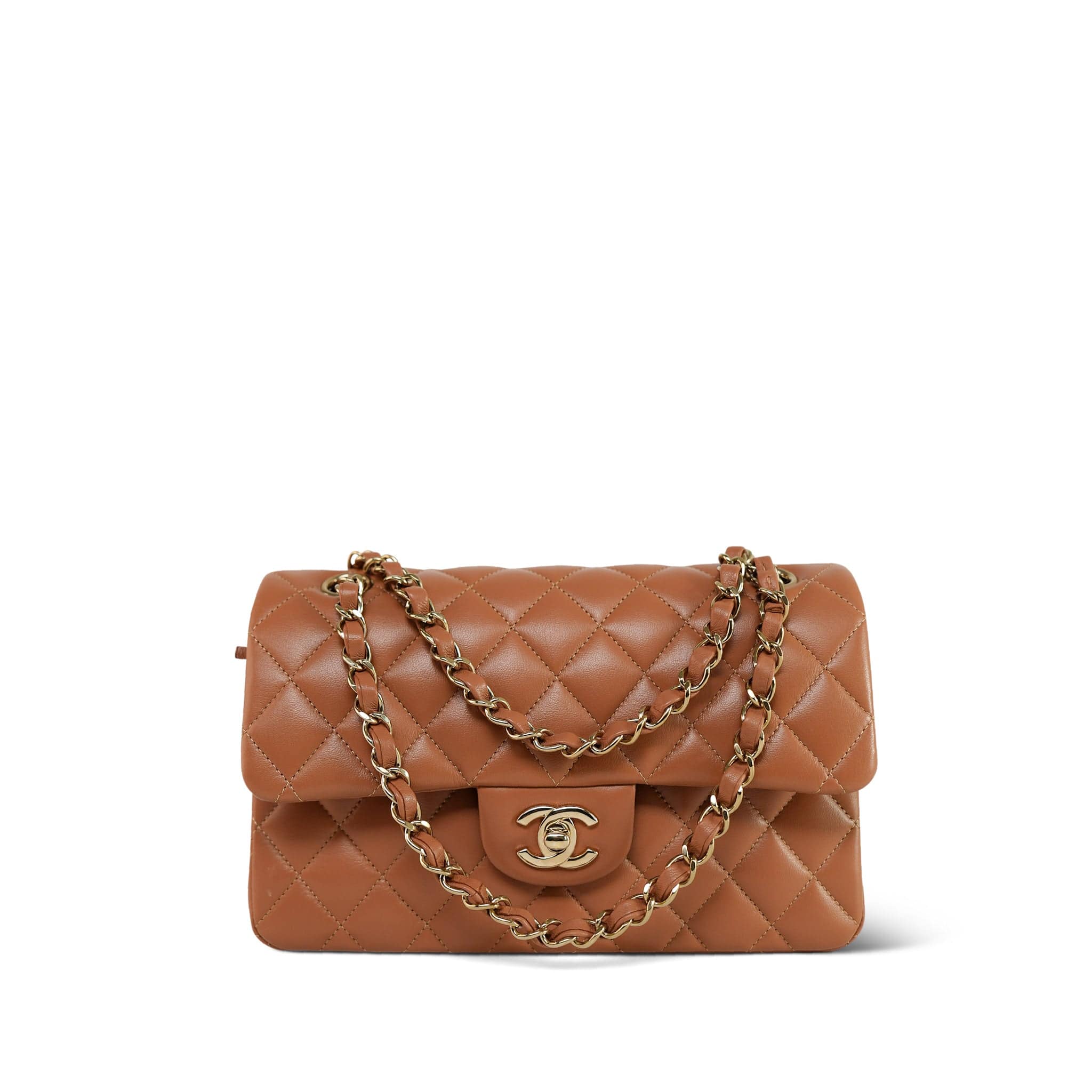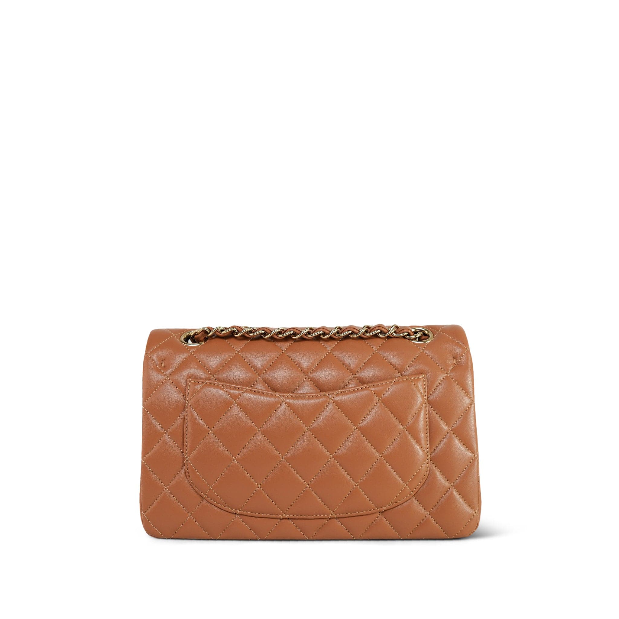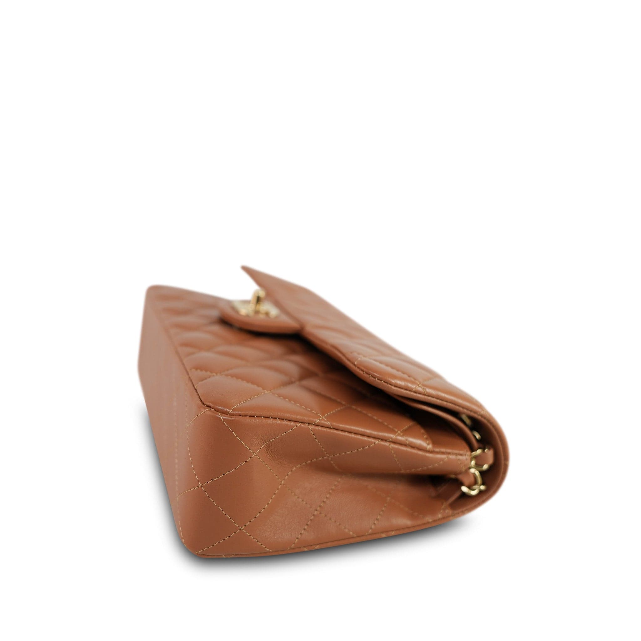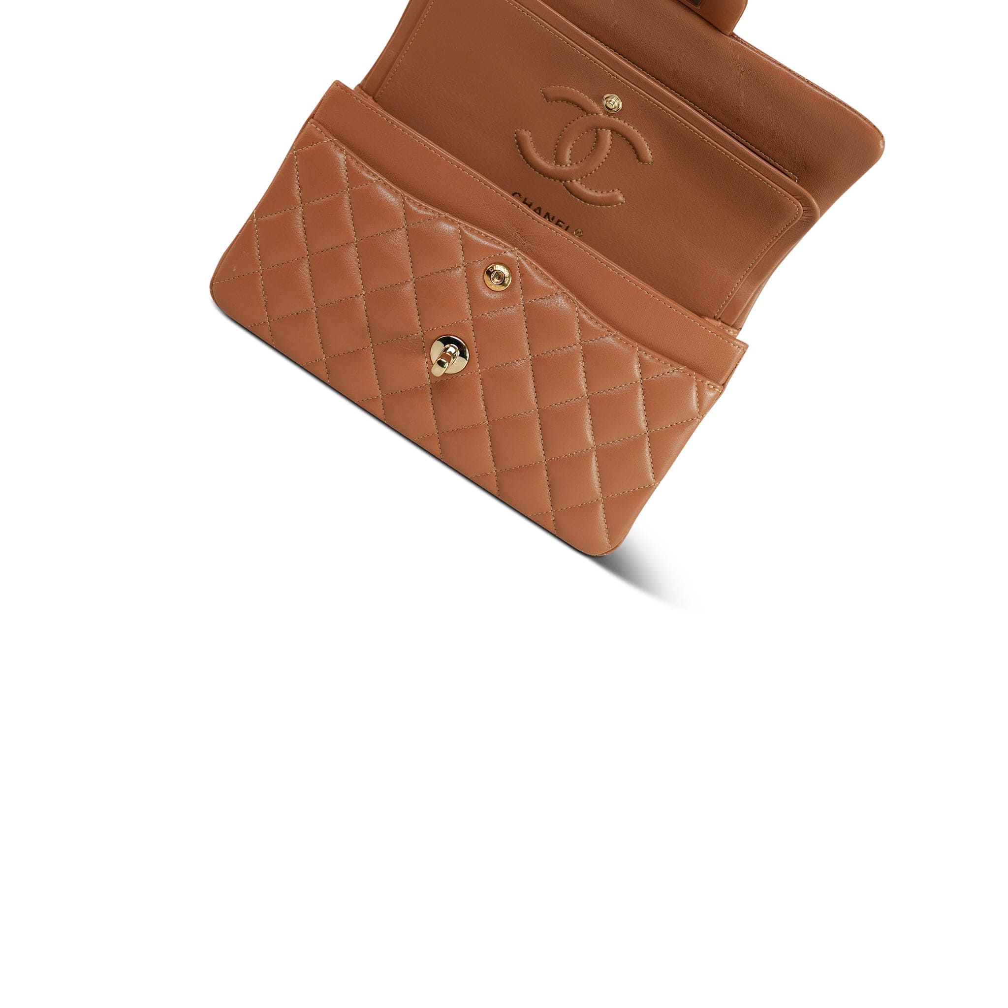 22S Caramel Lambskin Quilted Double Flap Small LGHW