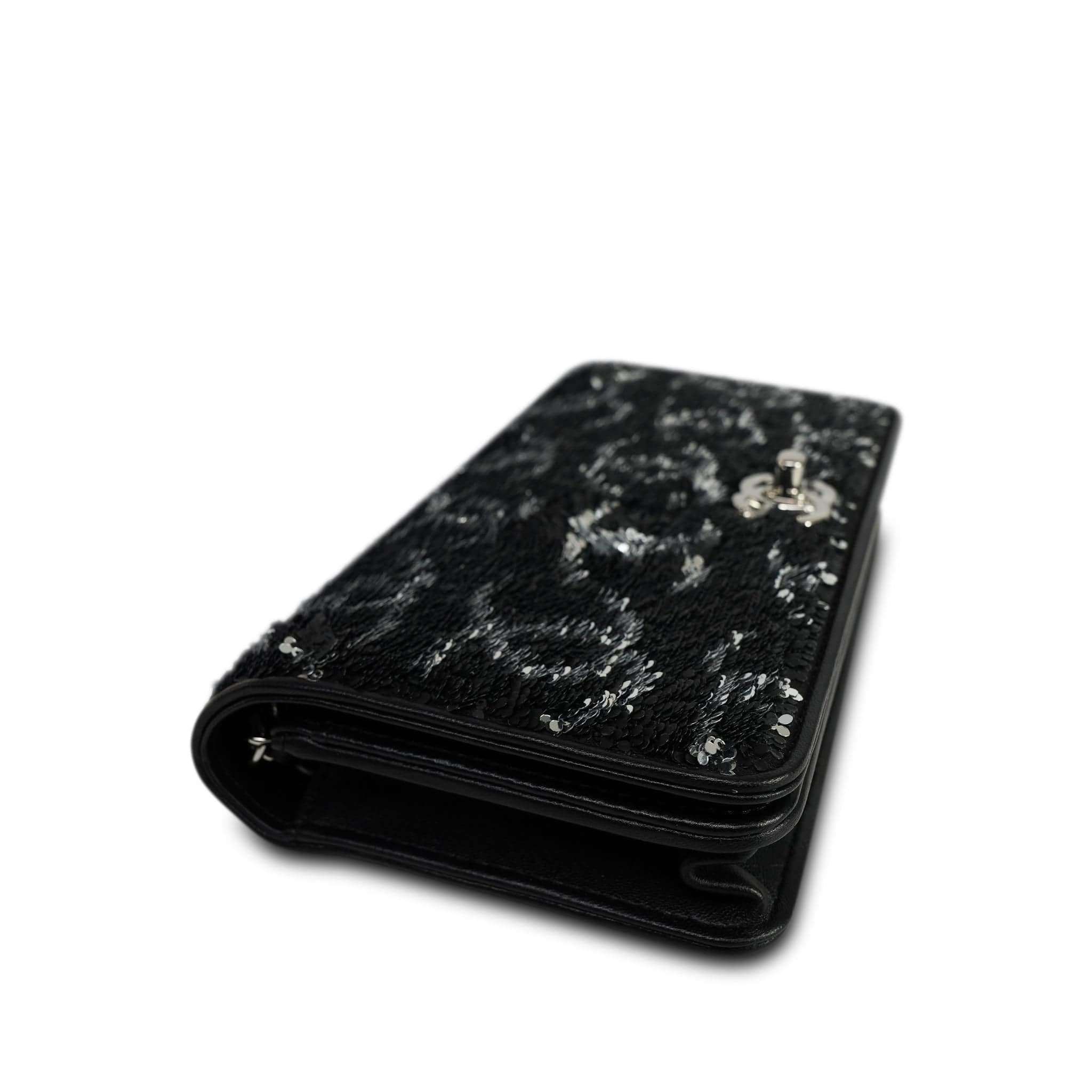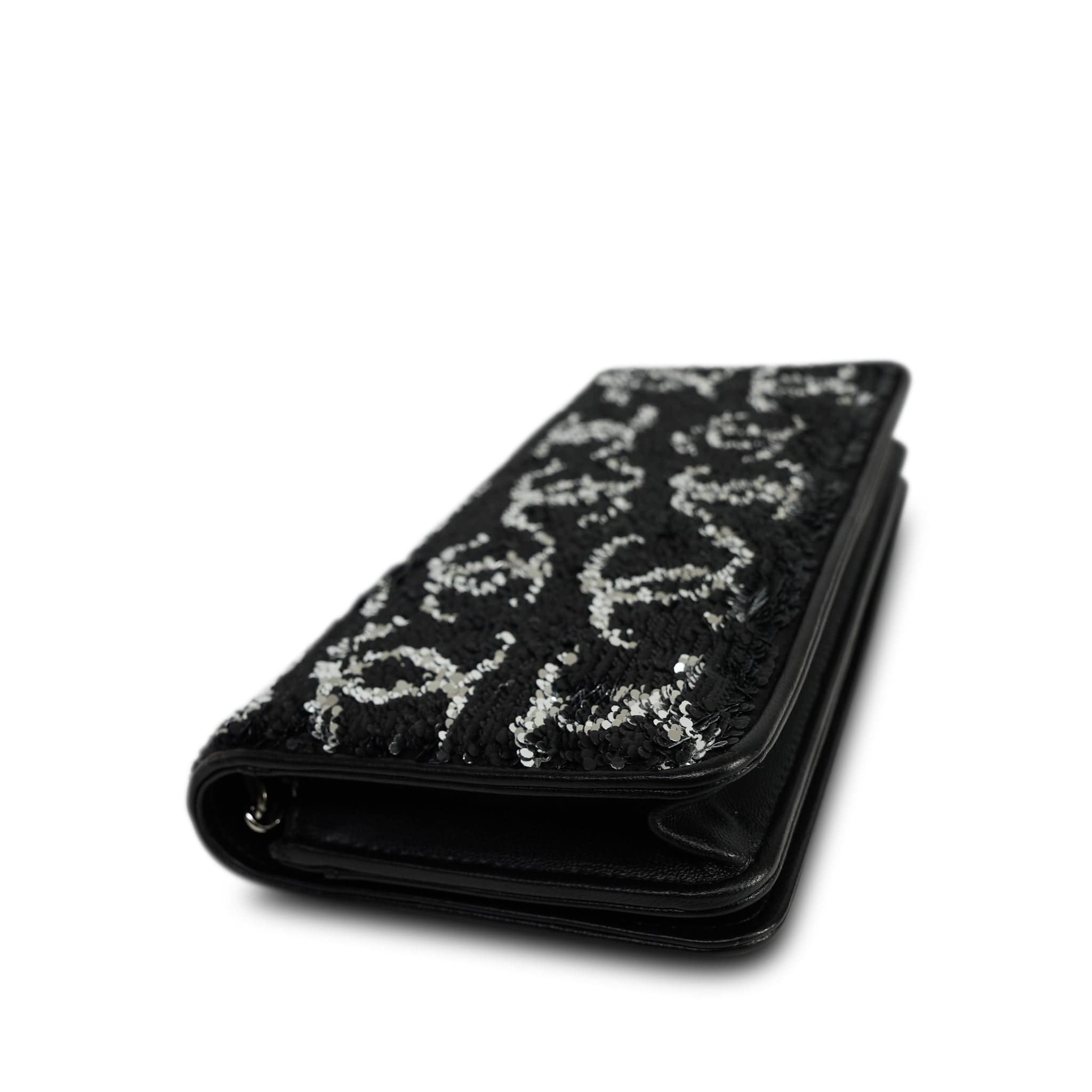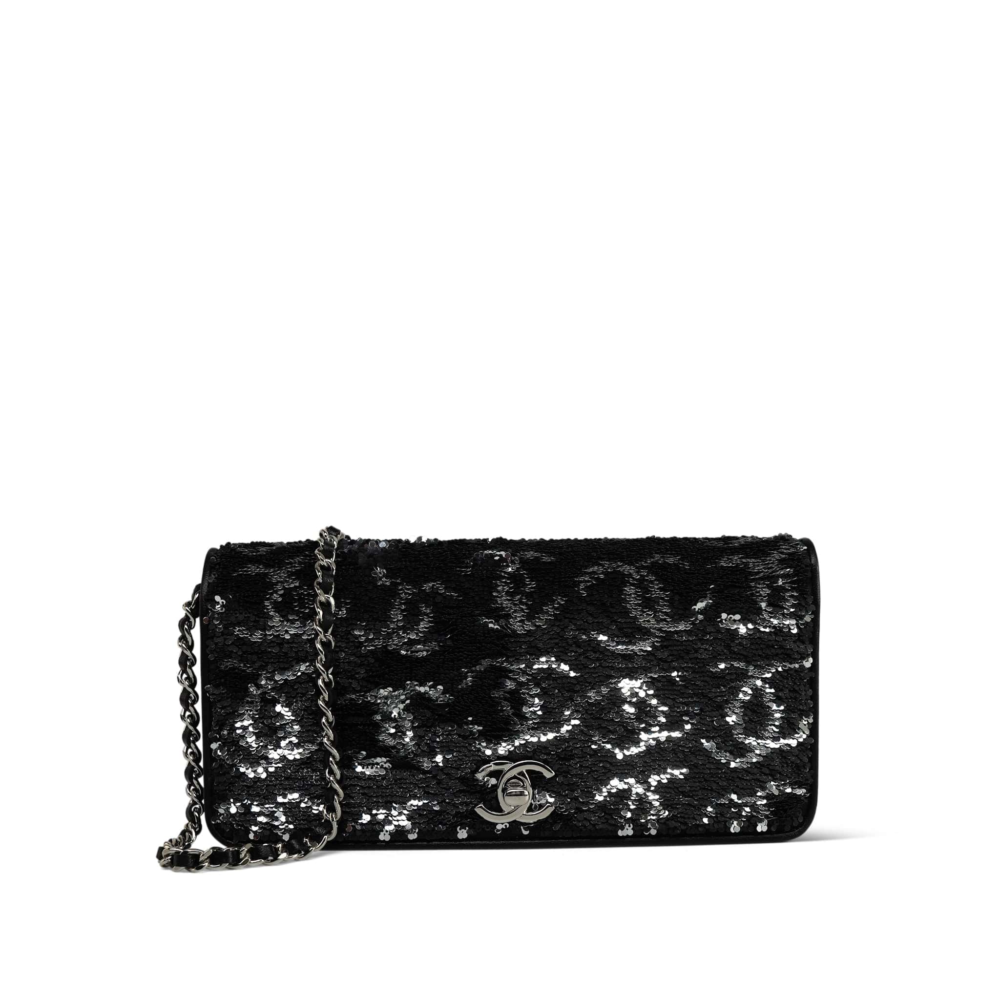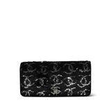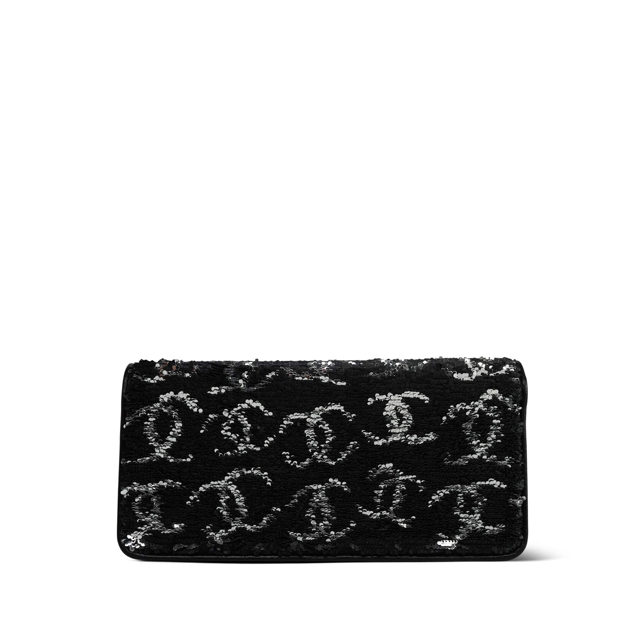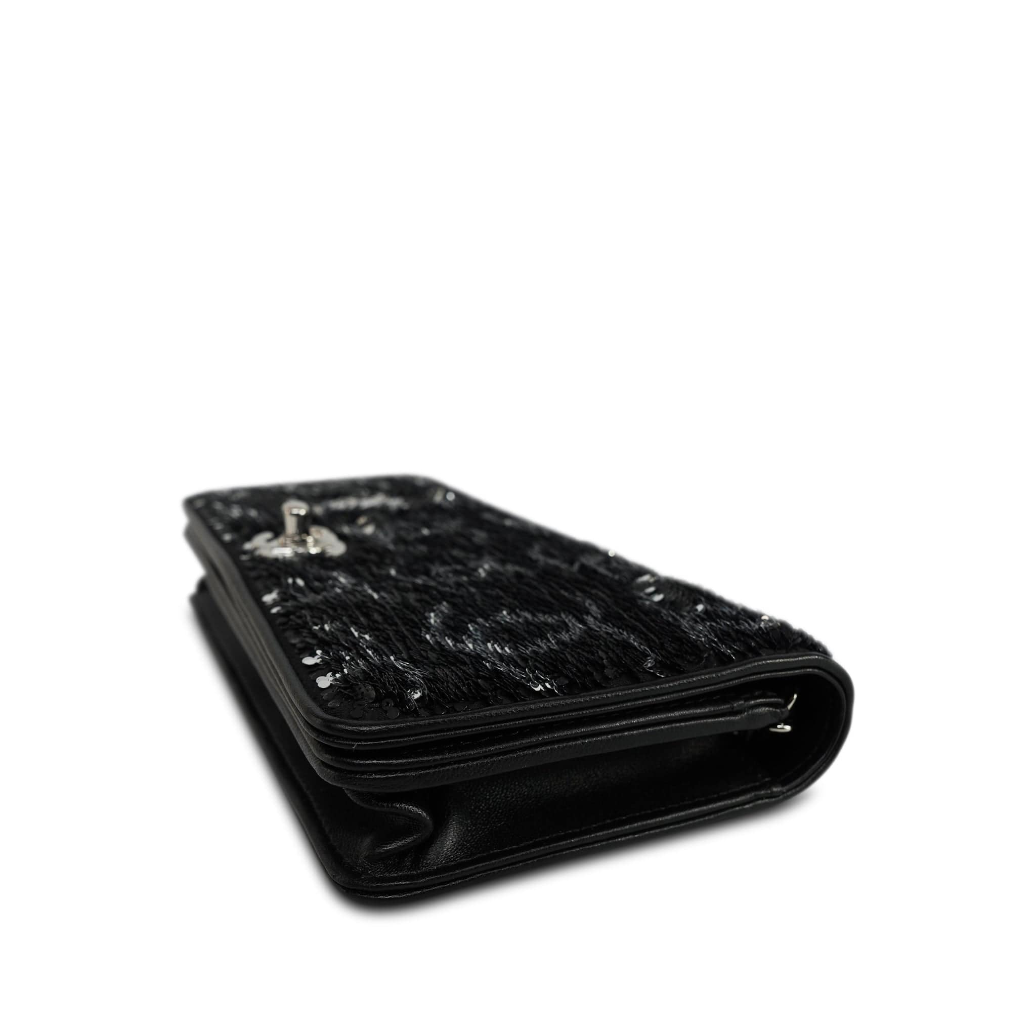 23B Black Silver CC Logo Sequin Clutch On Chain Silver Hardware