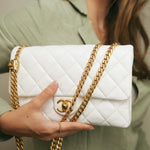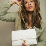 23B White Lambskin Quilted Pillow Crush Single Flap Aged Gold Hardware
