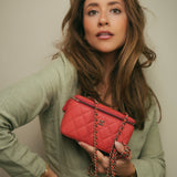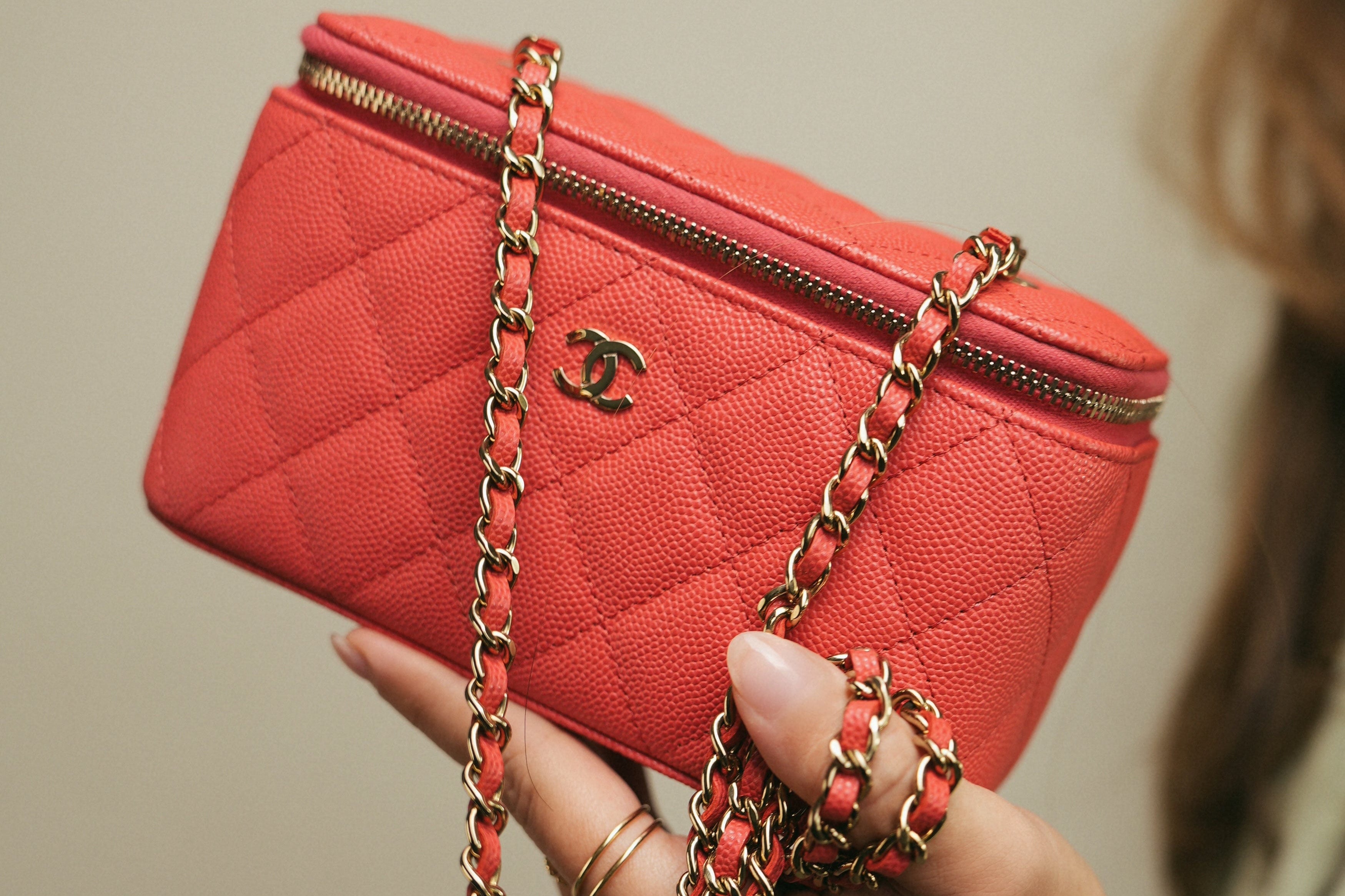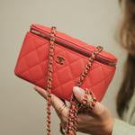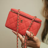 23C Red Caviar Quilted Classic Vanity Case With Chain LGHW