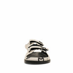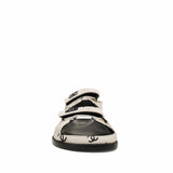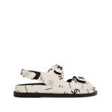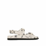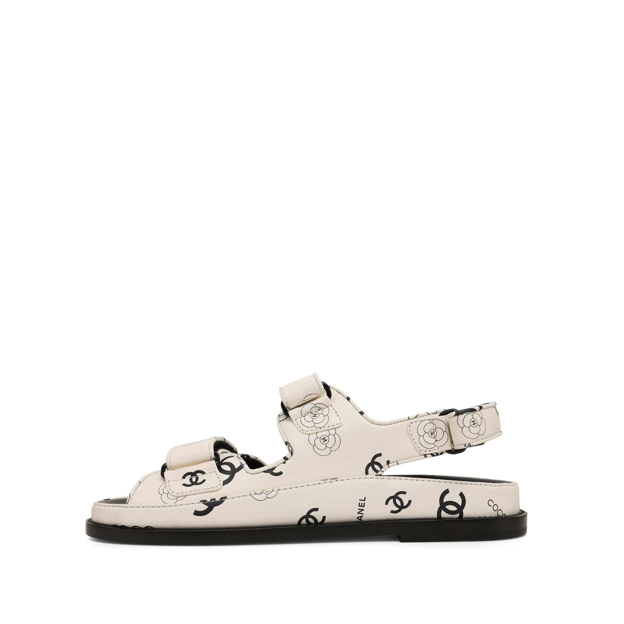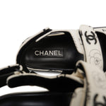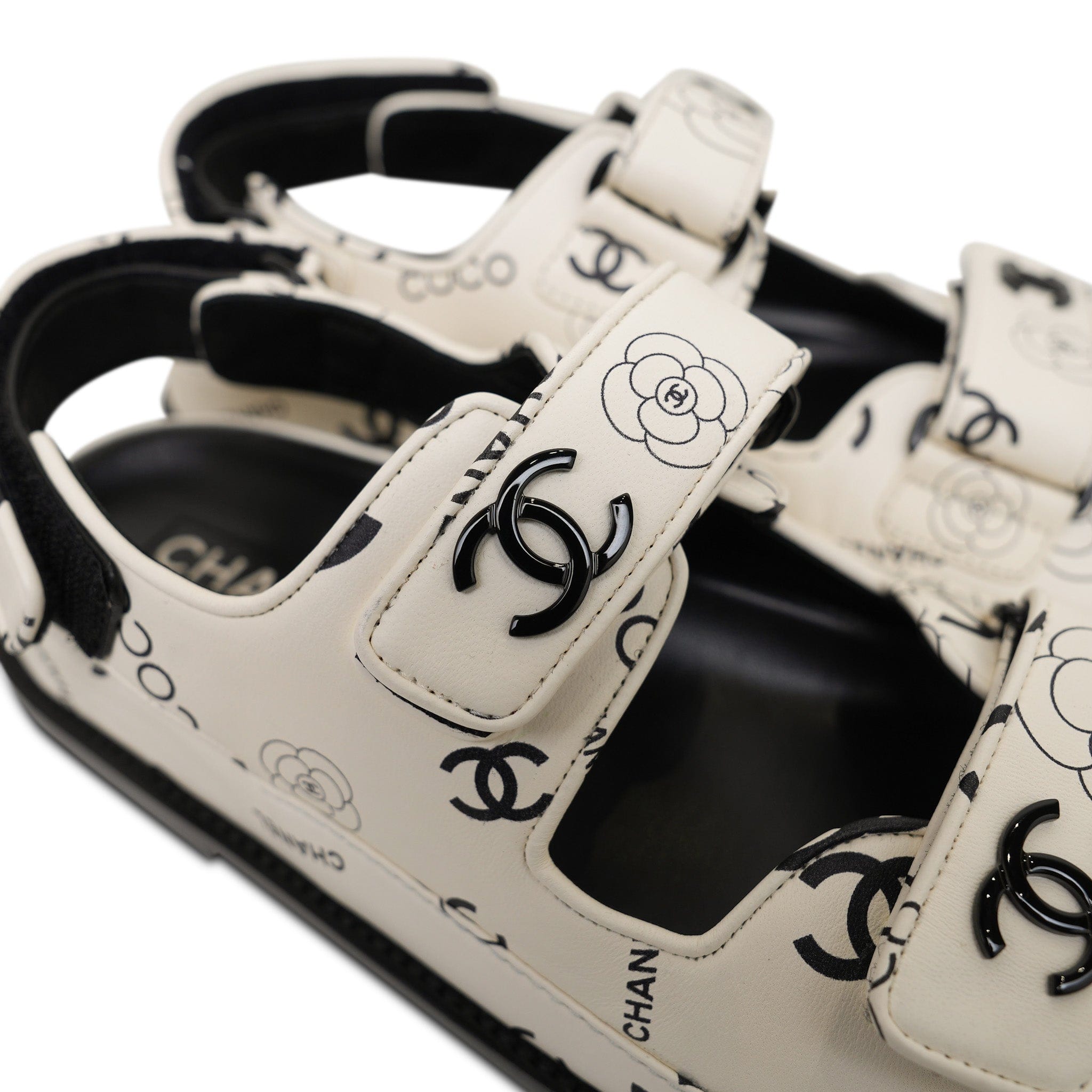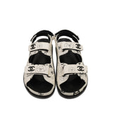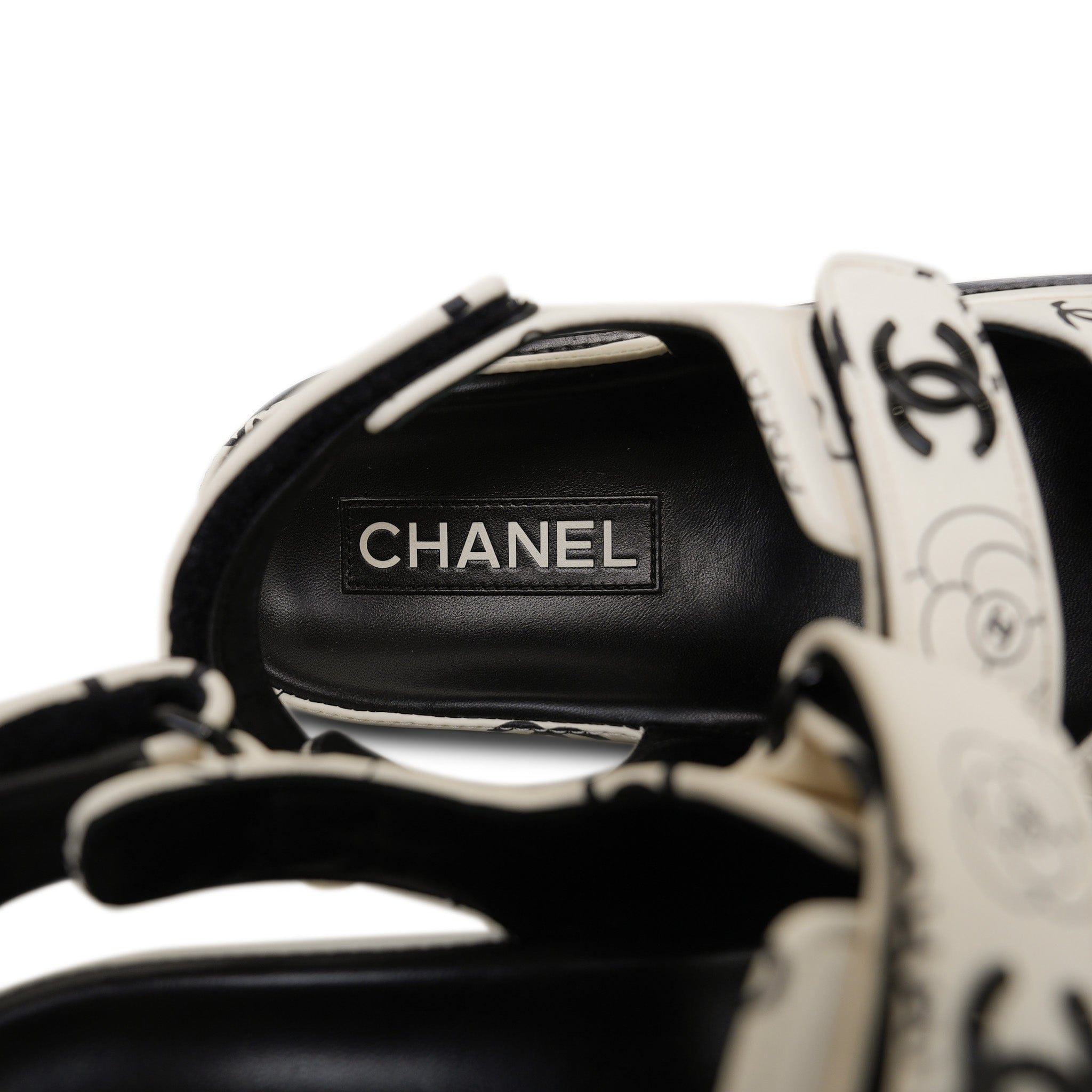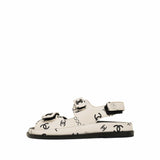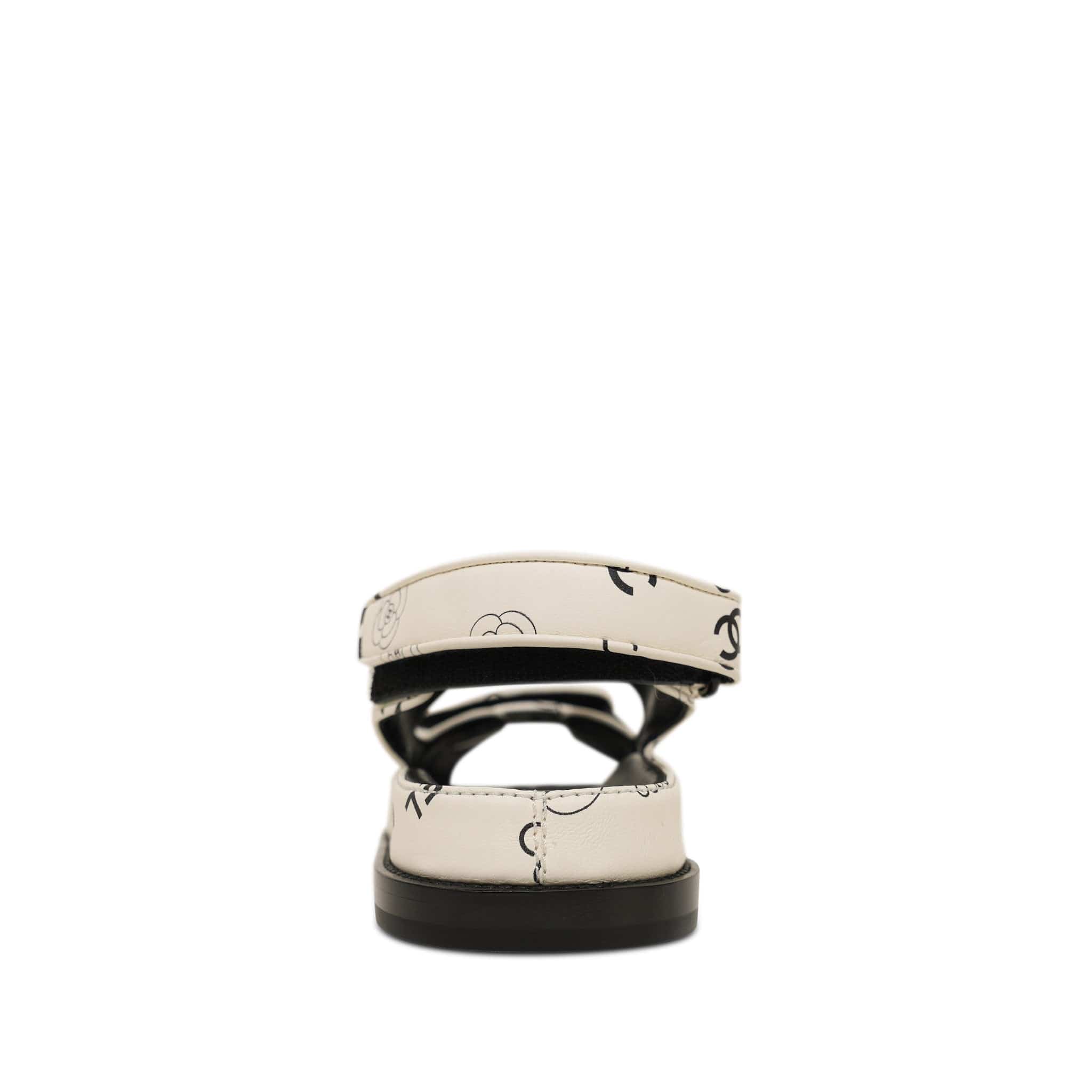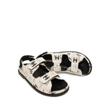 23P Black White Lambskin Quilted Logo CC Printed Velcro Strap Sandals Size 38.5