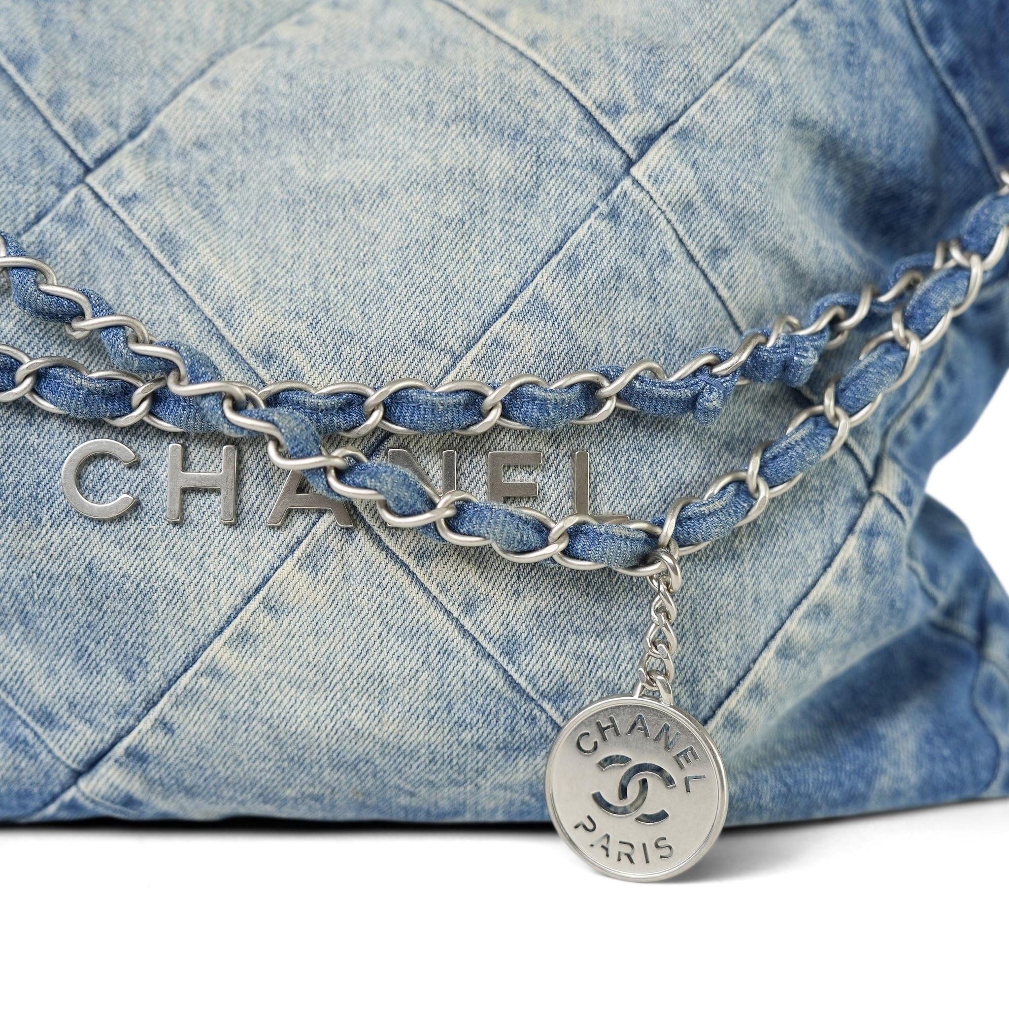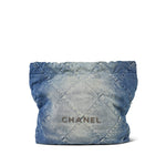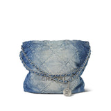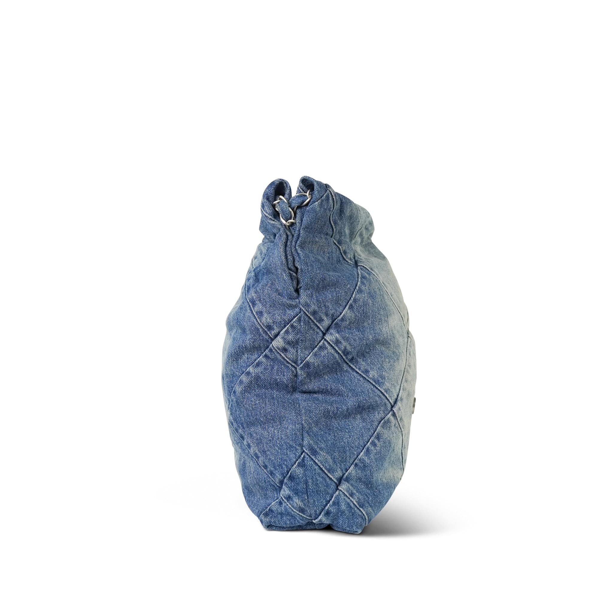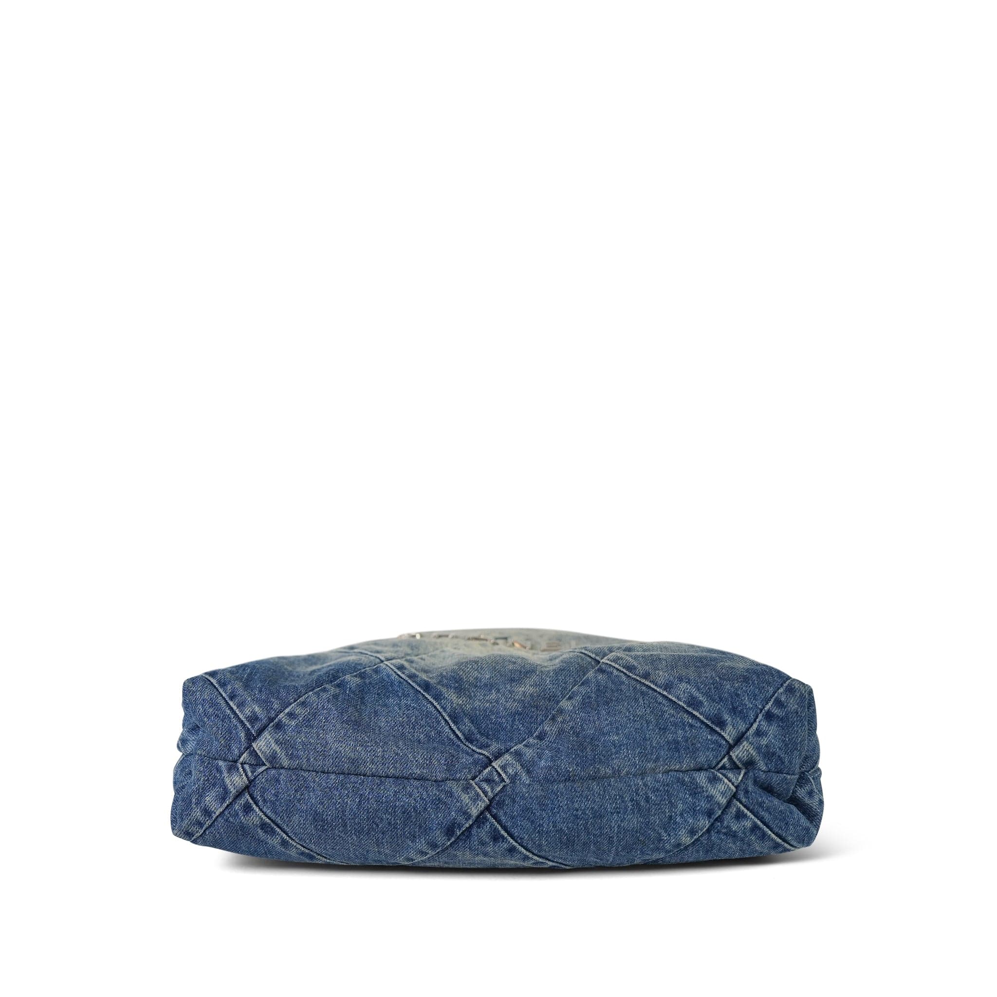 23P Light Wash Blue Denim Quilted Small 22 Hobo Bag SHW