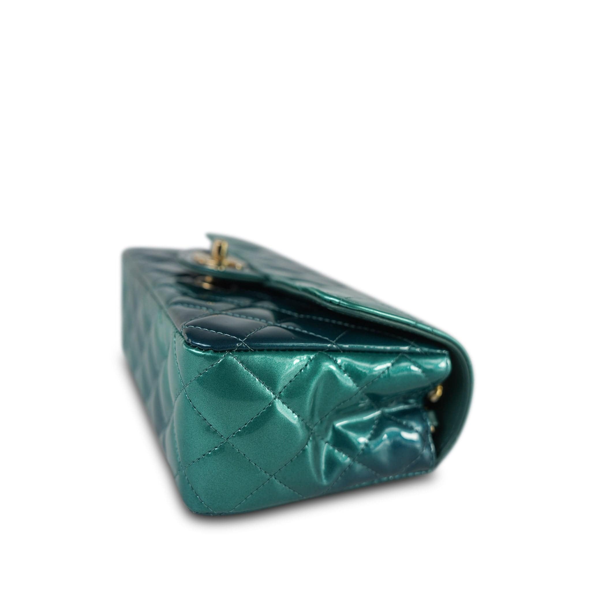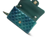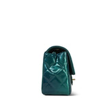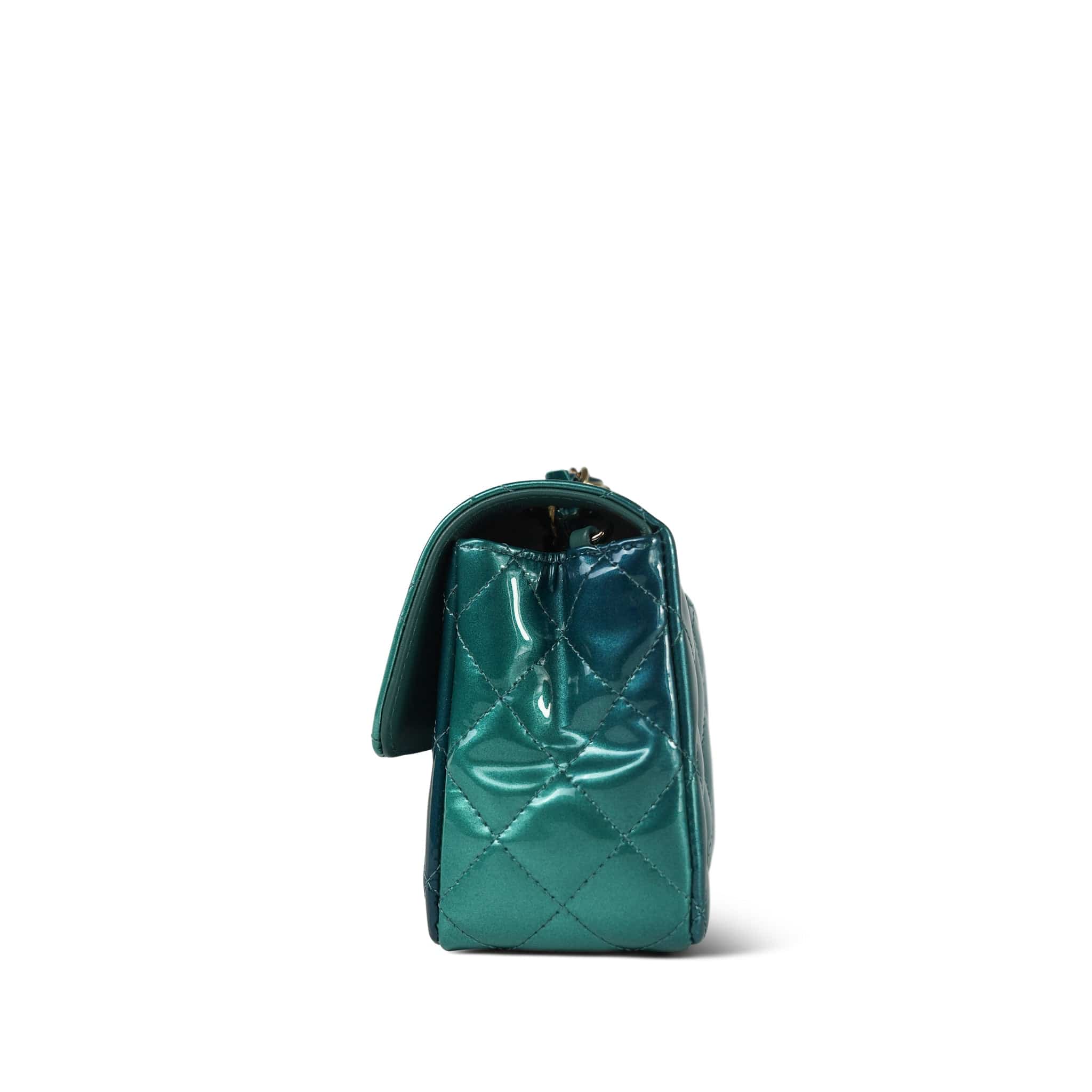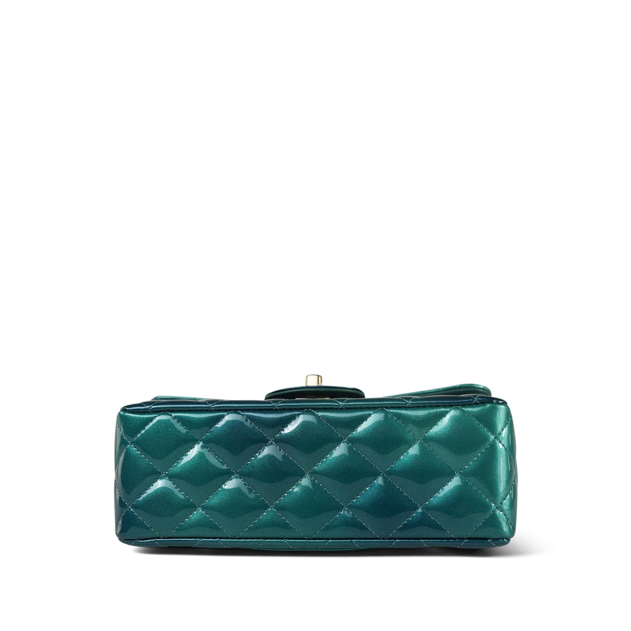 23P Multi-Tone Green Patent Quilted Mini Rectangular Flap Light Gold Hardware