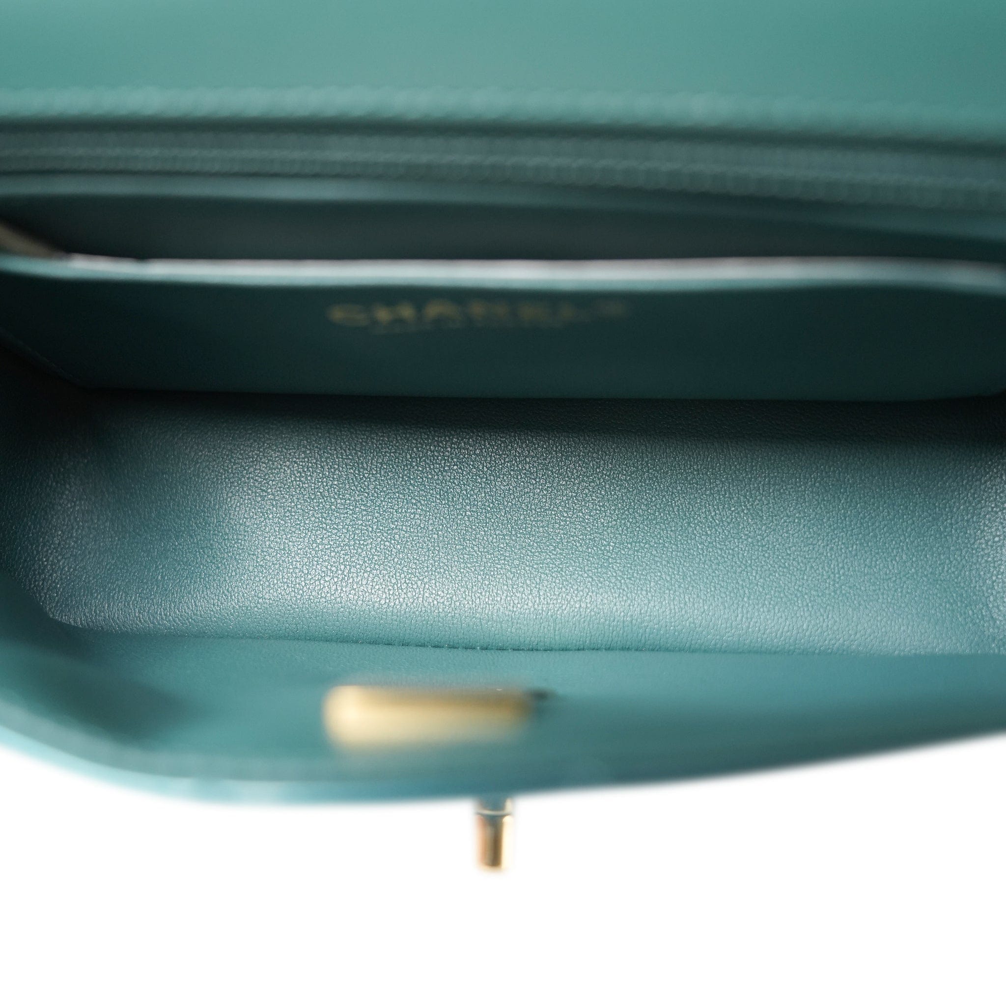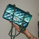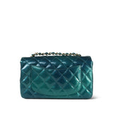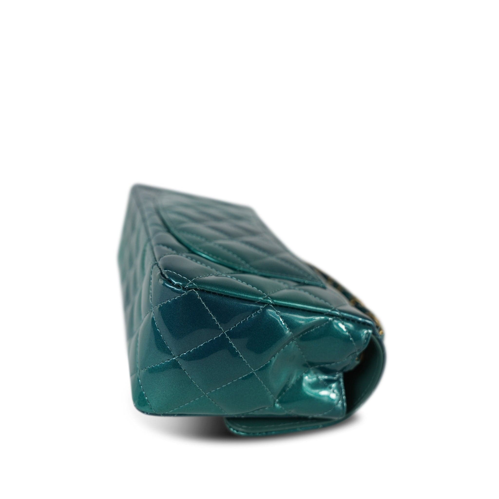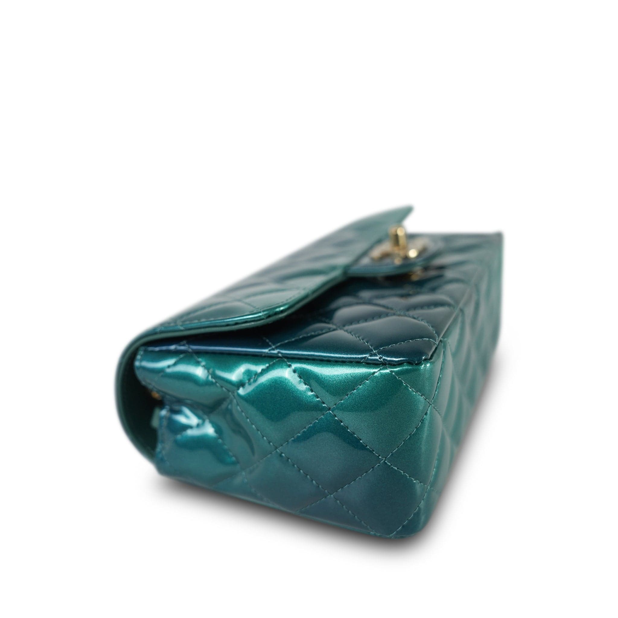 23P Multi-Tone Green Patent Quilted Mini Rectangular Flap Light Gold Hardware