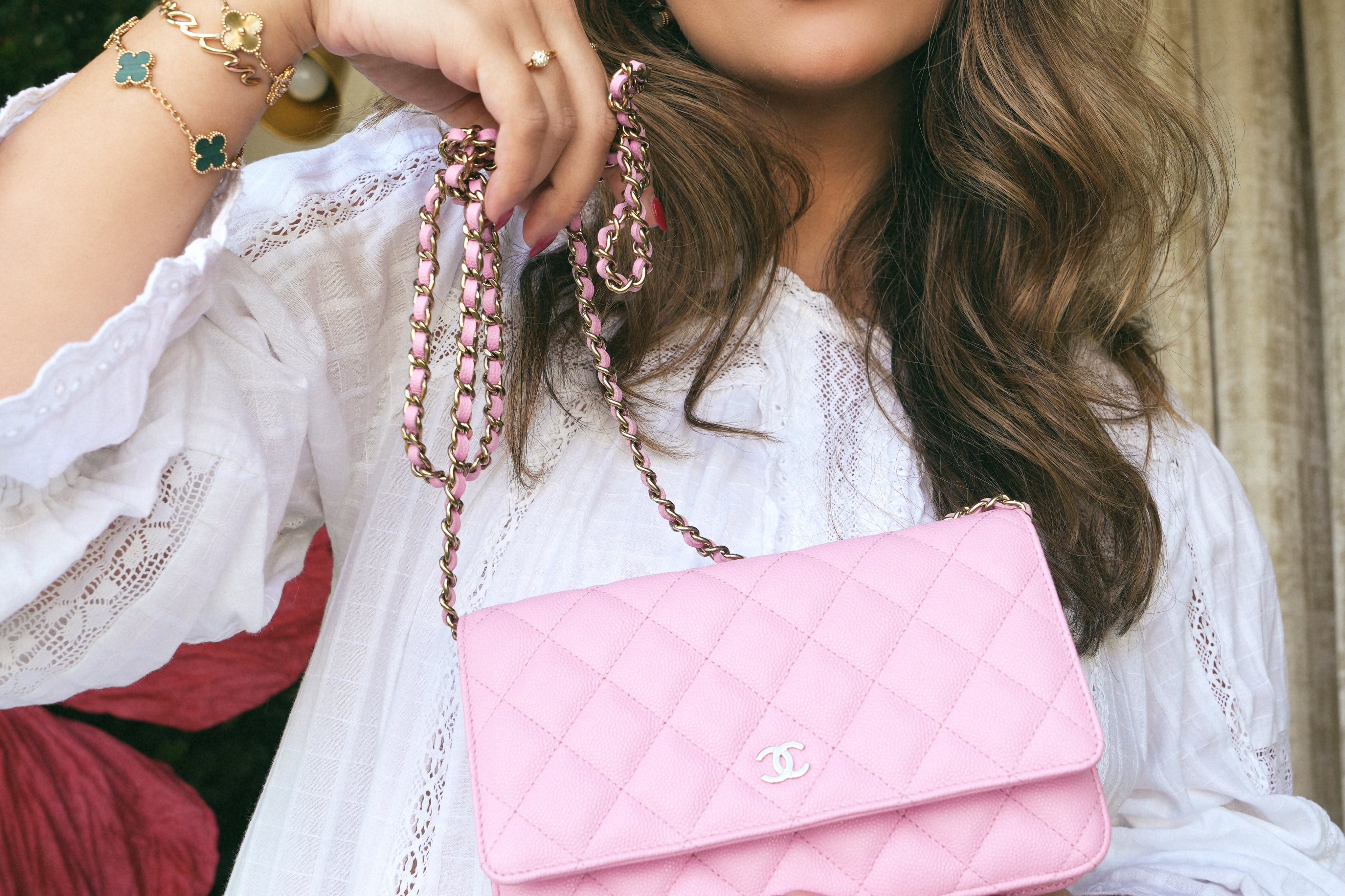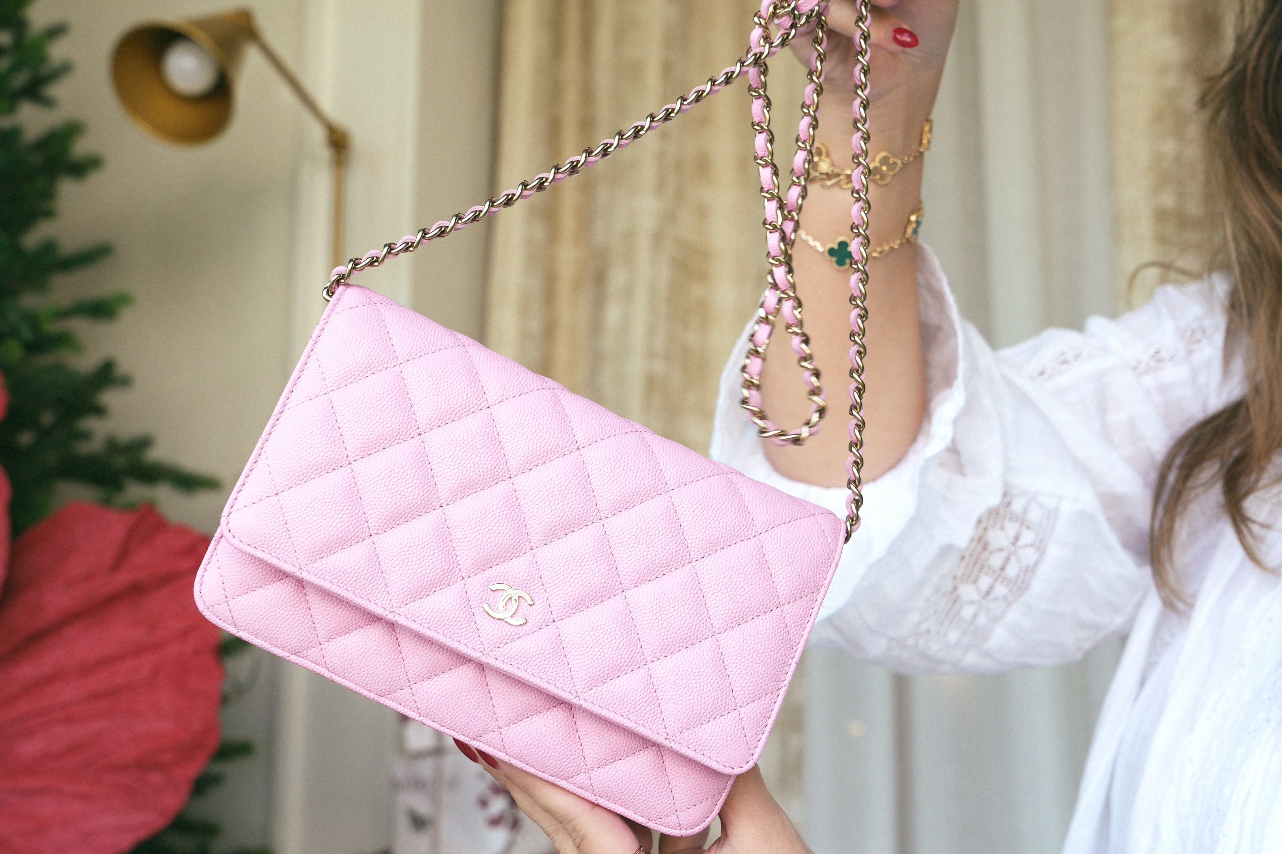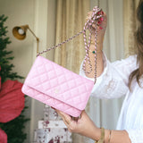23P Pink Caviar Quilted Wallet On Chain WOC LGHW
