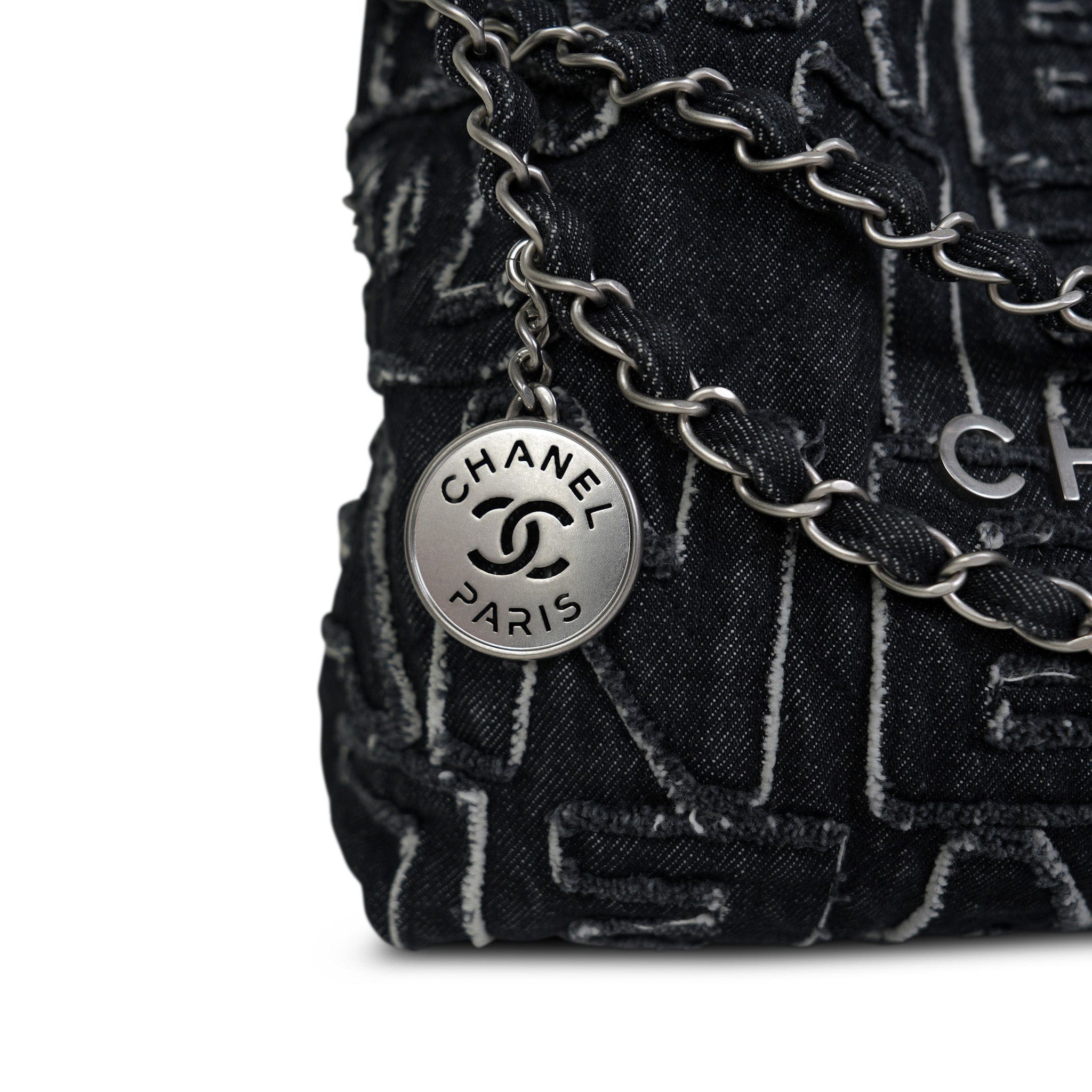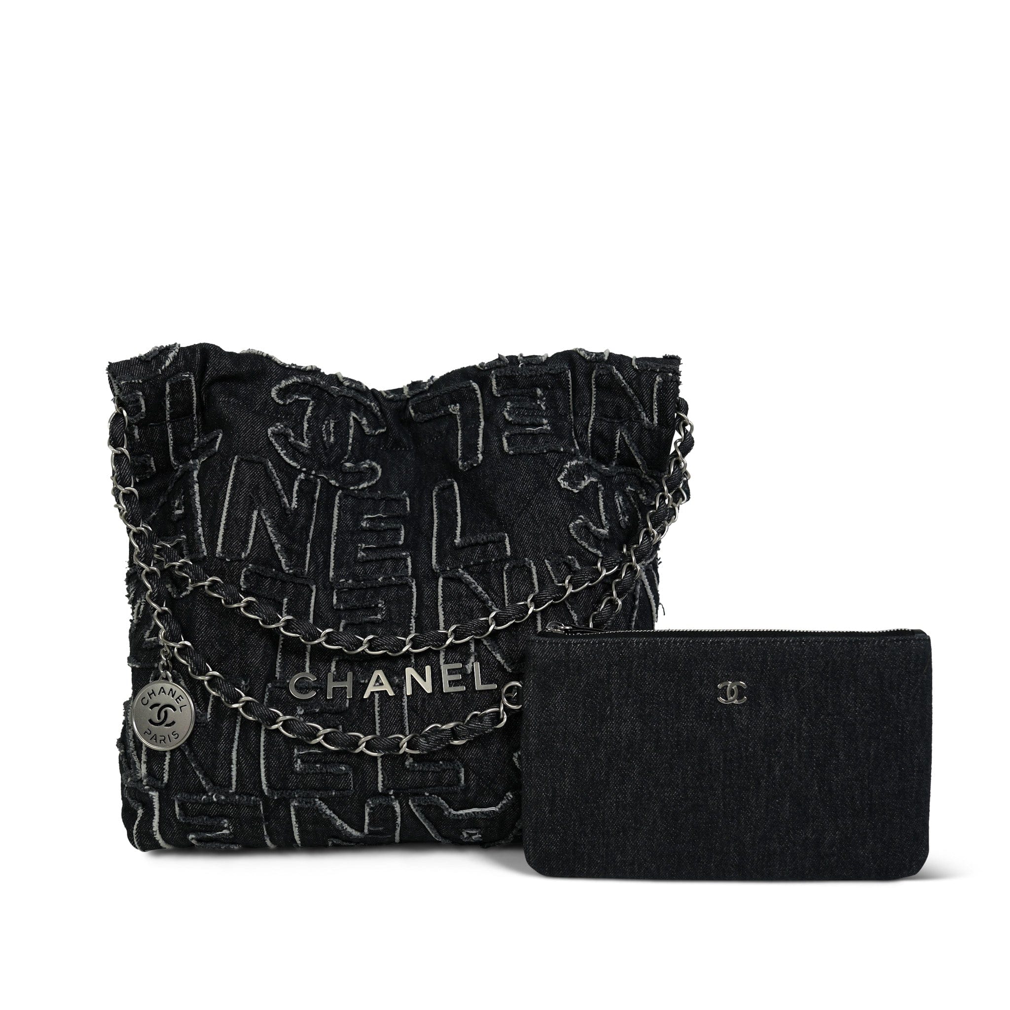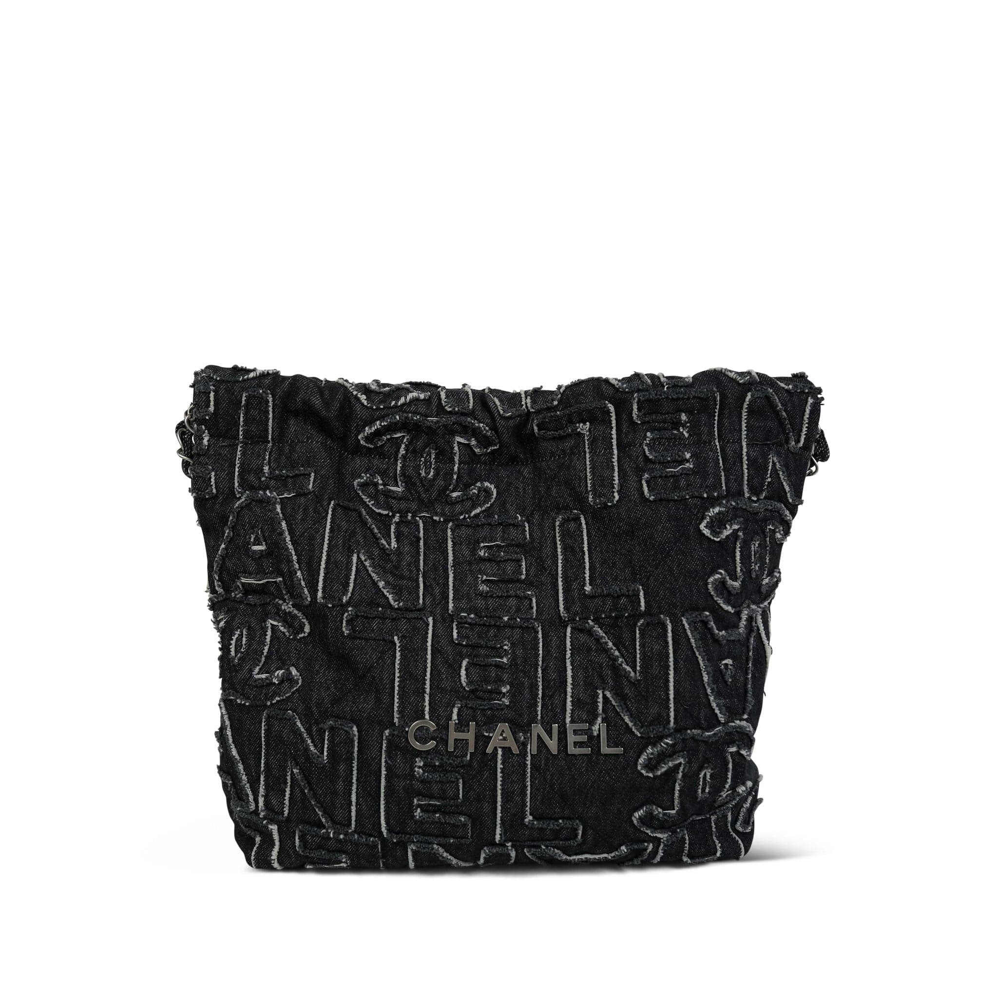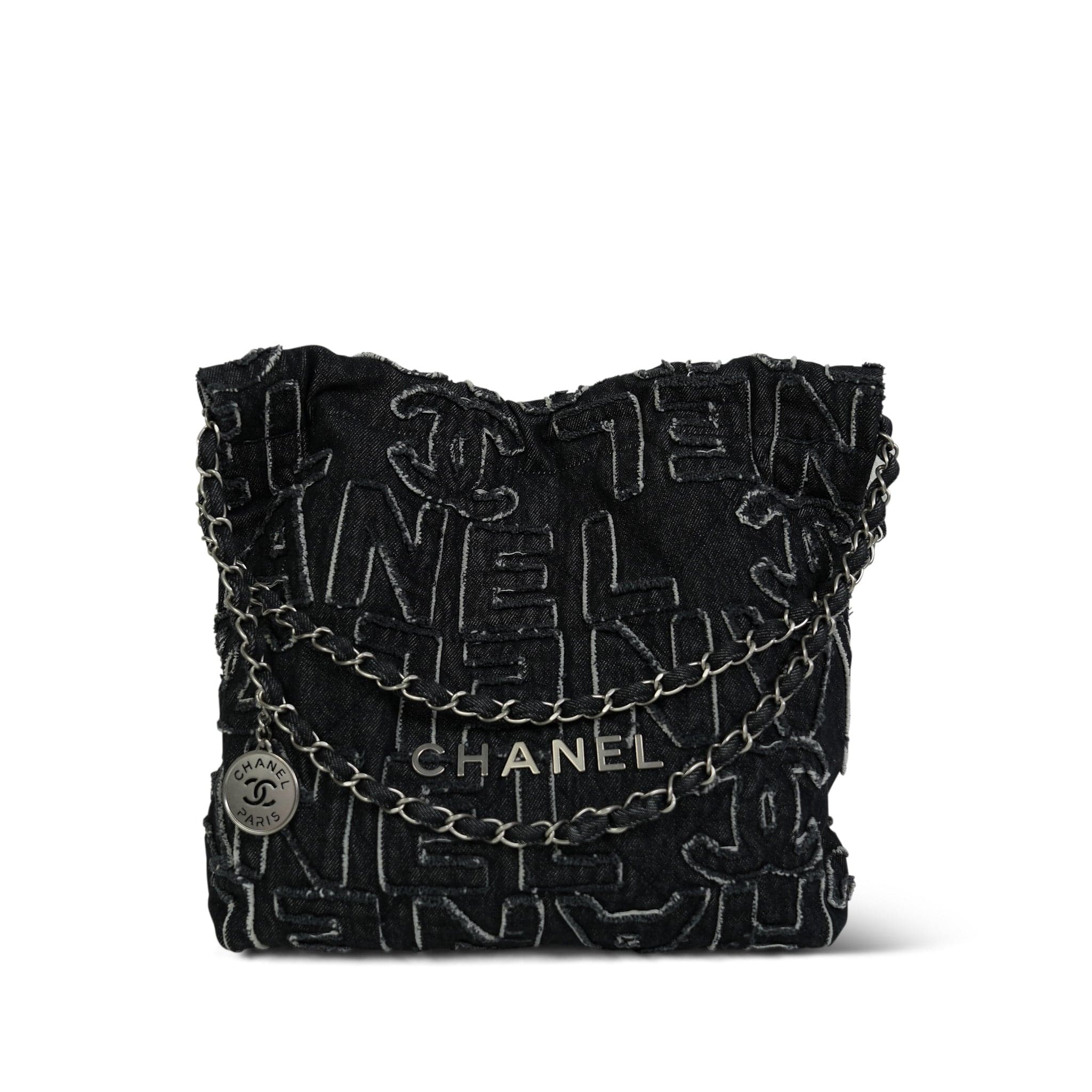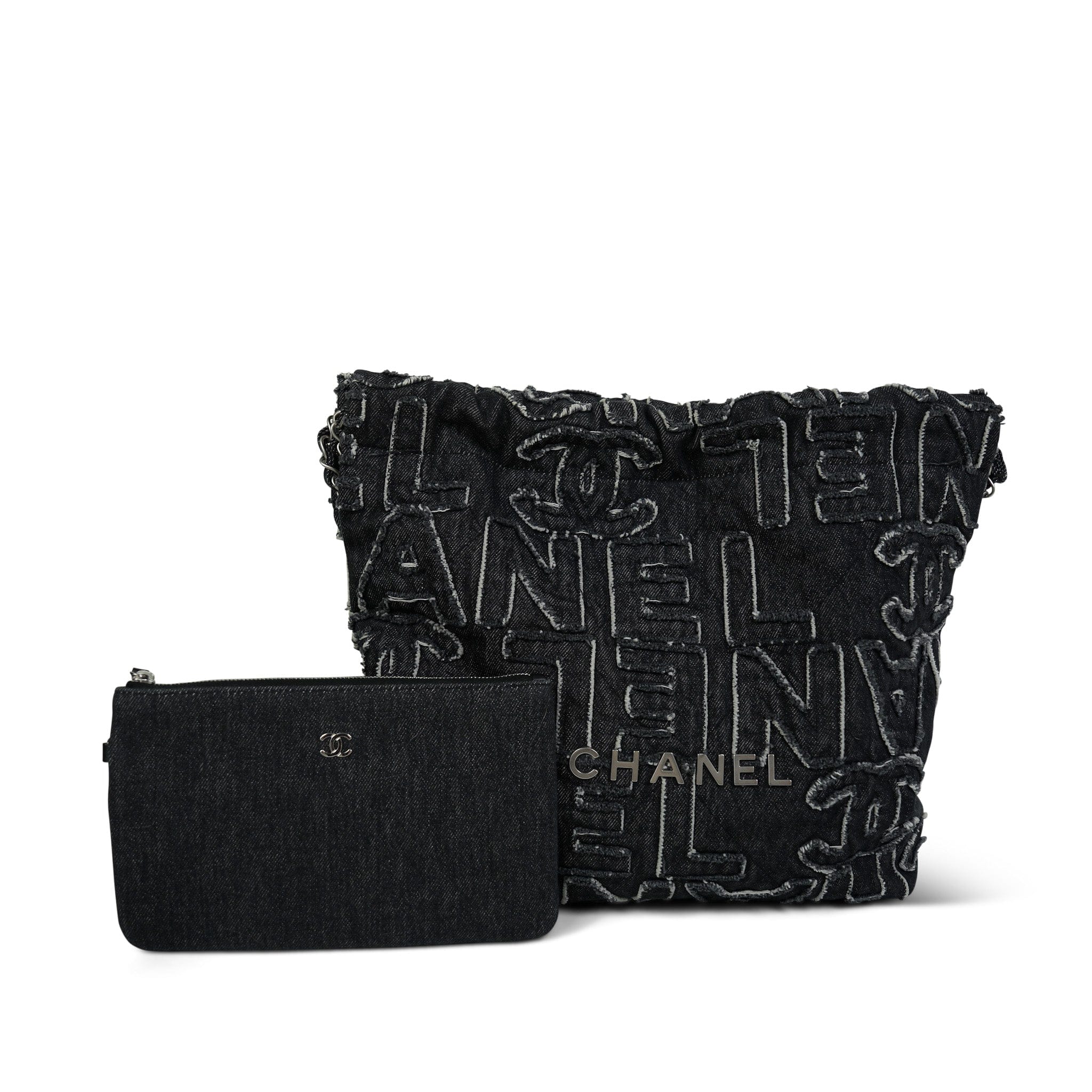 24A Black Denim Quilted Tufted Logo 22 Hobo Bag Small Aged Silver Hardware
