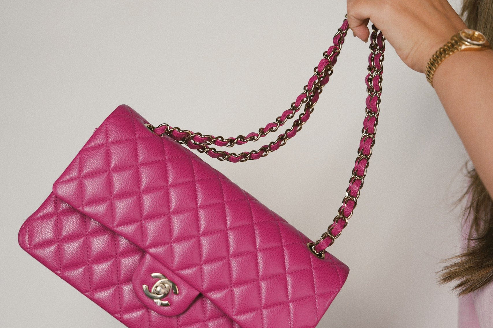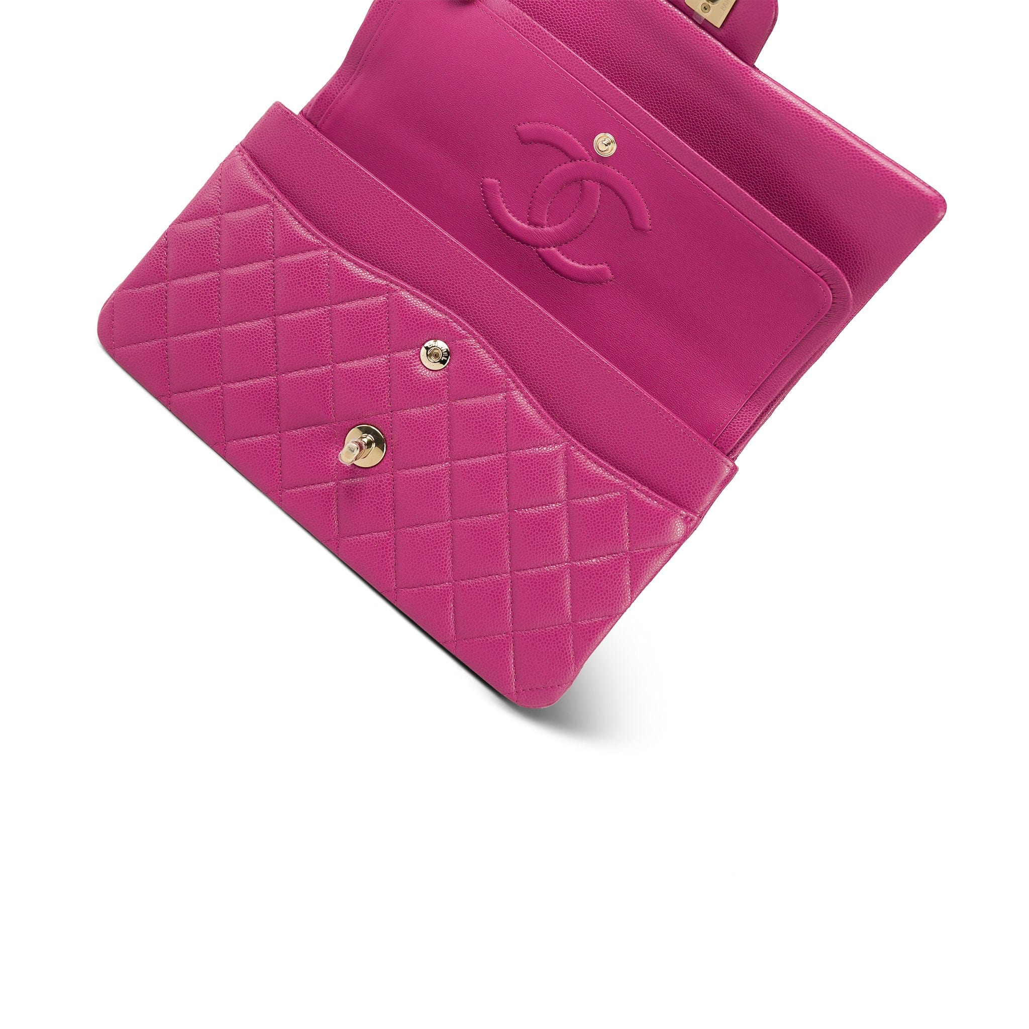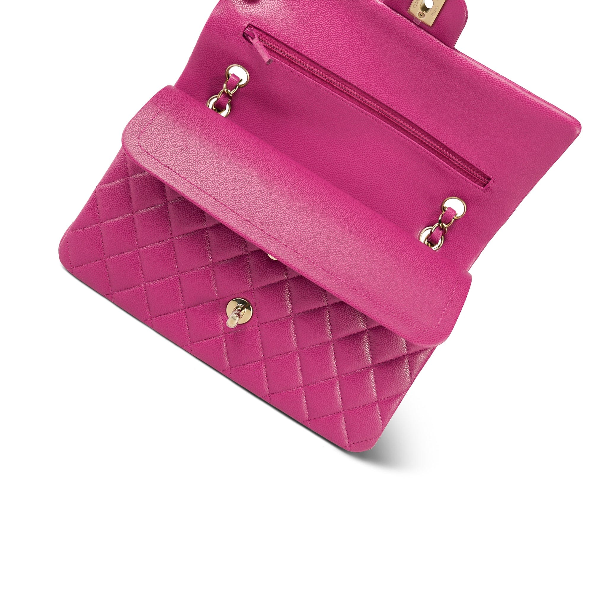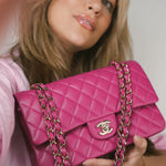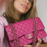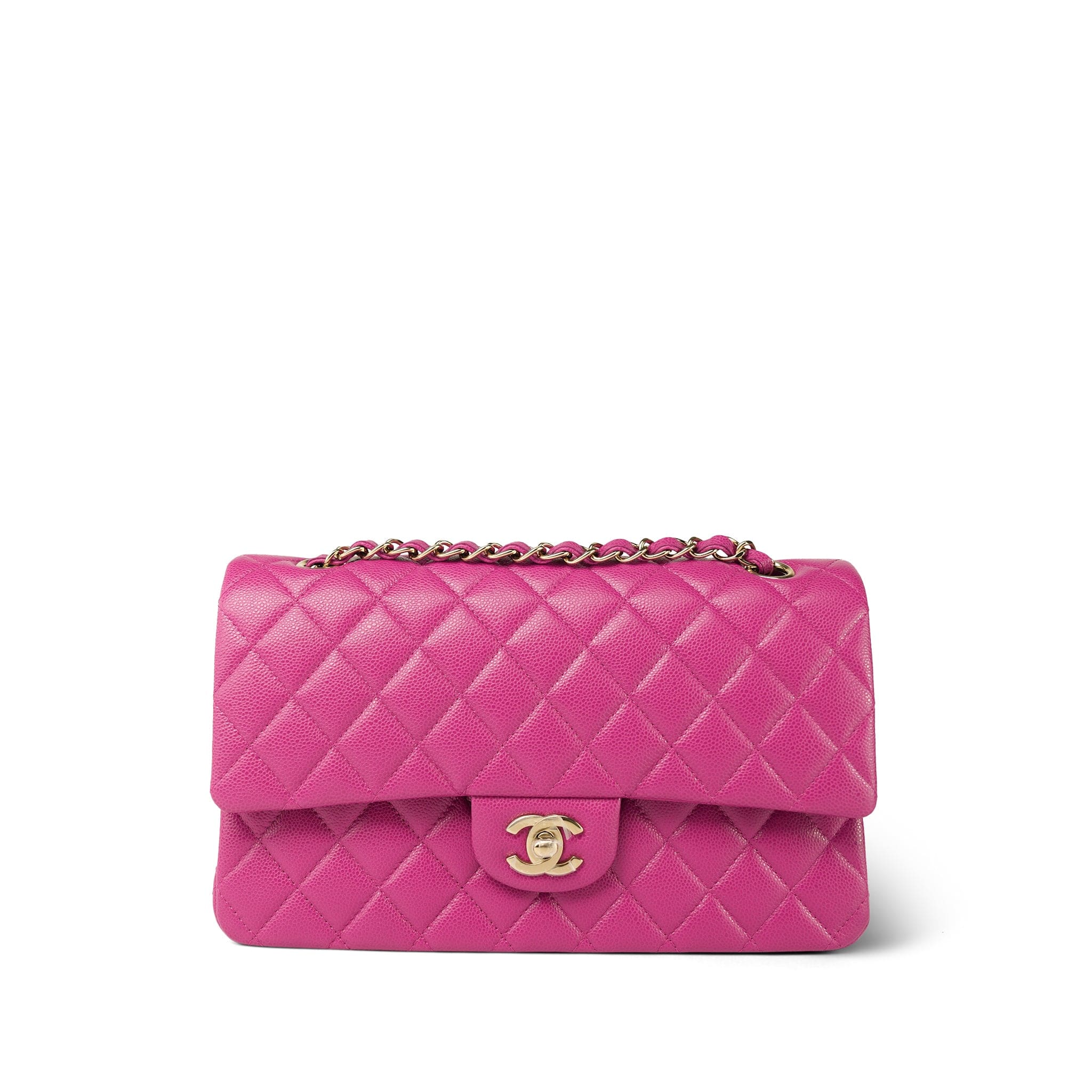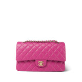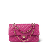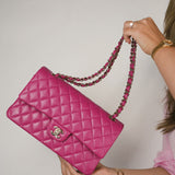 24A Pink/Fuchsia Caviar Quilted Classic Flap Medium Light Gold Hardware