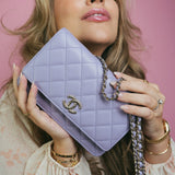 24A Purple Caviar Quilted Wallet on Chain WOC LGHW