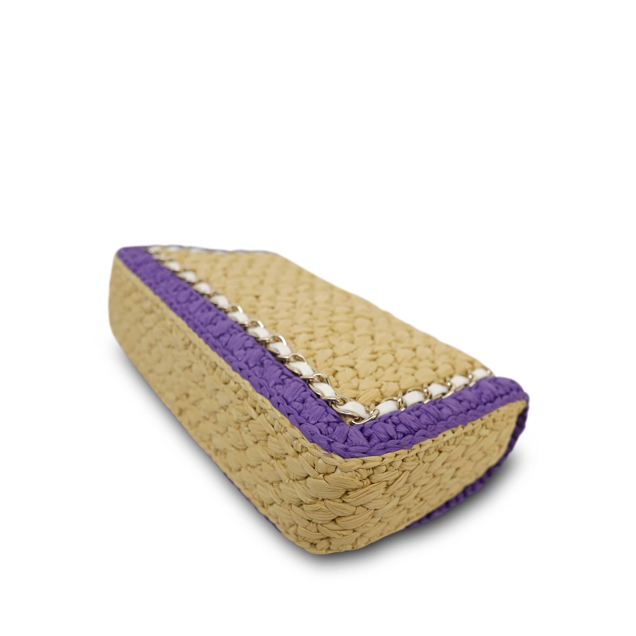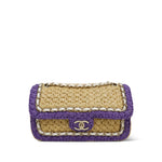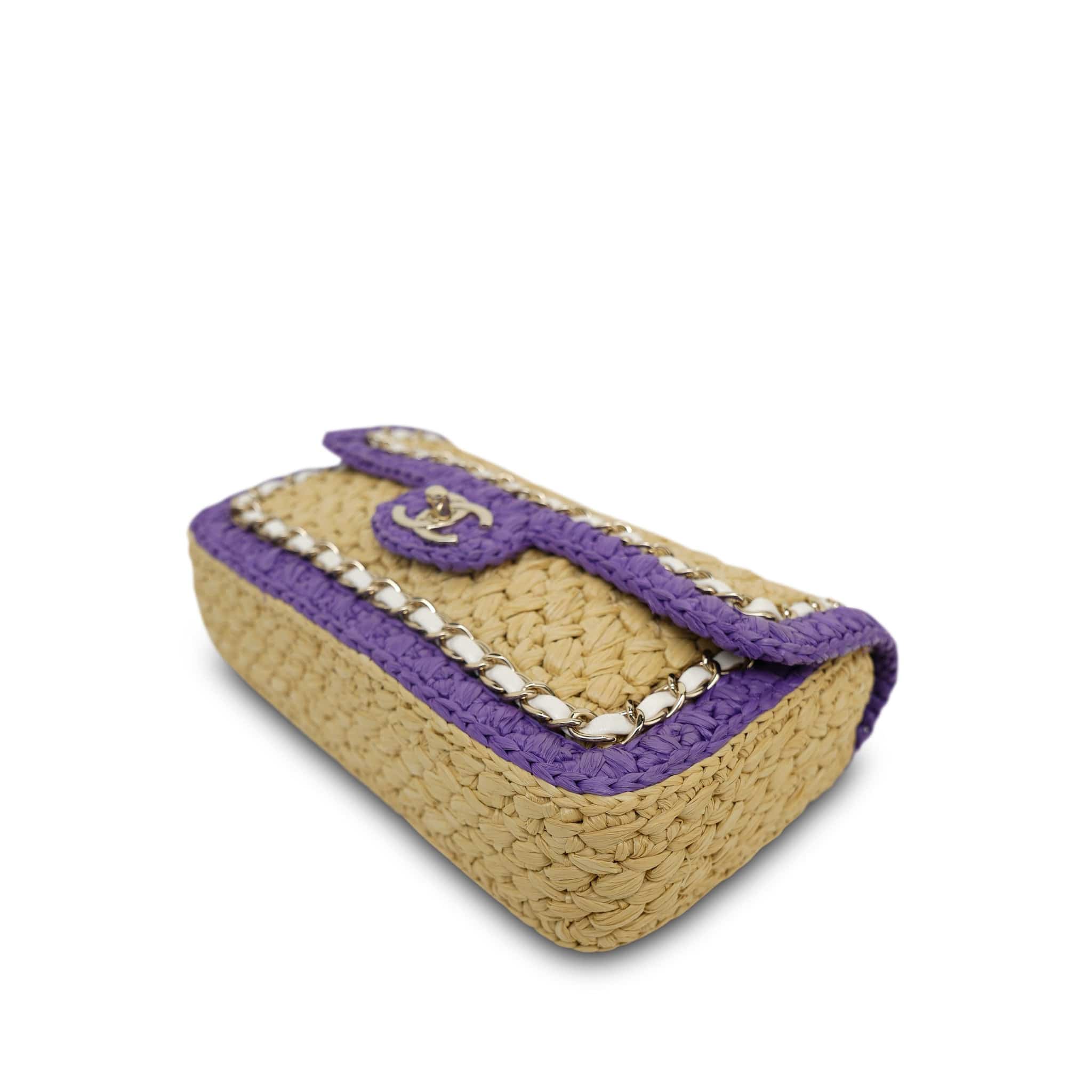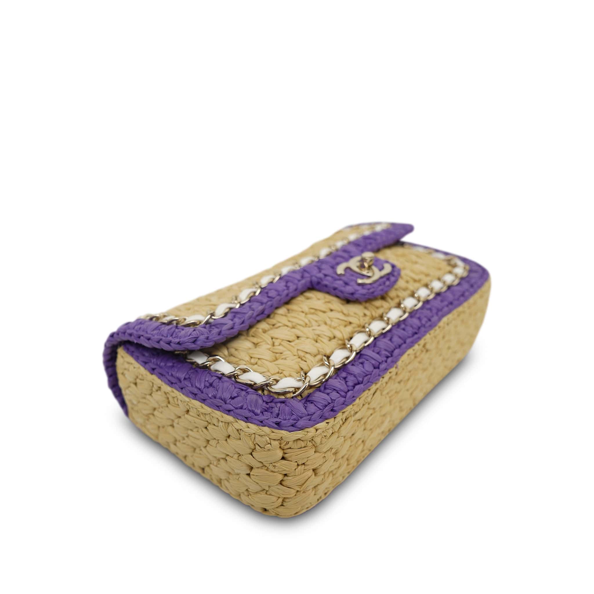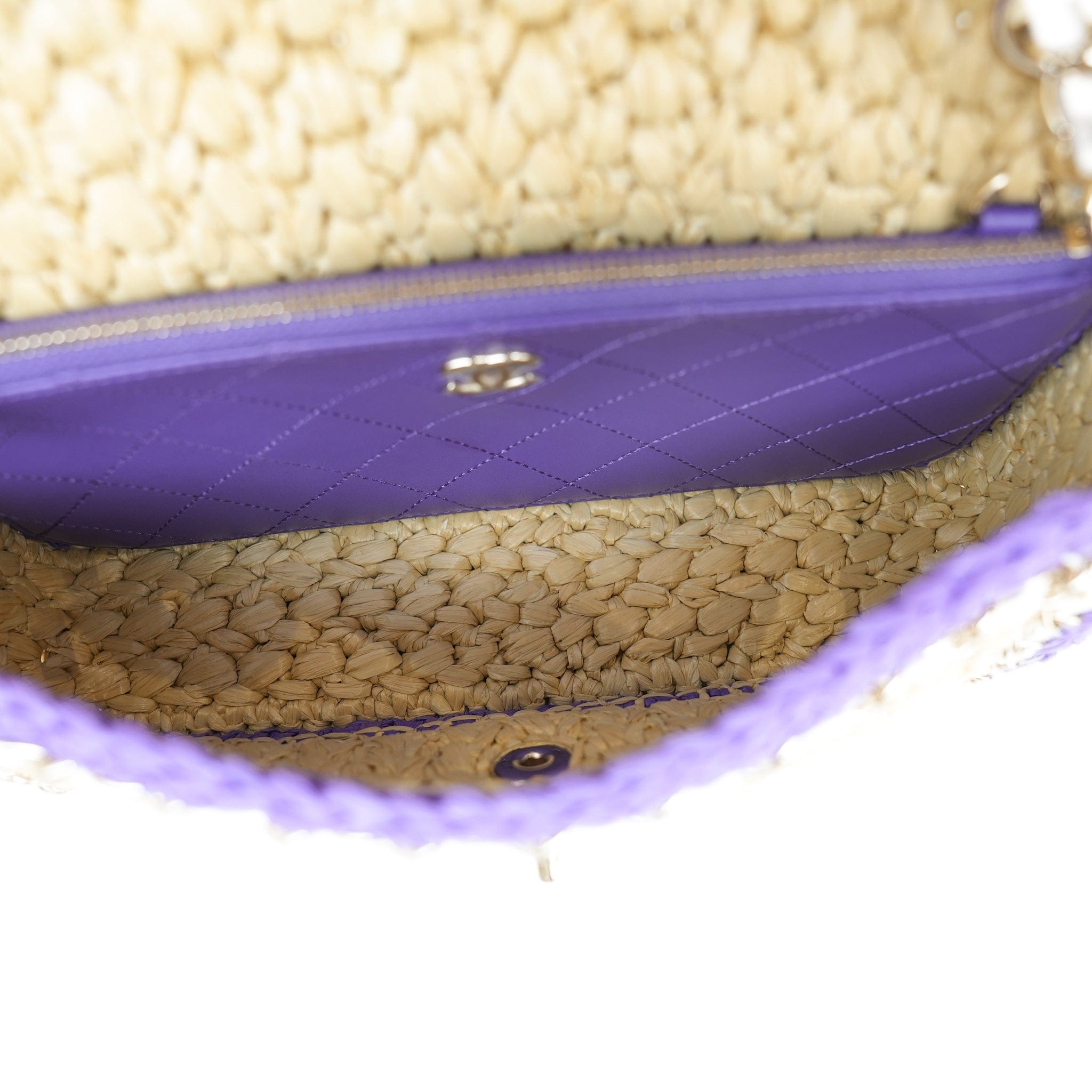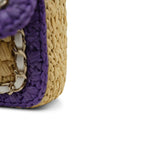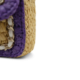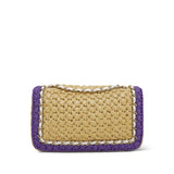 24C Beige/Purple Raffia Quilted Venice Beach Flap Bag Light Gold Hardware