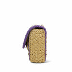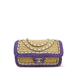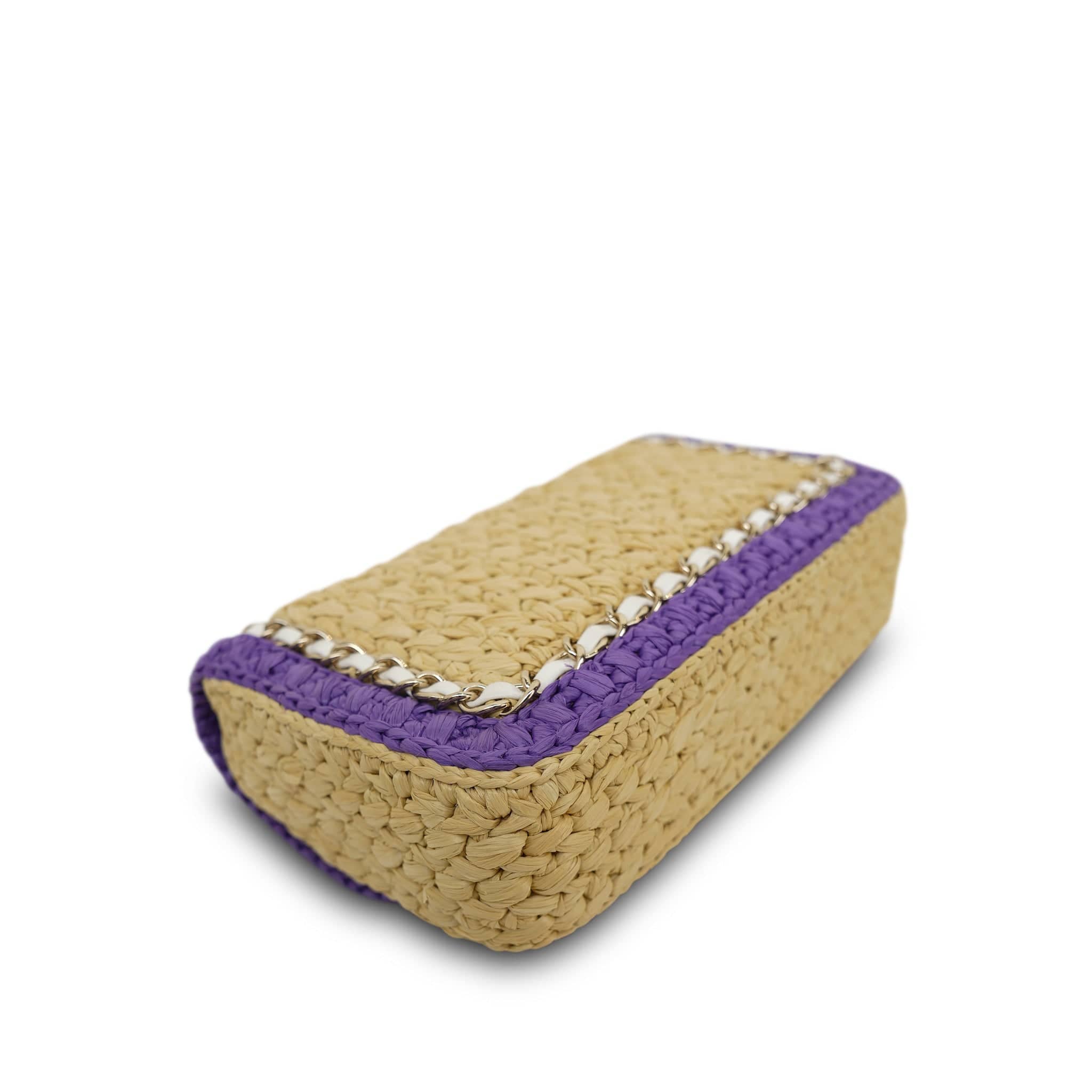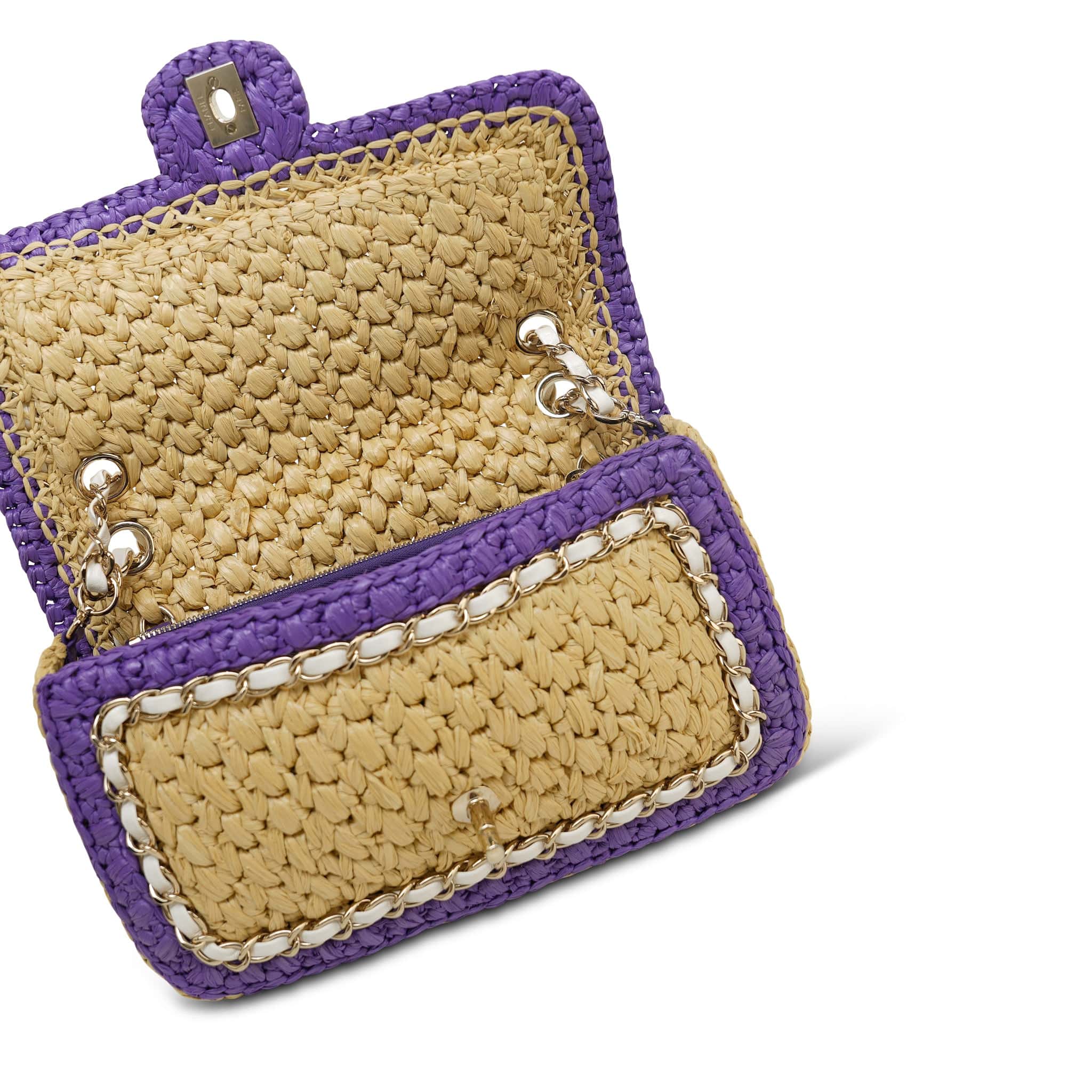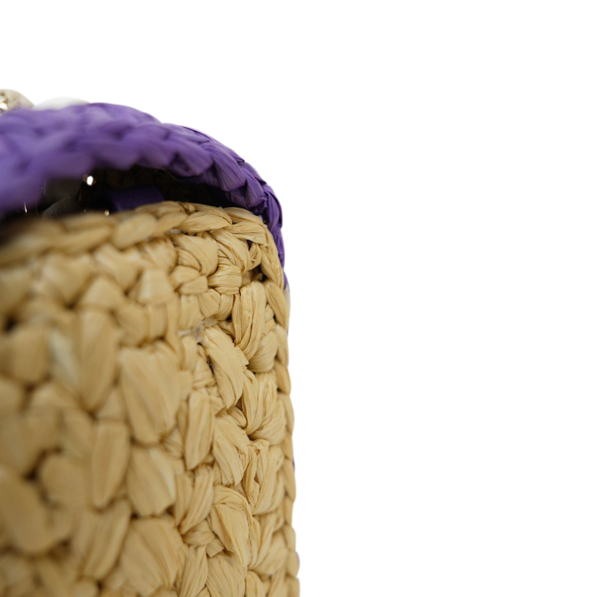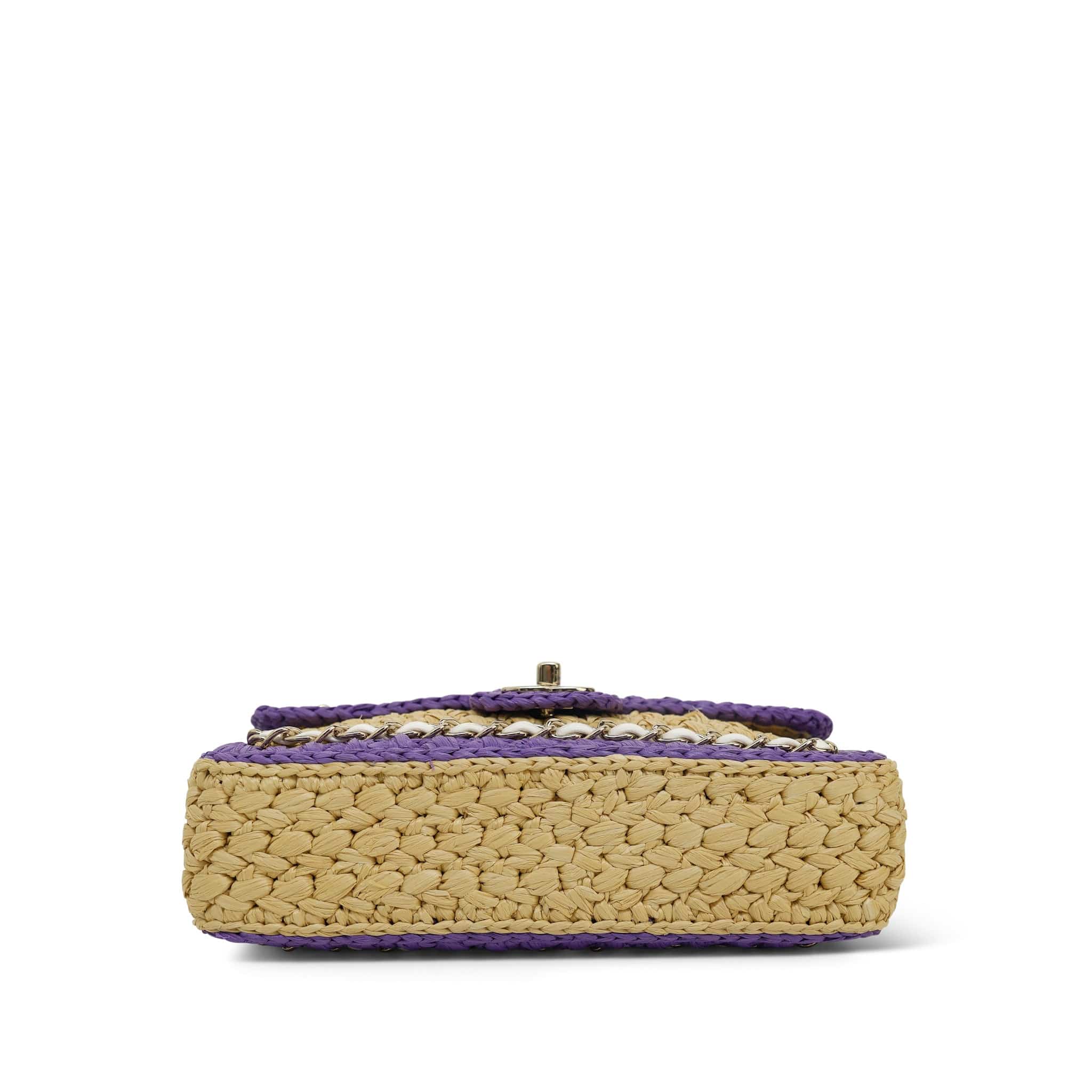 24C Beige/Purple Raffia Quilted Venice Beach Flap Bag Light Gold Hardware