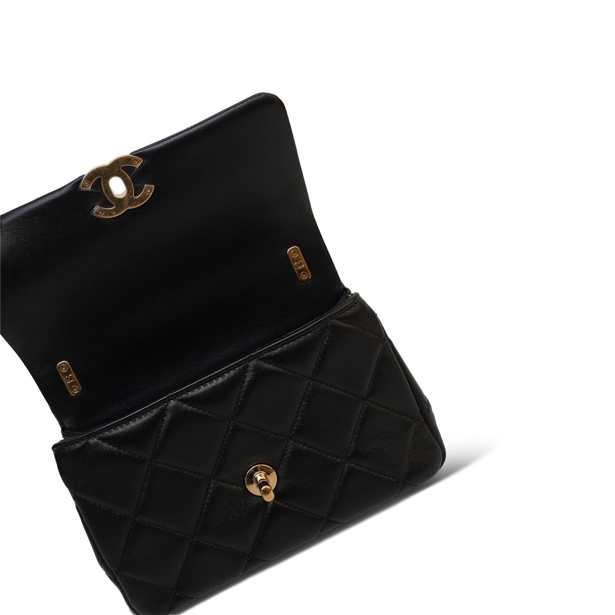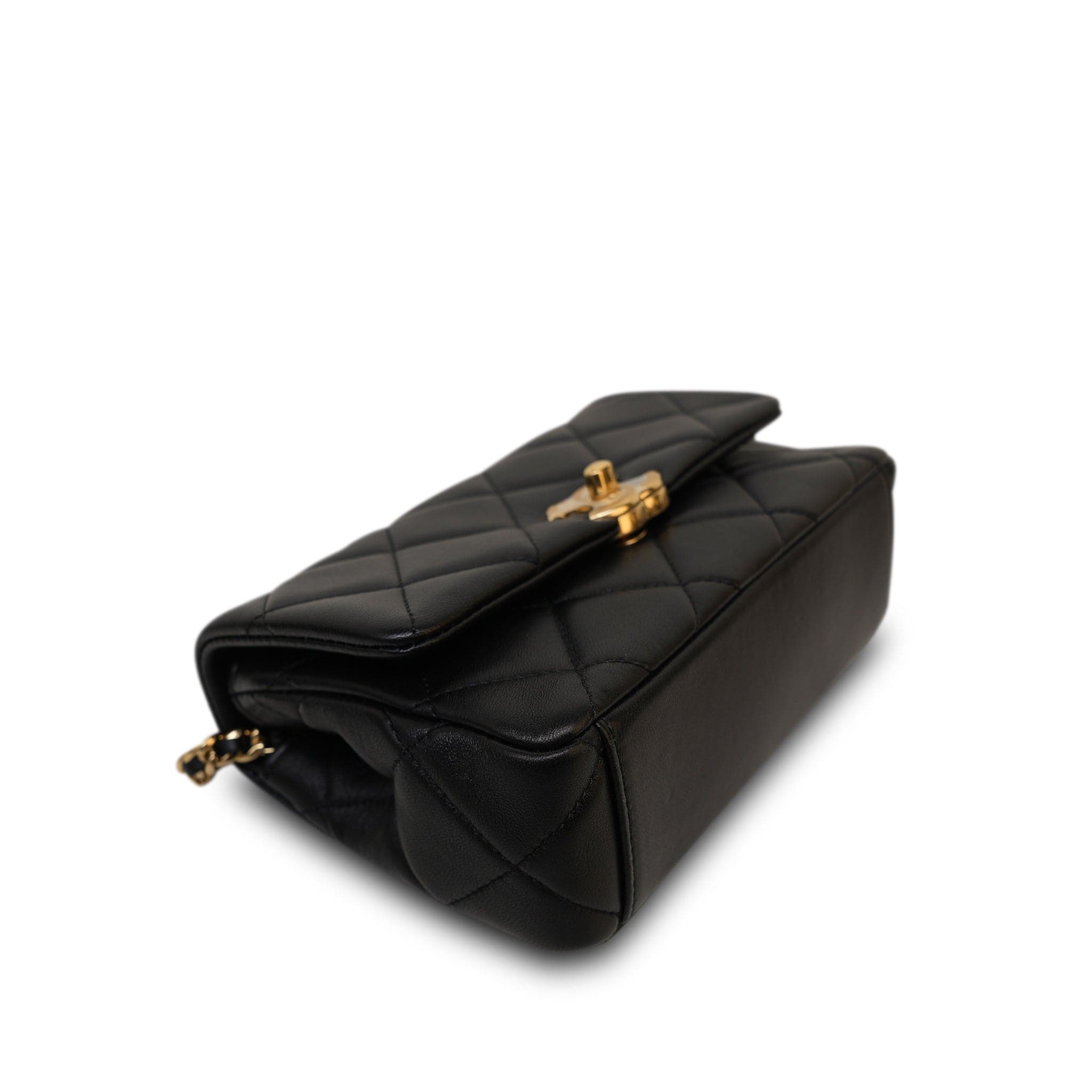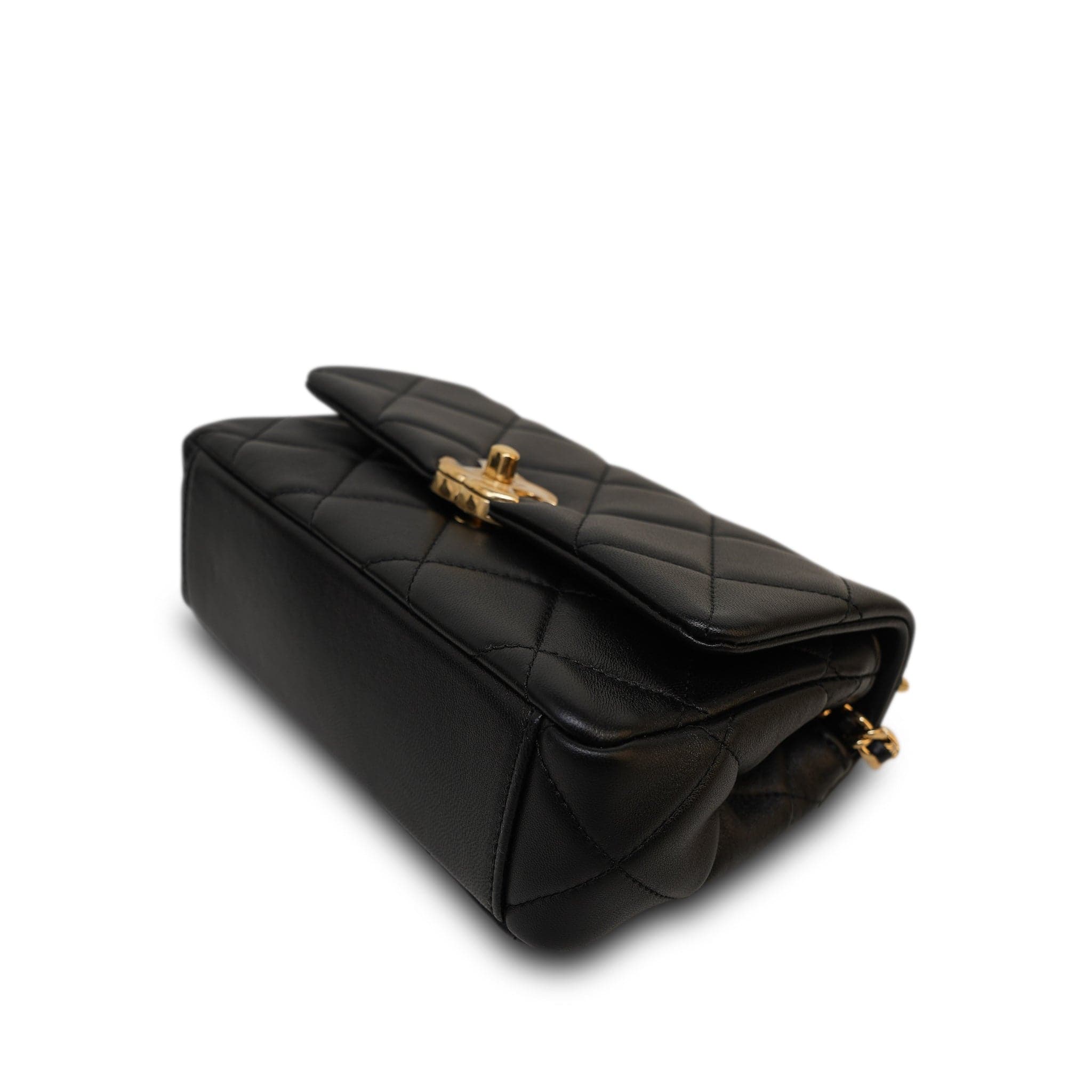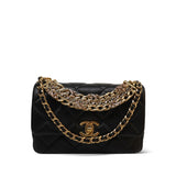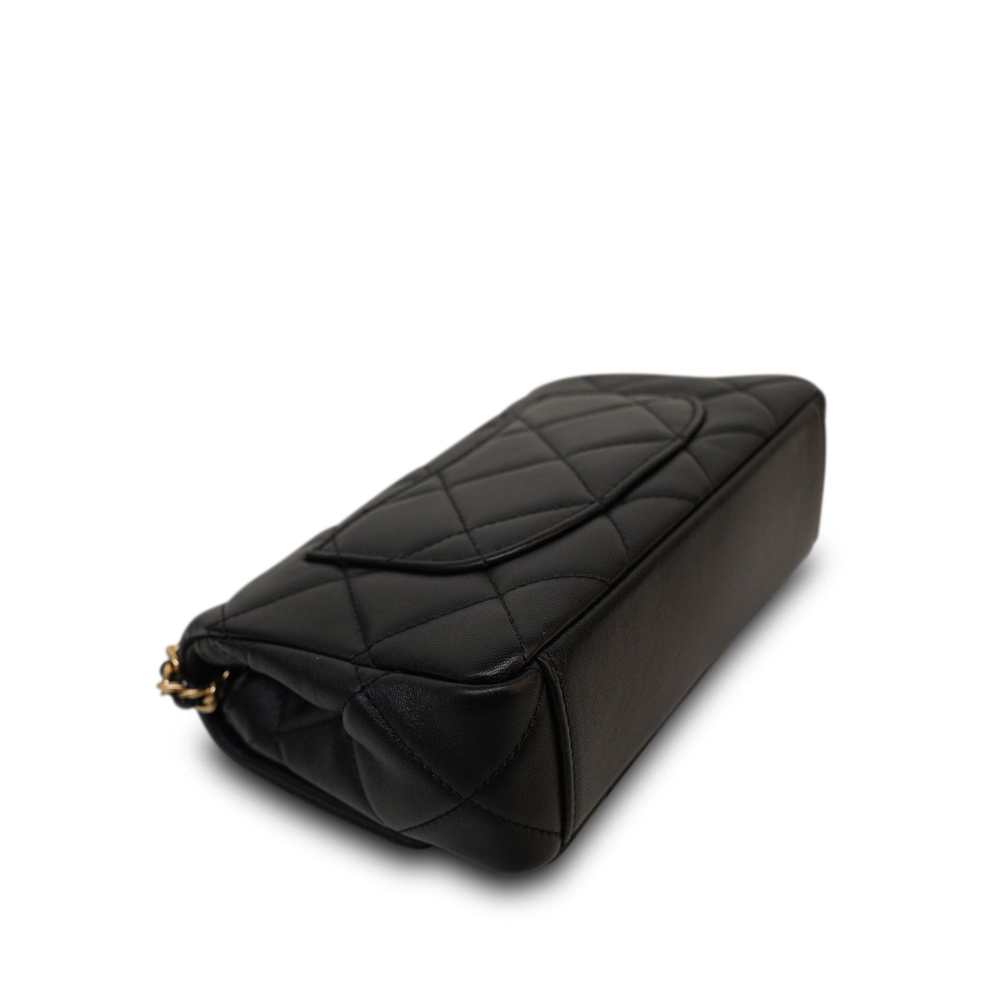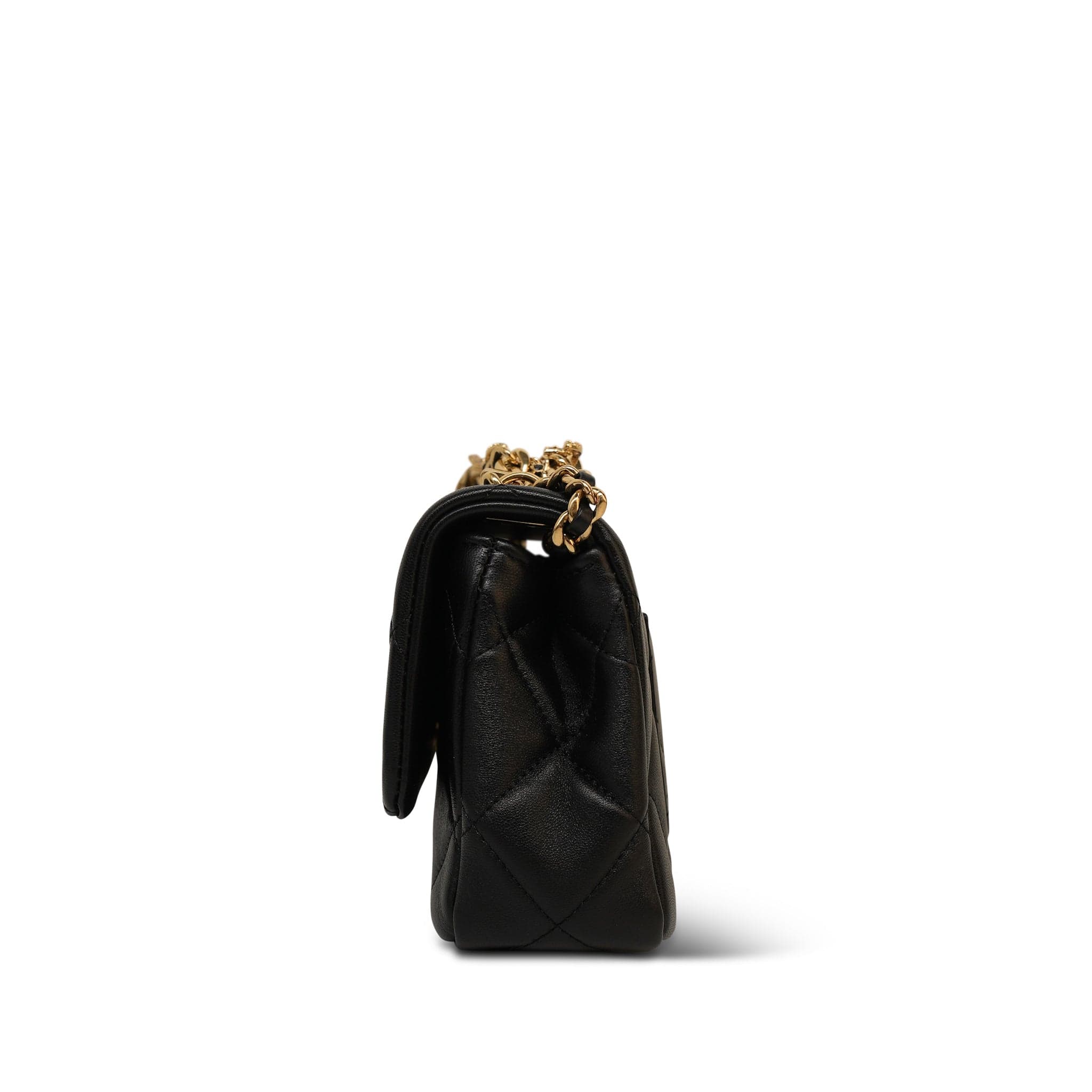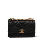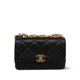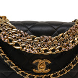 24C Black Lambskin Quilted CC Crystal Chain Flap Bag Aged Gold Hardware