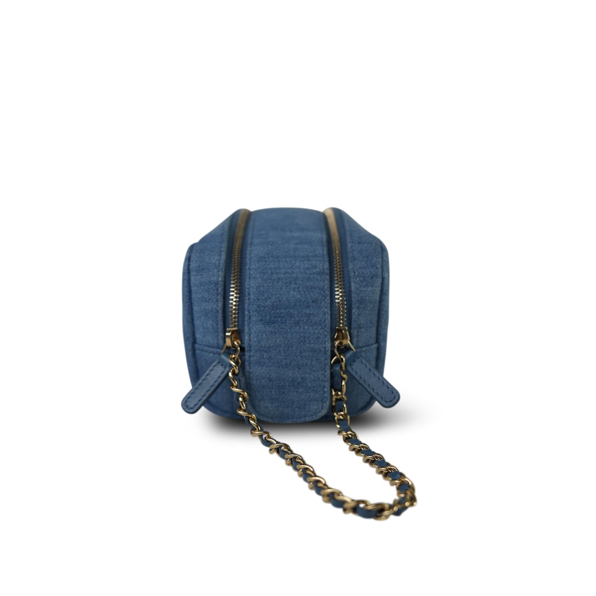 24C Blue Denim Quilted Cosmetic Pouch On Chain LGHW