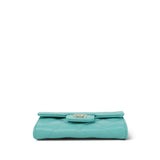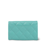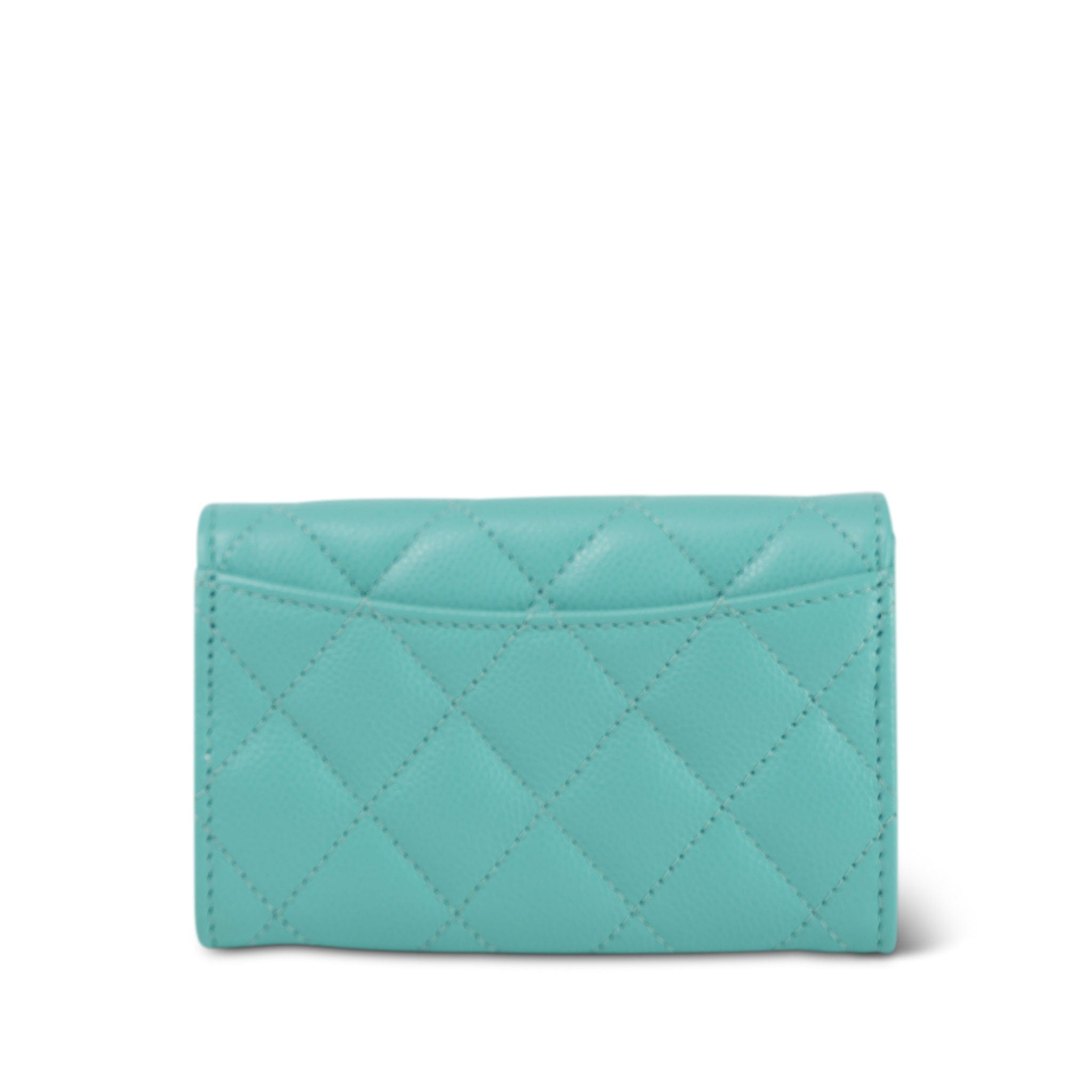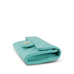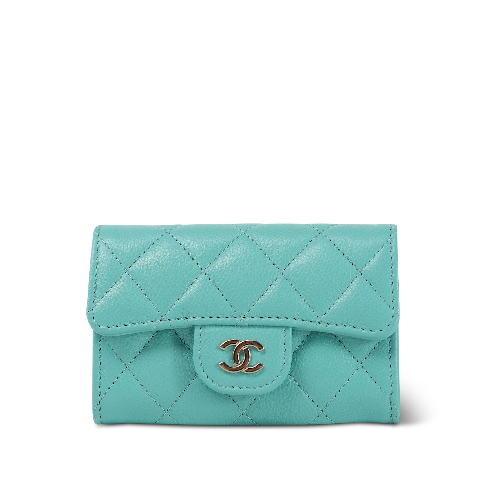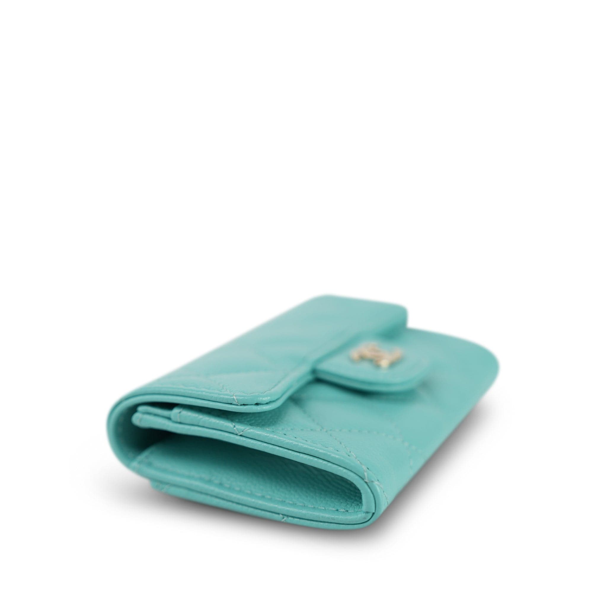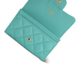 24C Turquoise Caviar Quilted Card Holder Light Gold Hardware