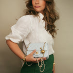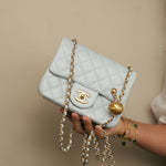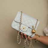 24K Light Blue Lambskin Quilted Pearl Crush Mini Aged Gold Hardware