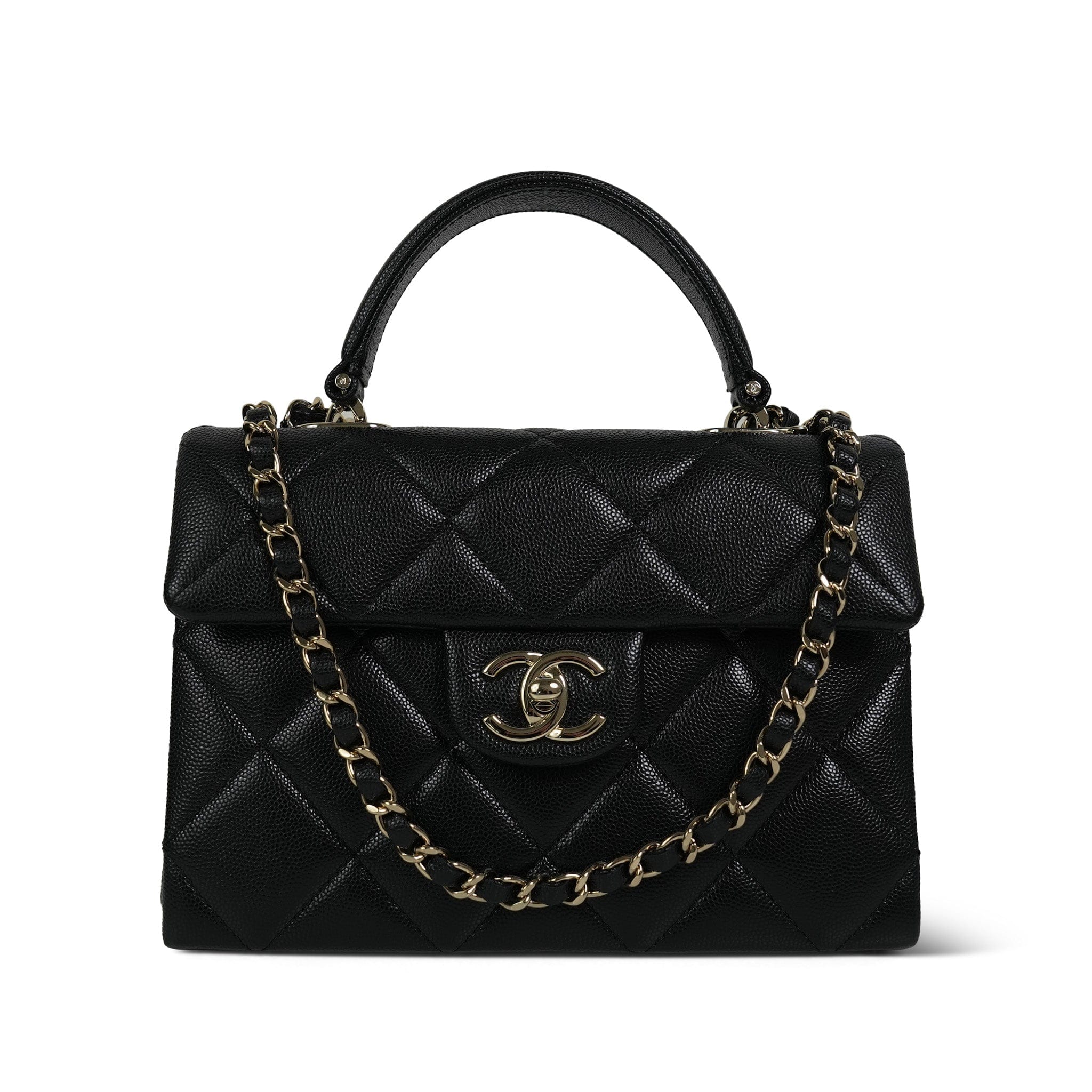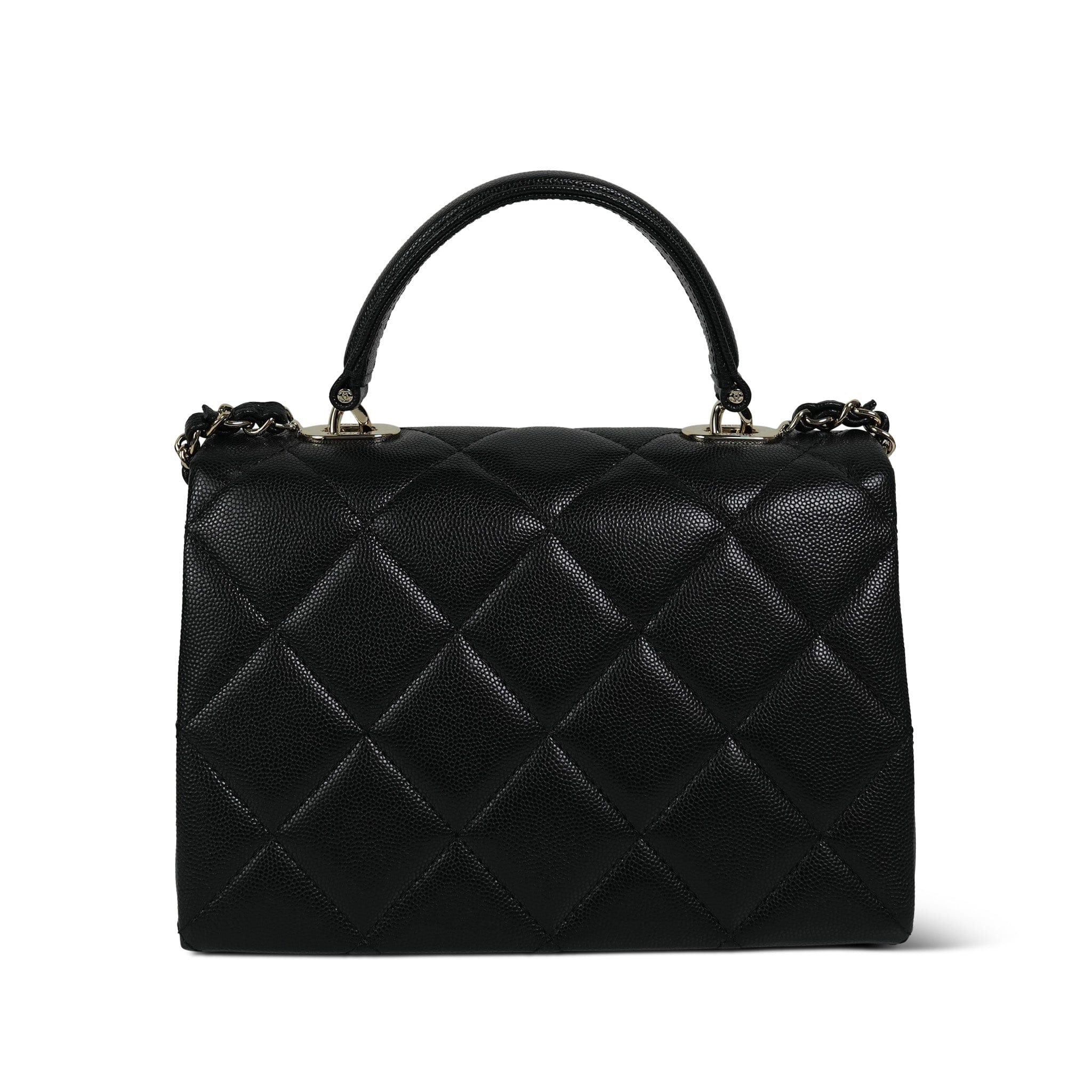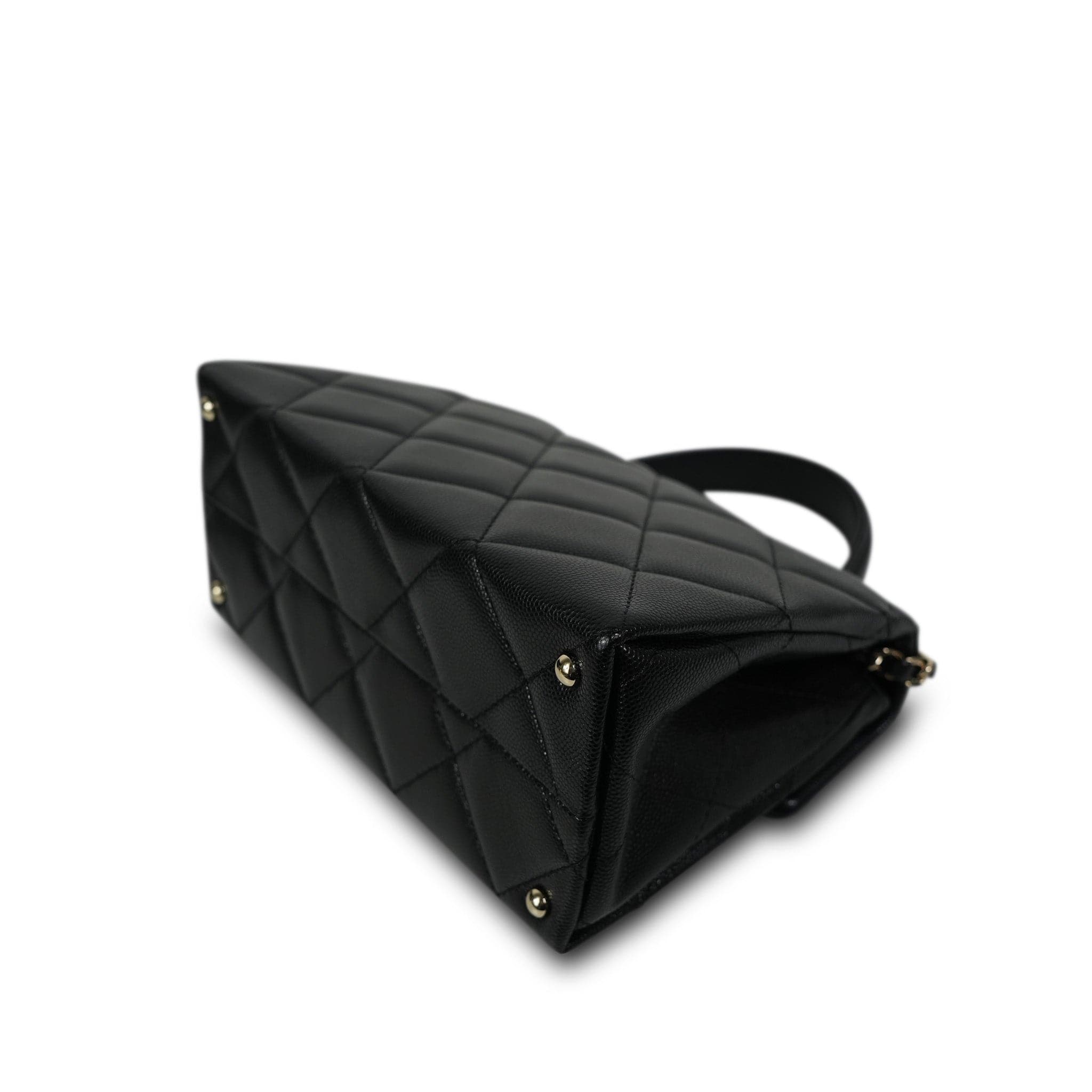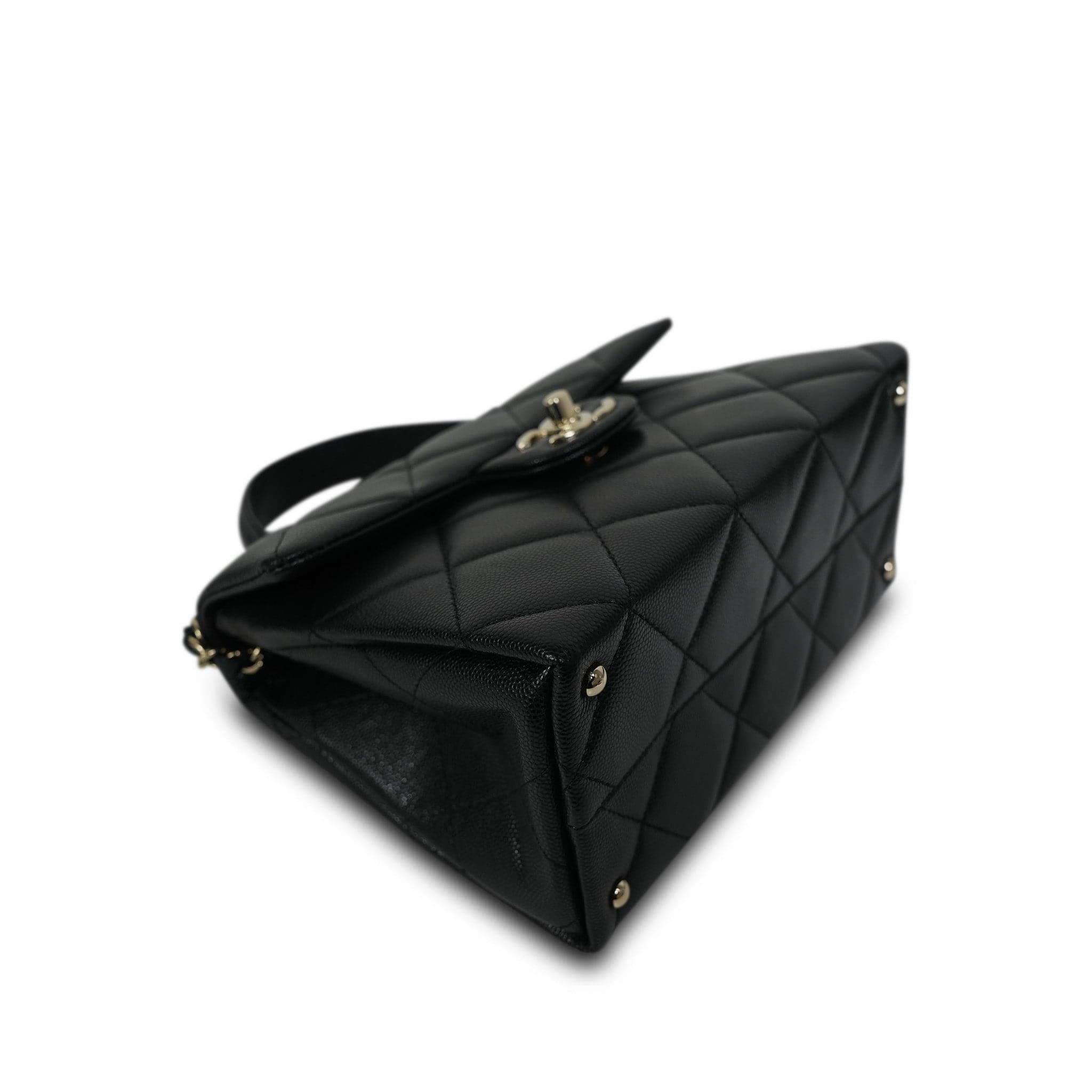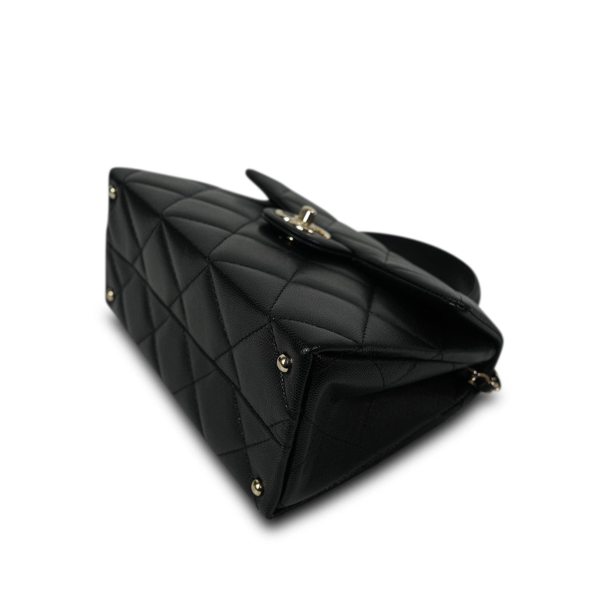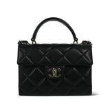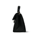 24P Black Caviar Quilted Retro Twist Top Handle Flap LGHW