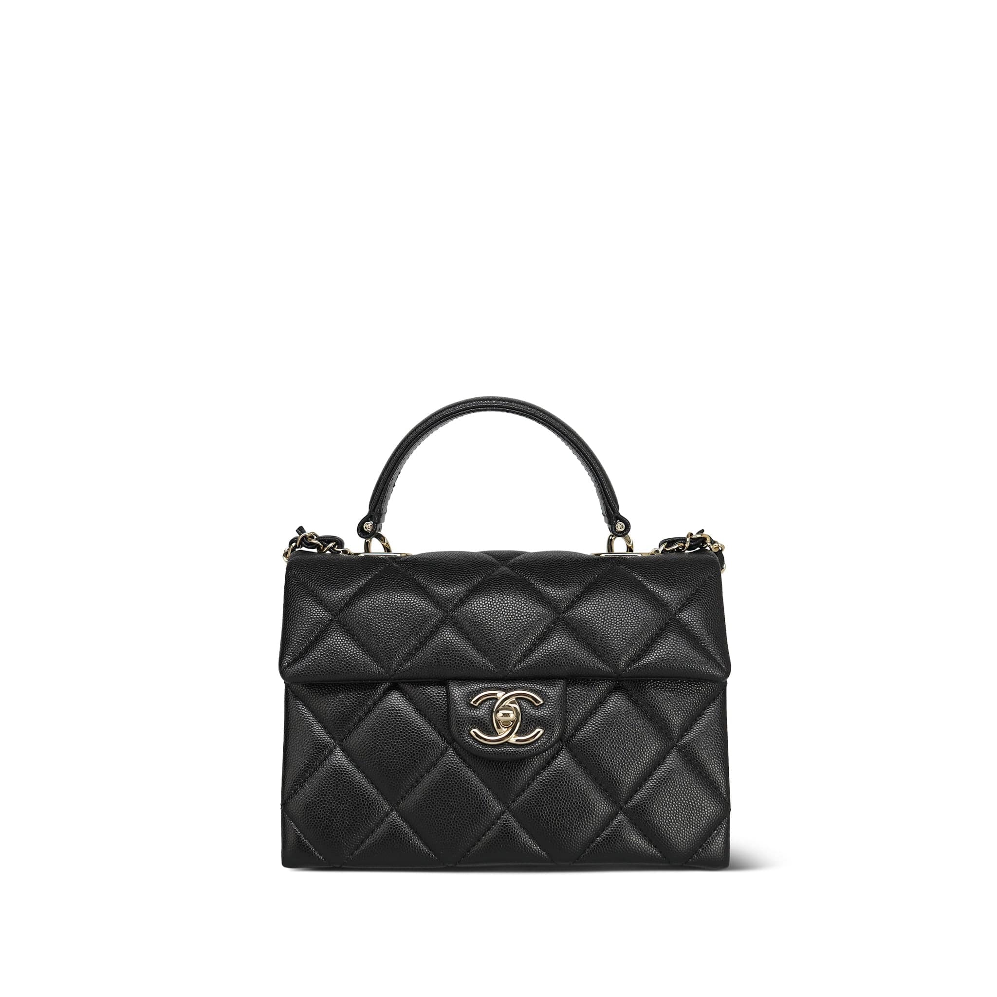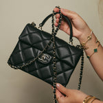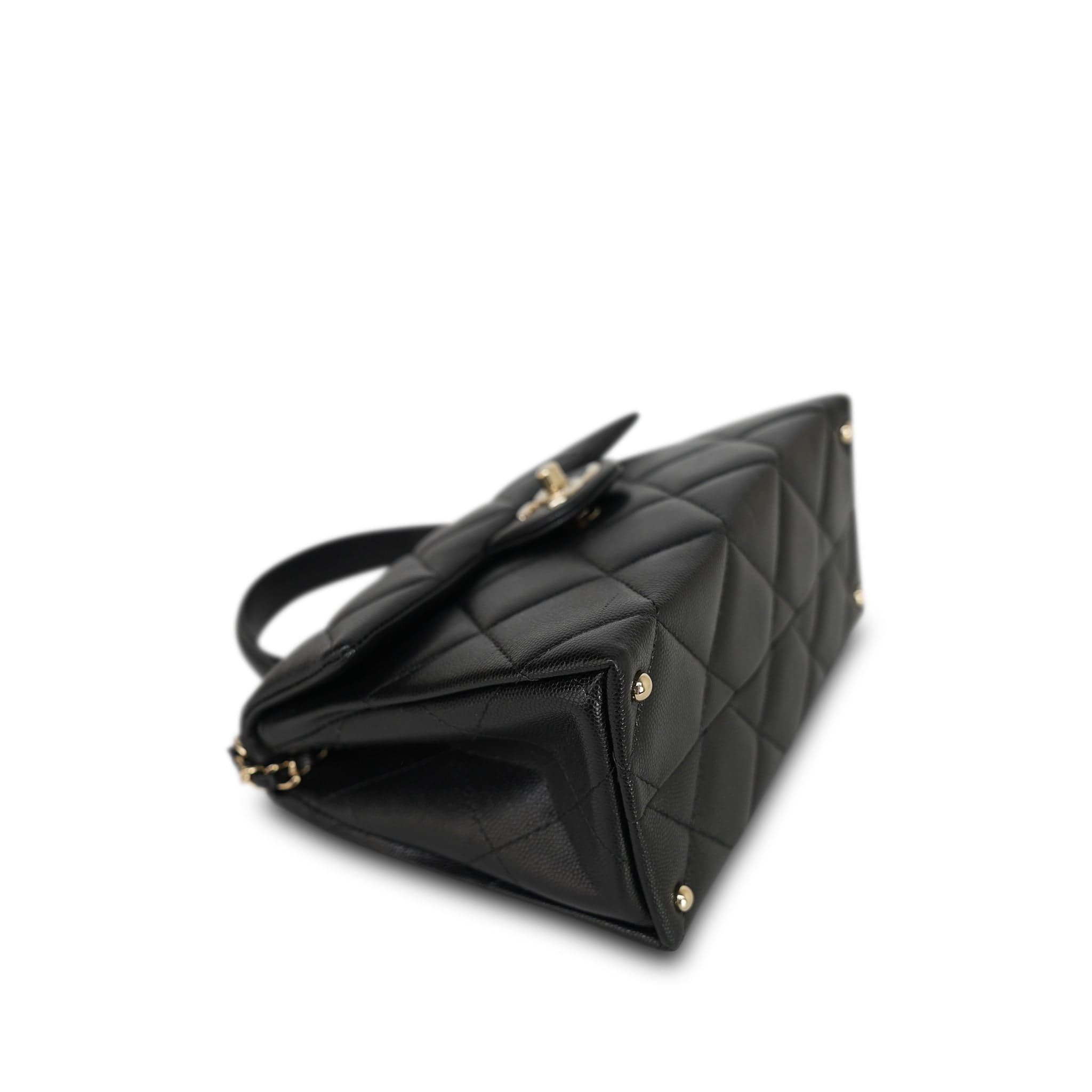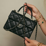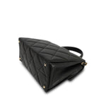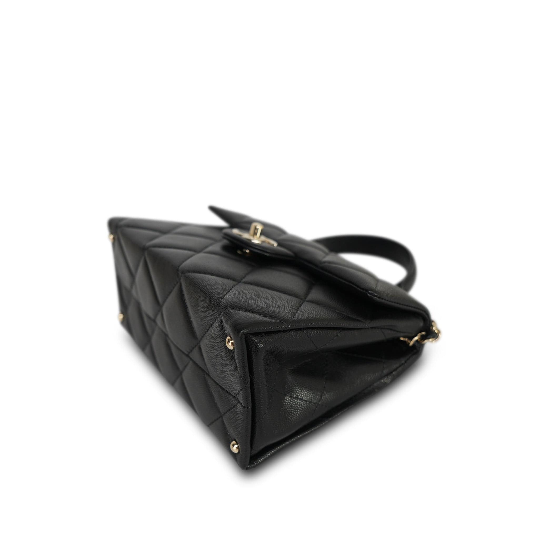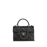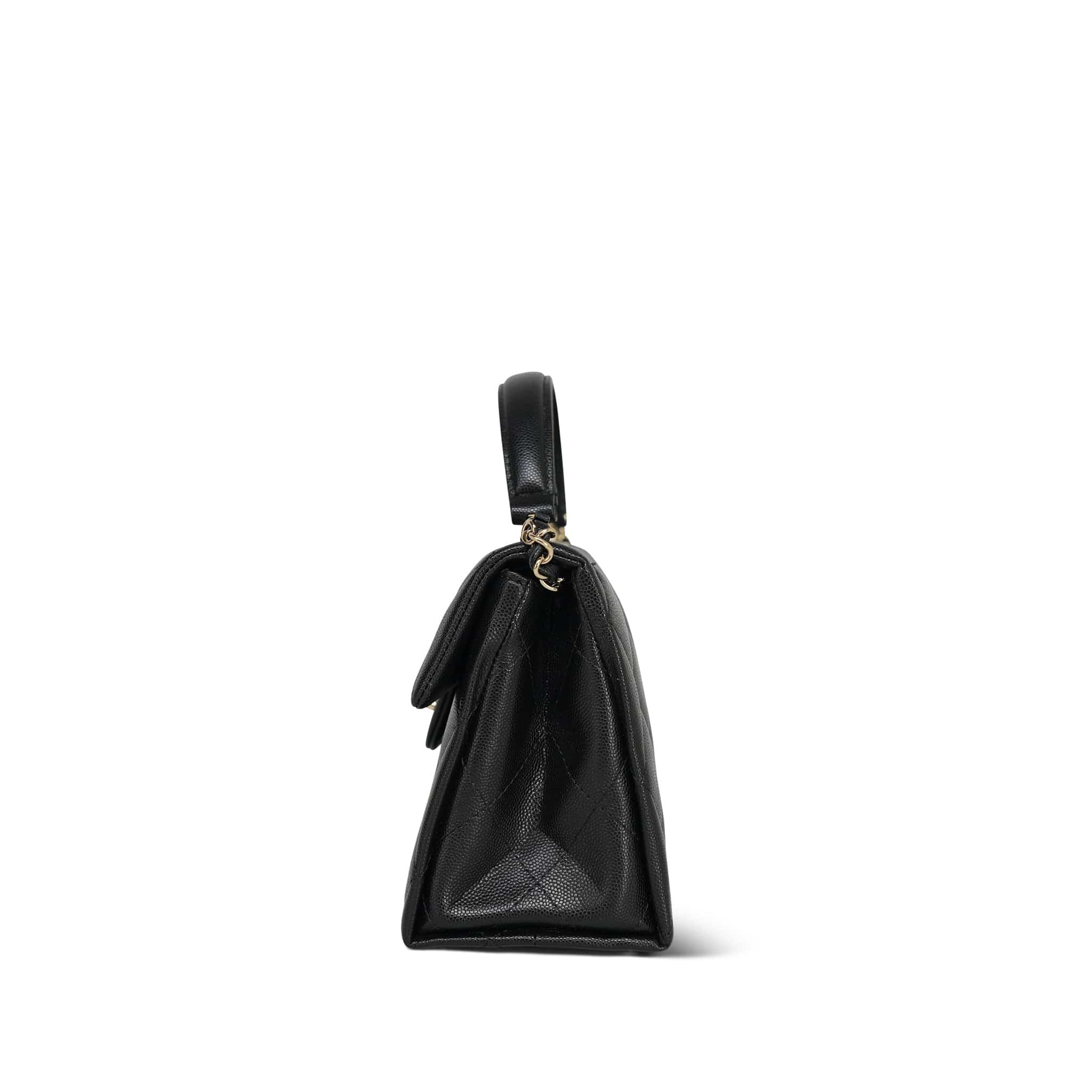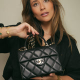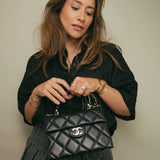 24P Black Caviar Quilted Retro Twist Top Handle Flap Light Gold Hardware
