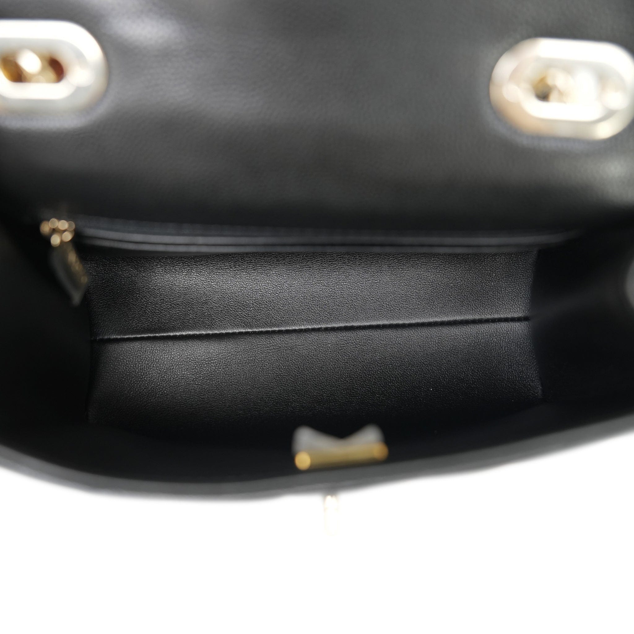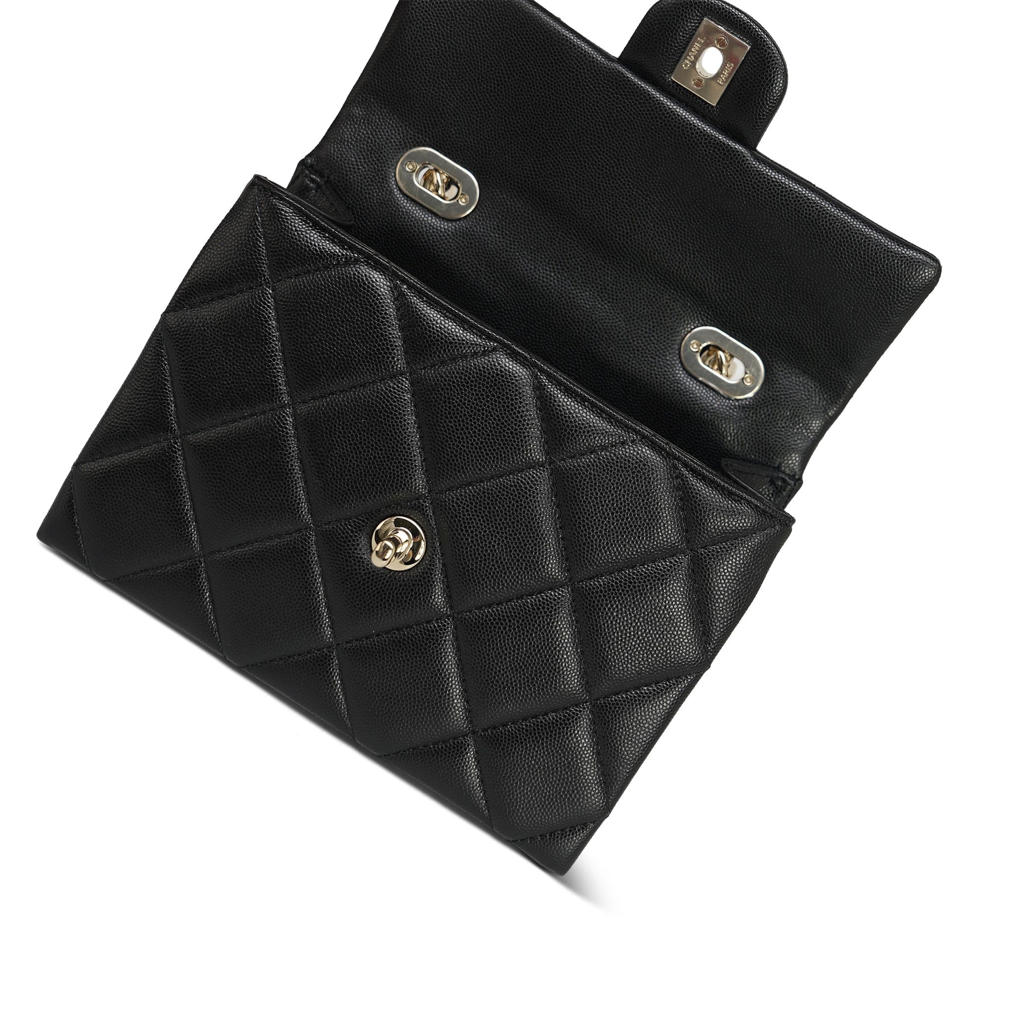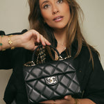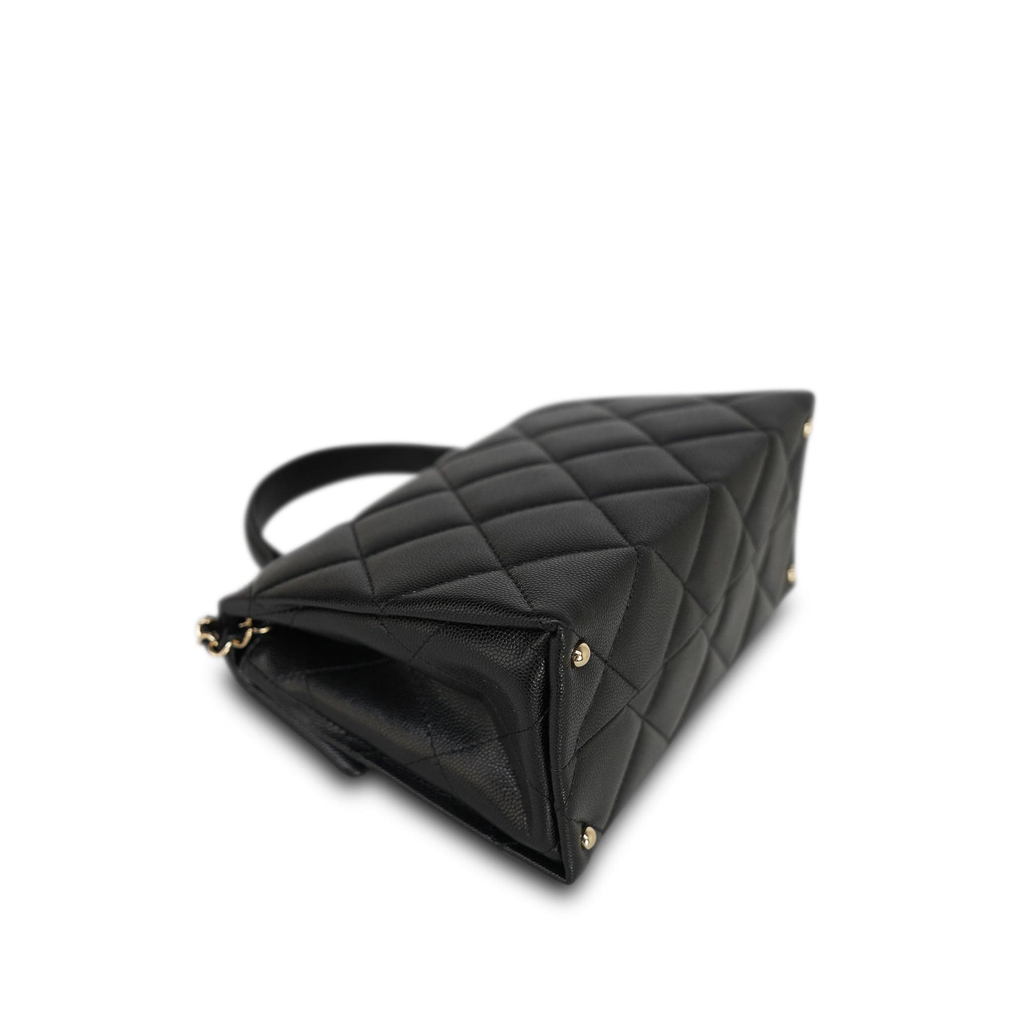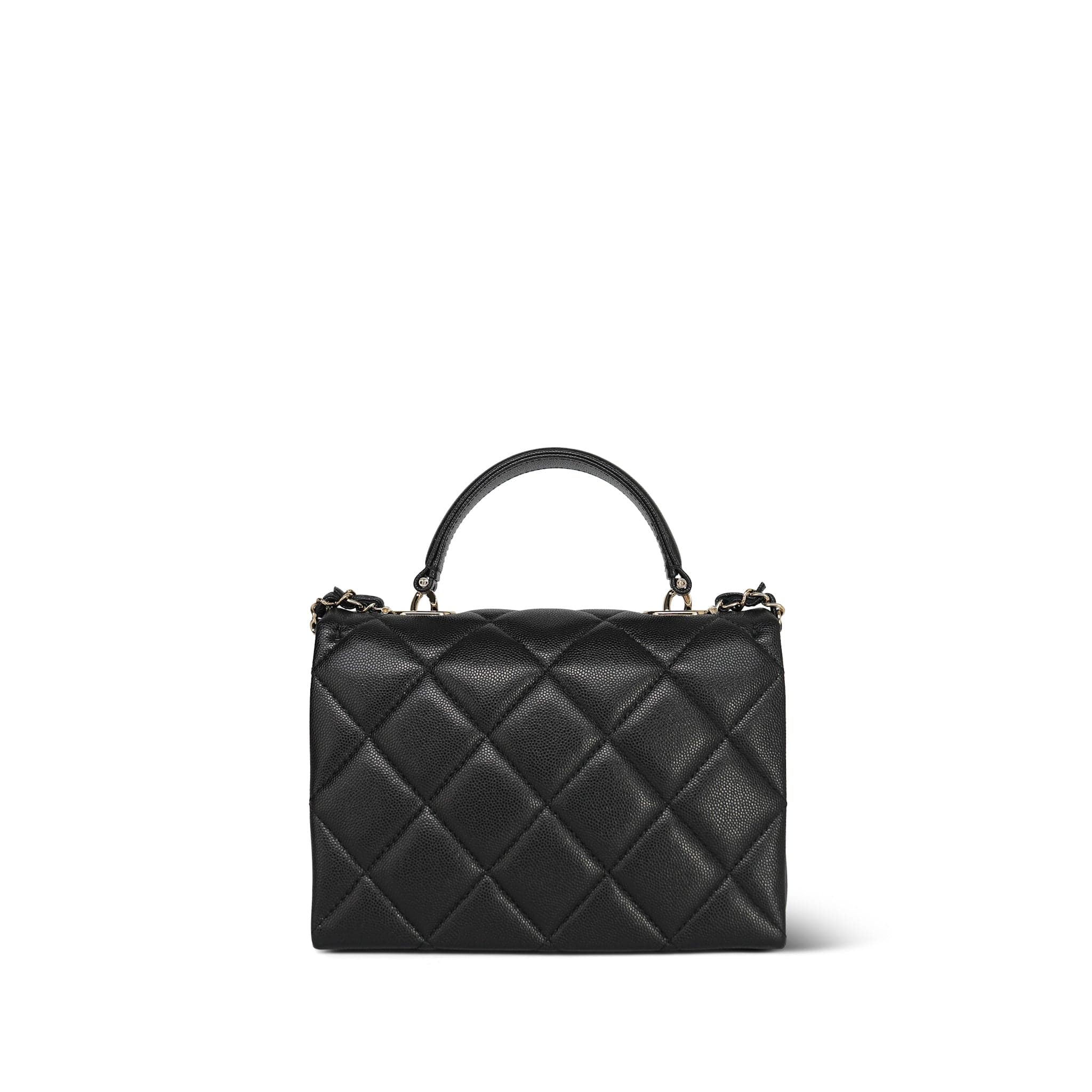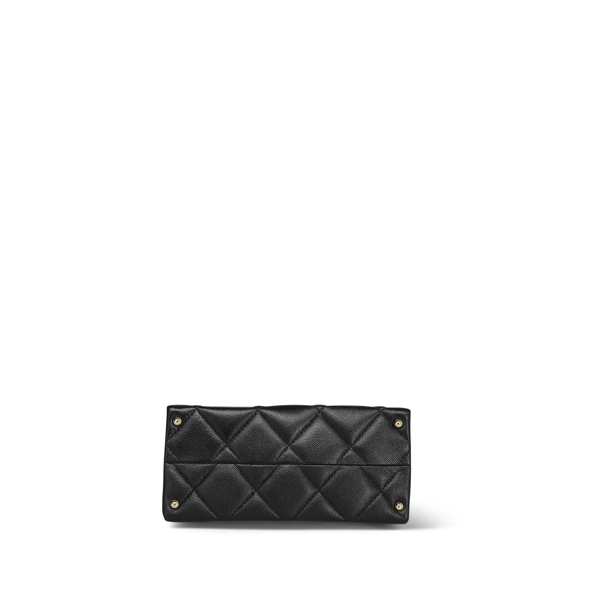 24P Black Caviar Quilted Retro Twist Top Handle Flap Light Gold Hardware