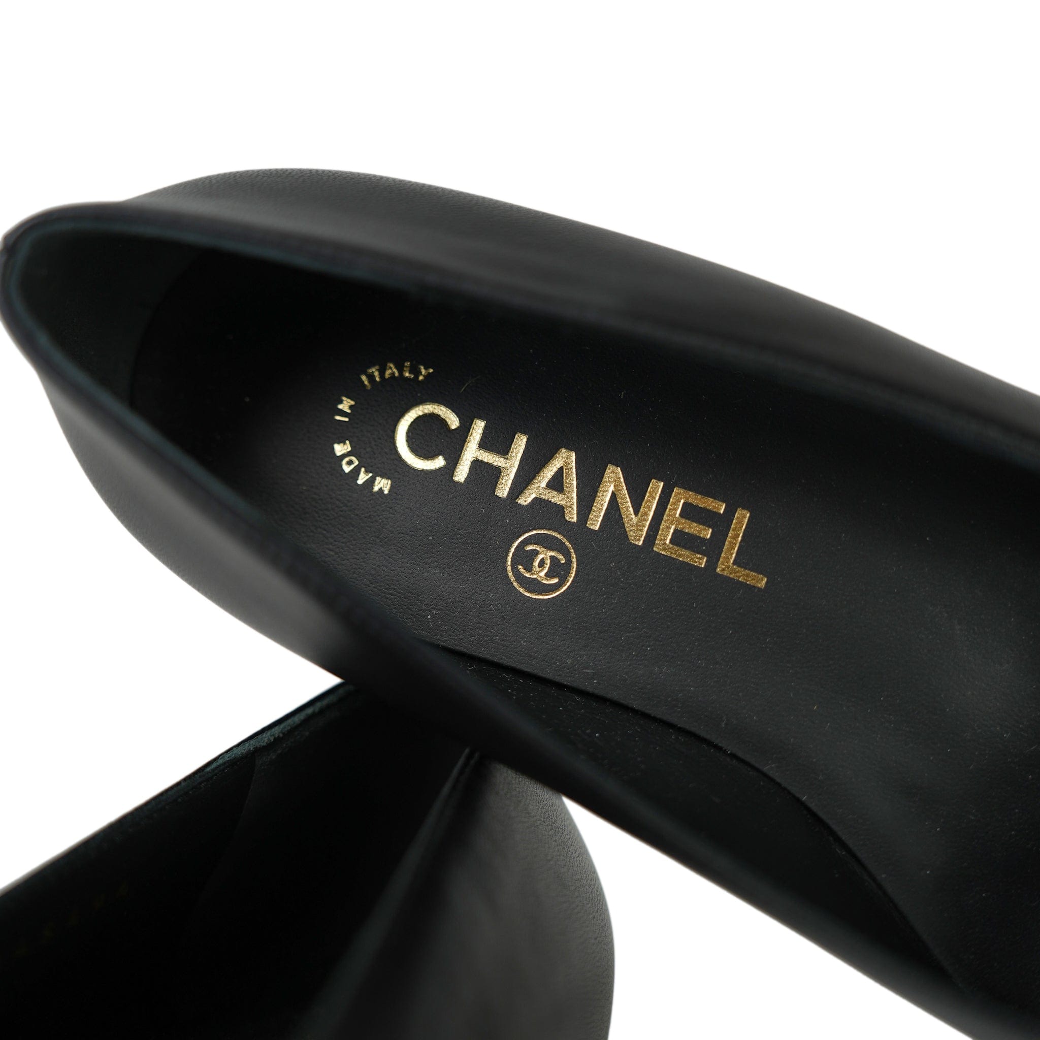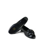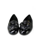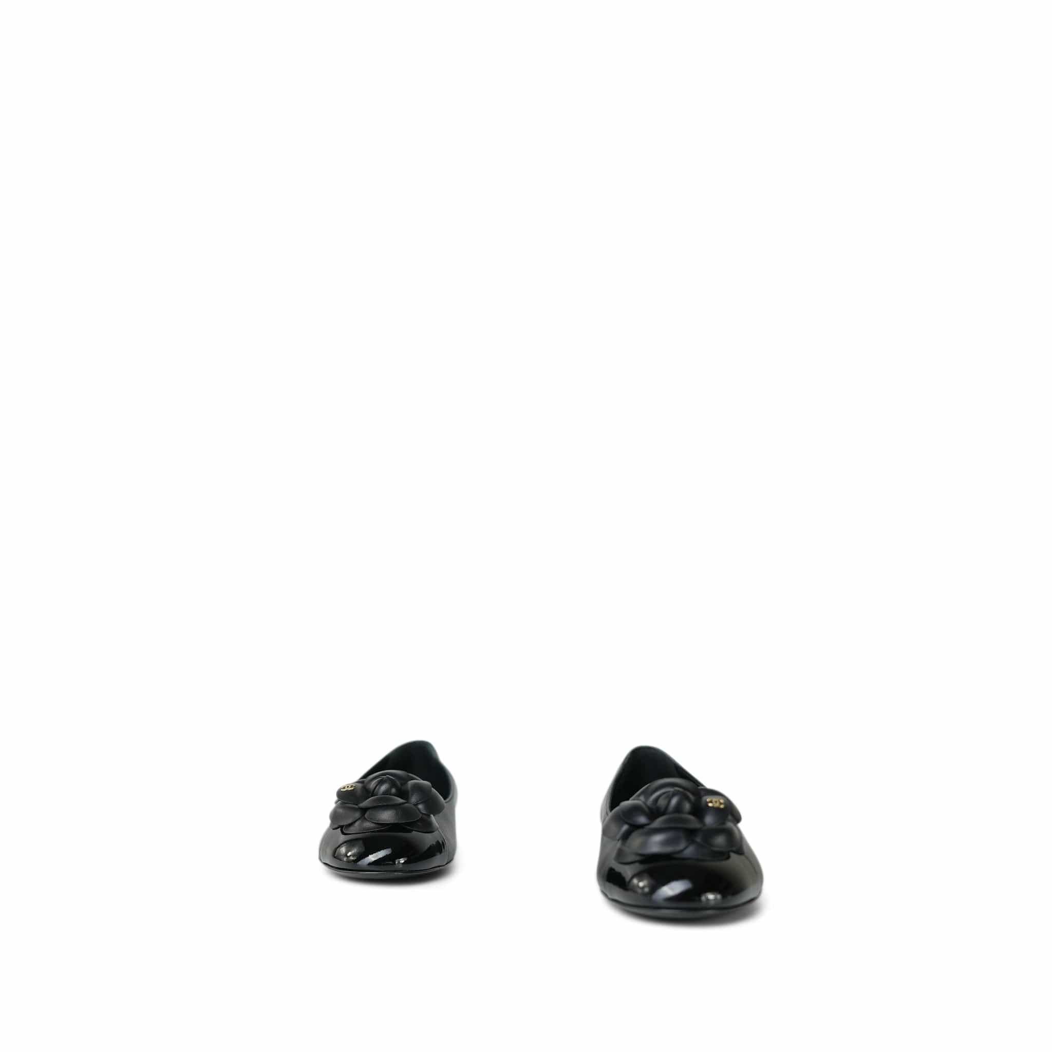 24P Black Lambskin Camellia CC Patent Cap Toe Ballerina Flats Size 36.5