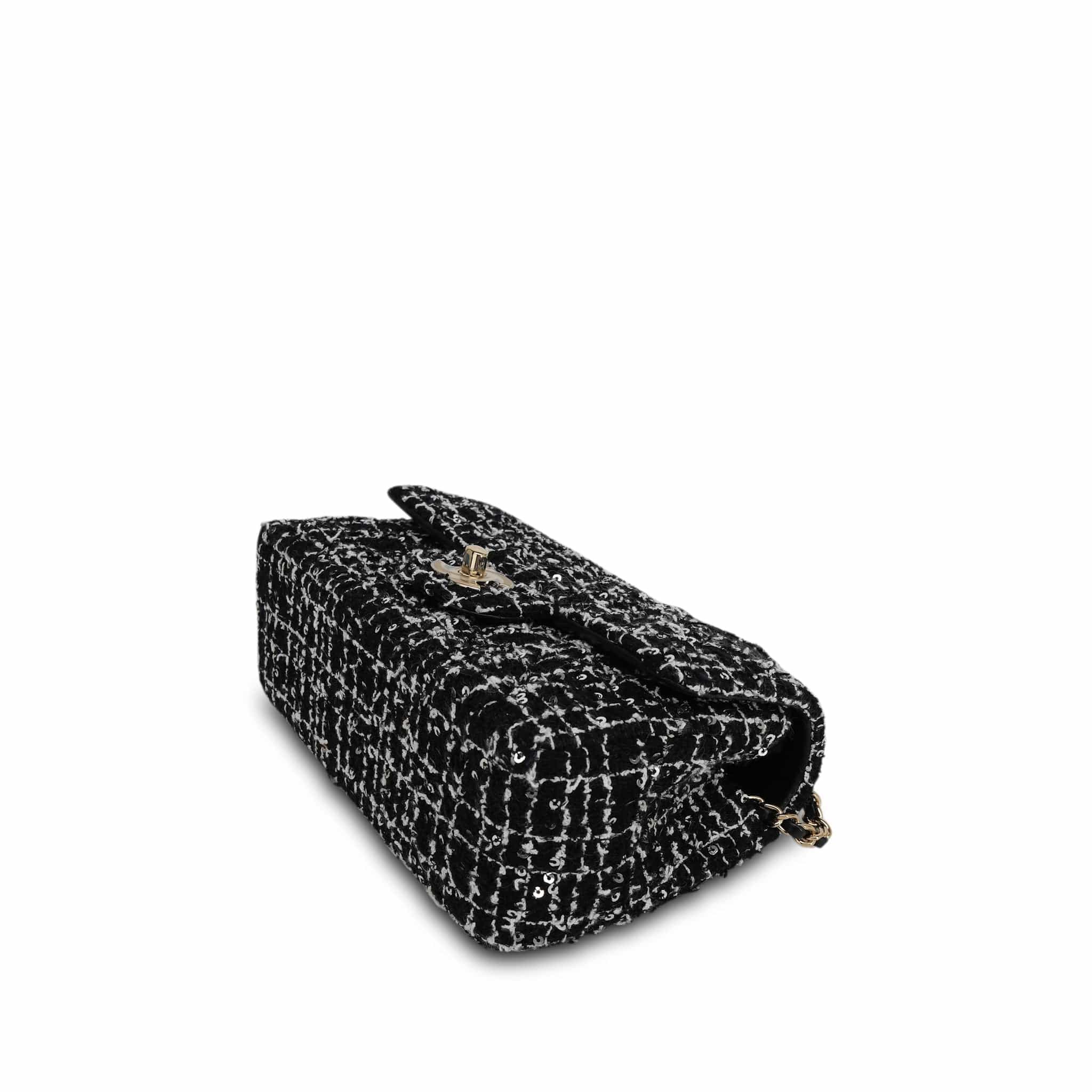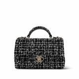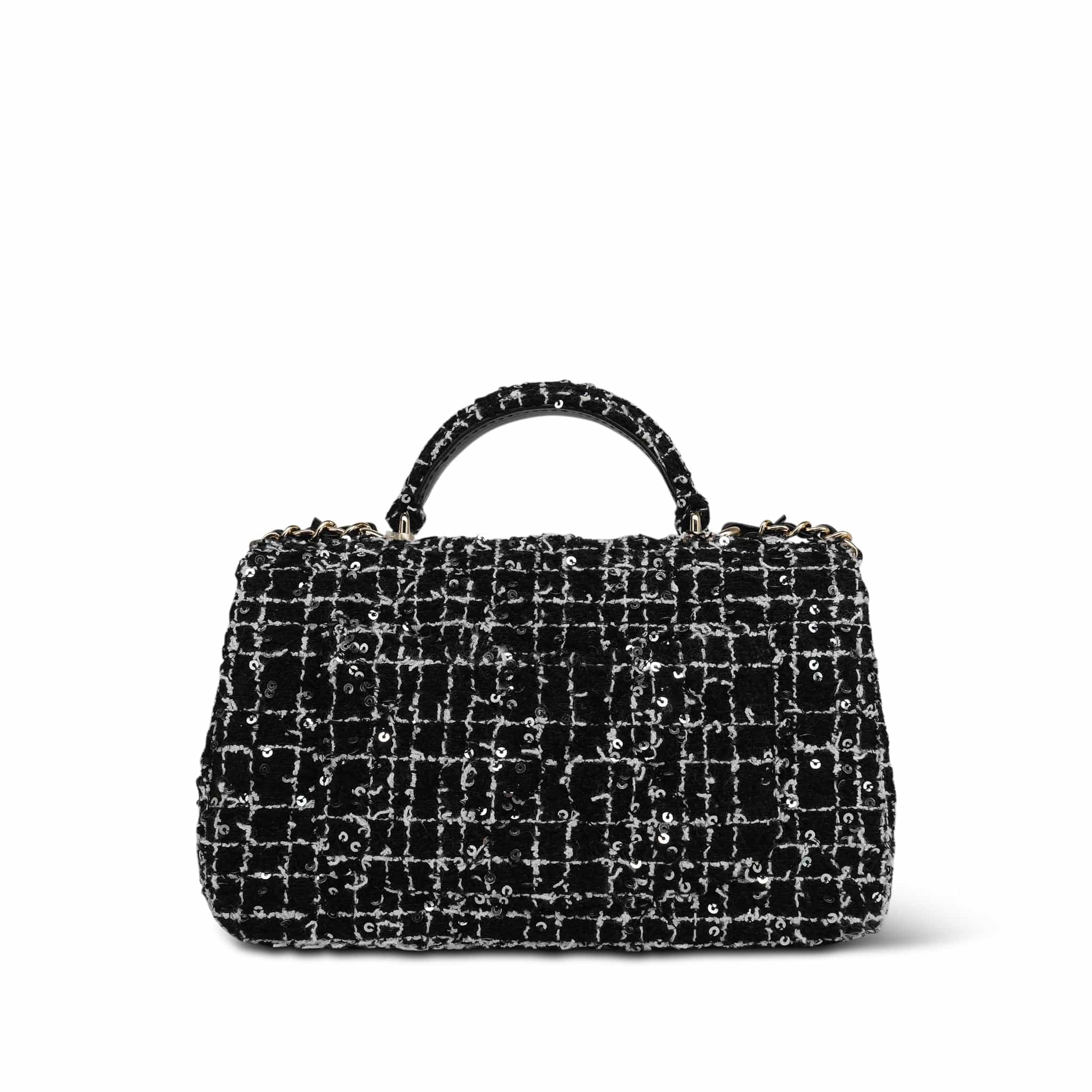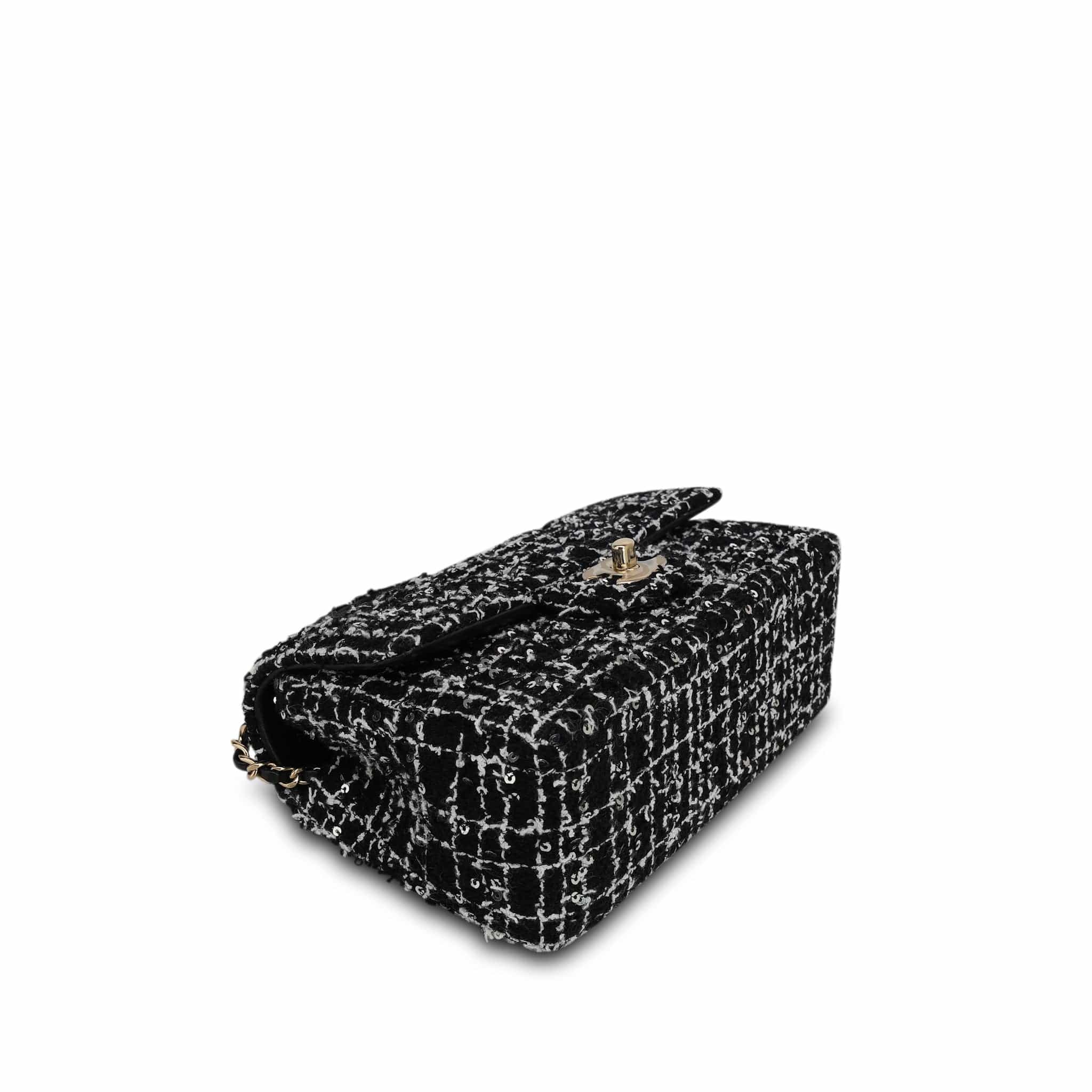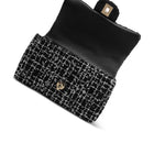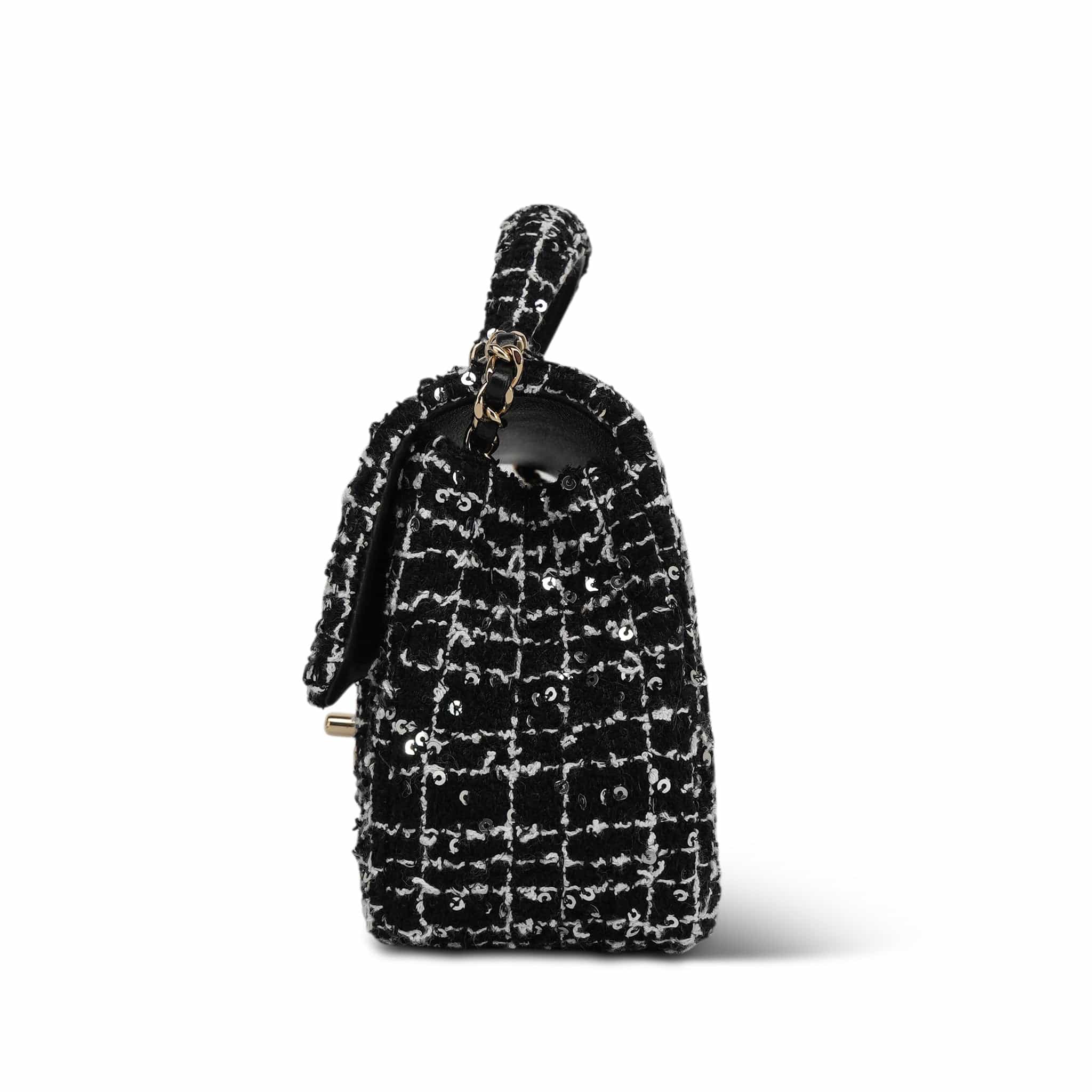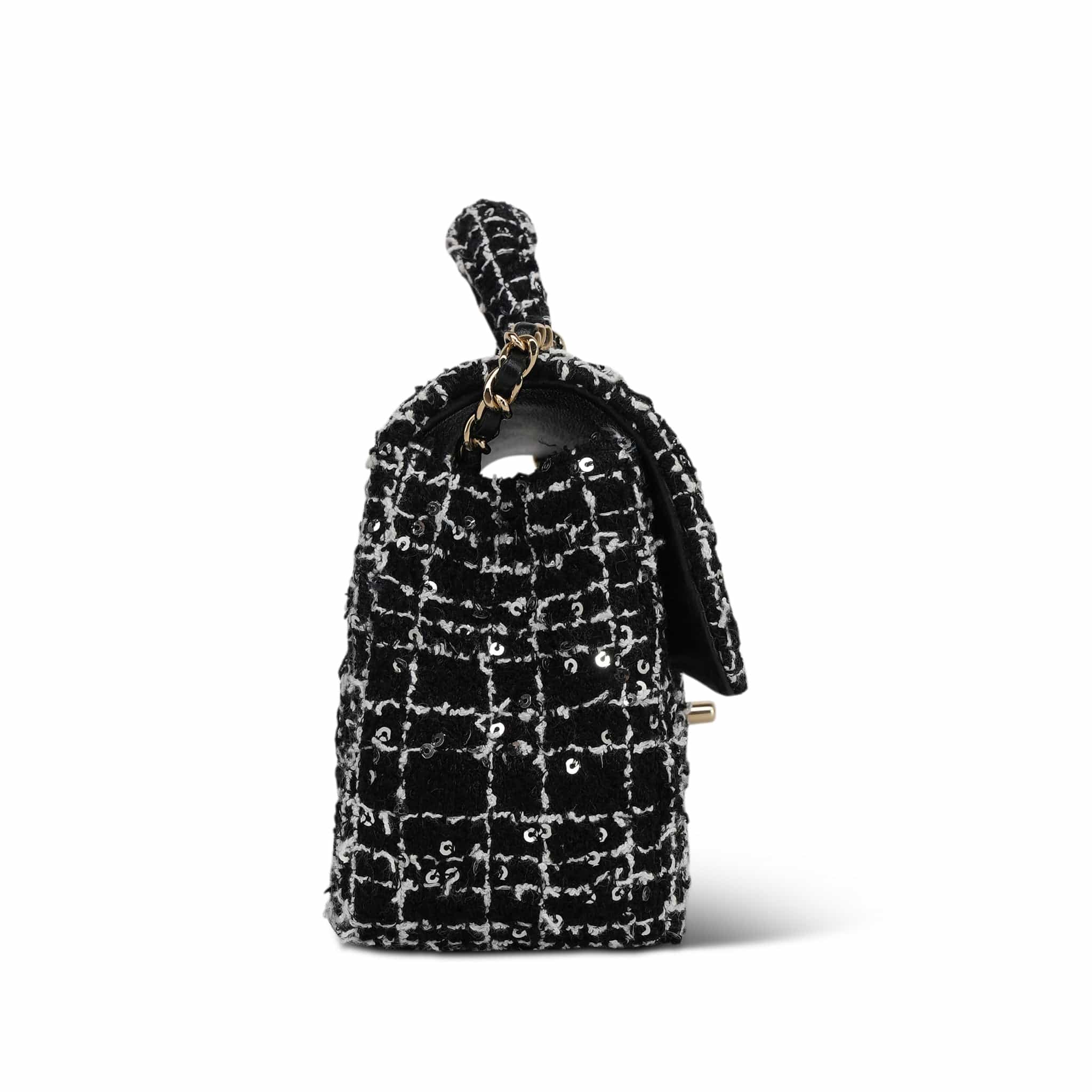 24P Black White Tweed Sequin Quilted Mini Top Handle LGHW