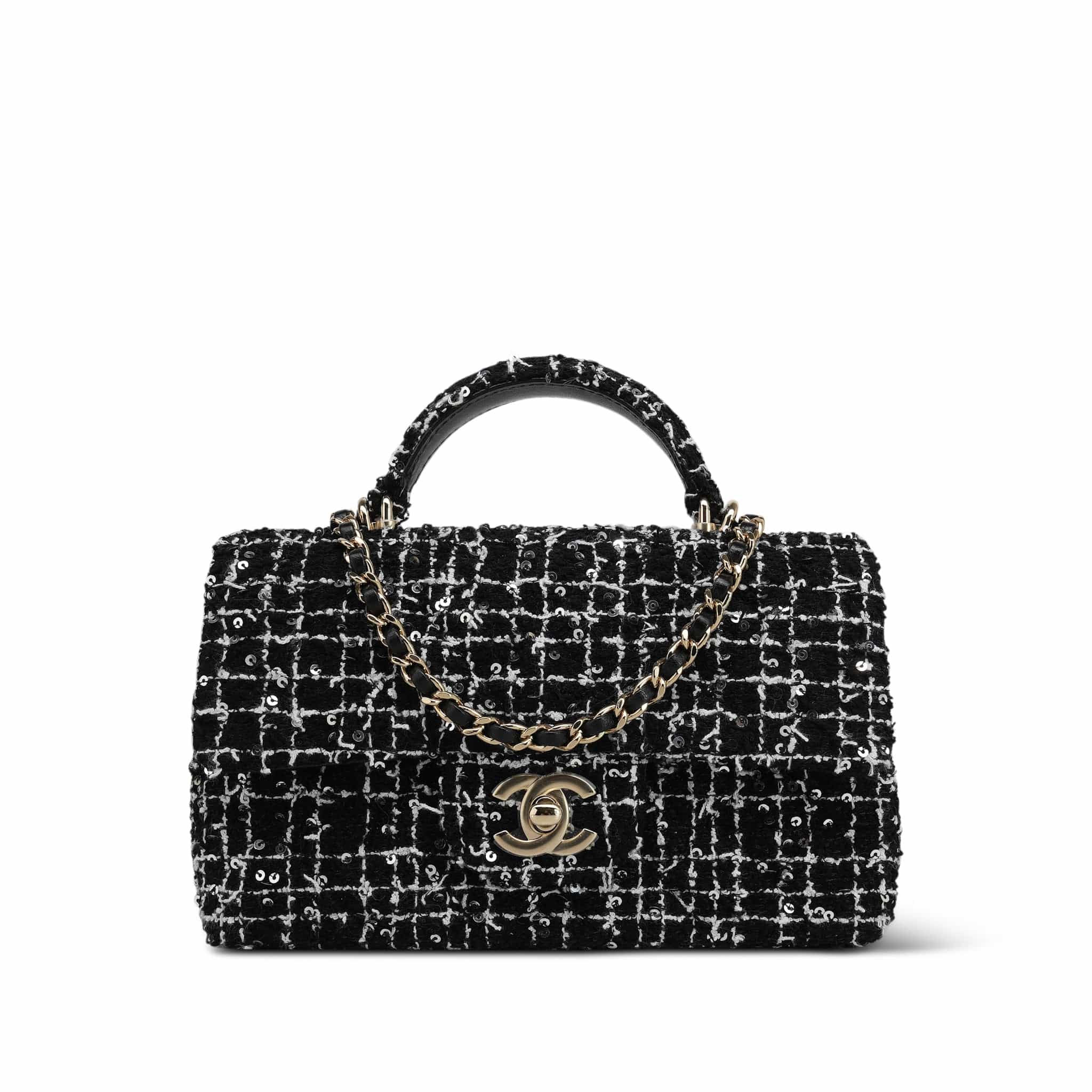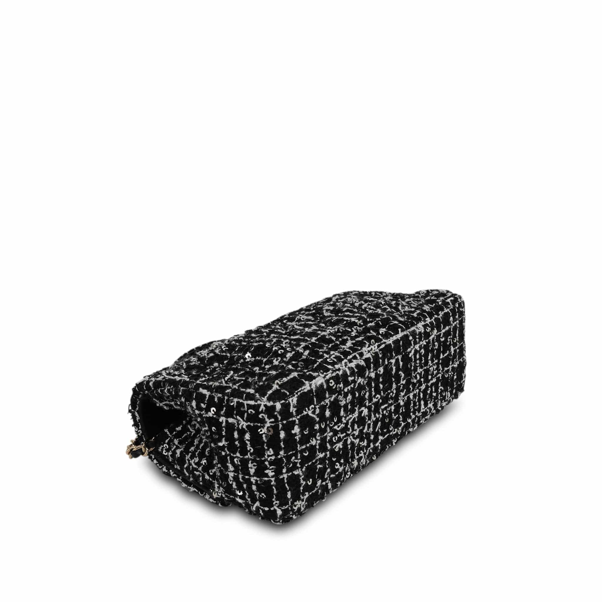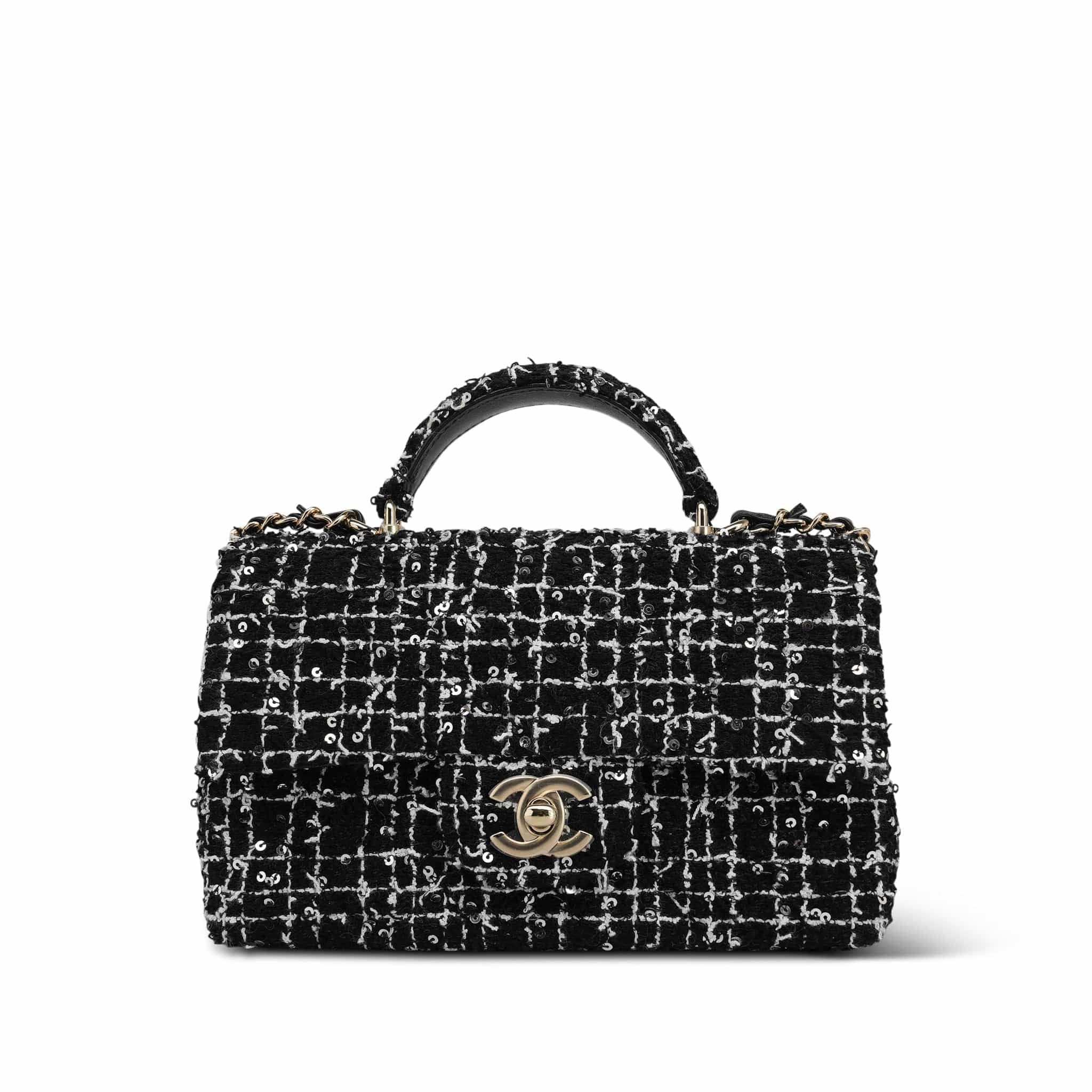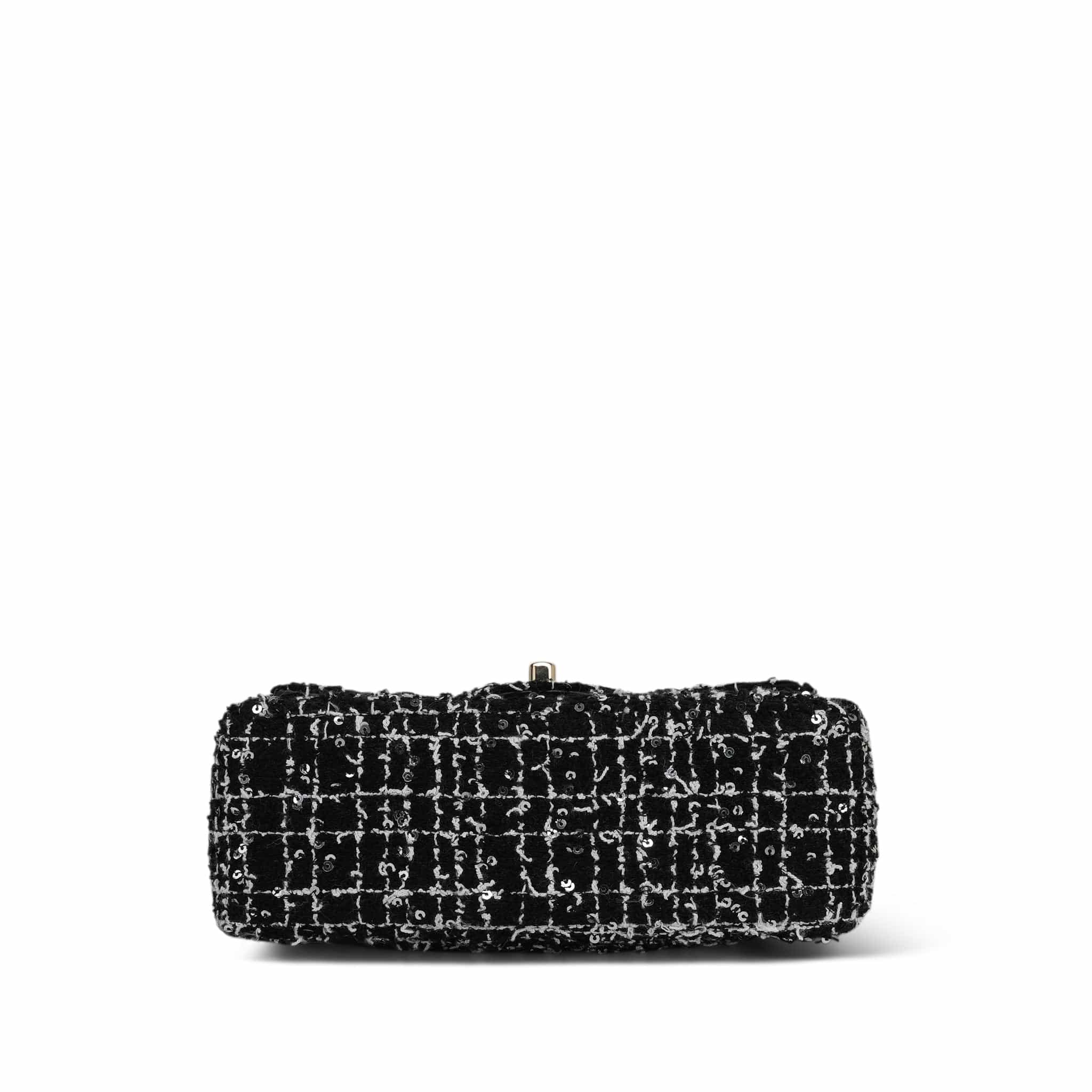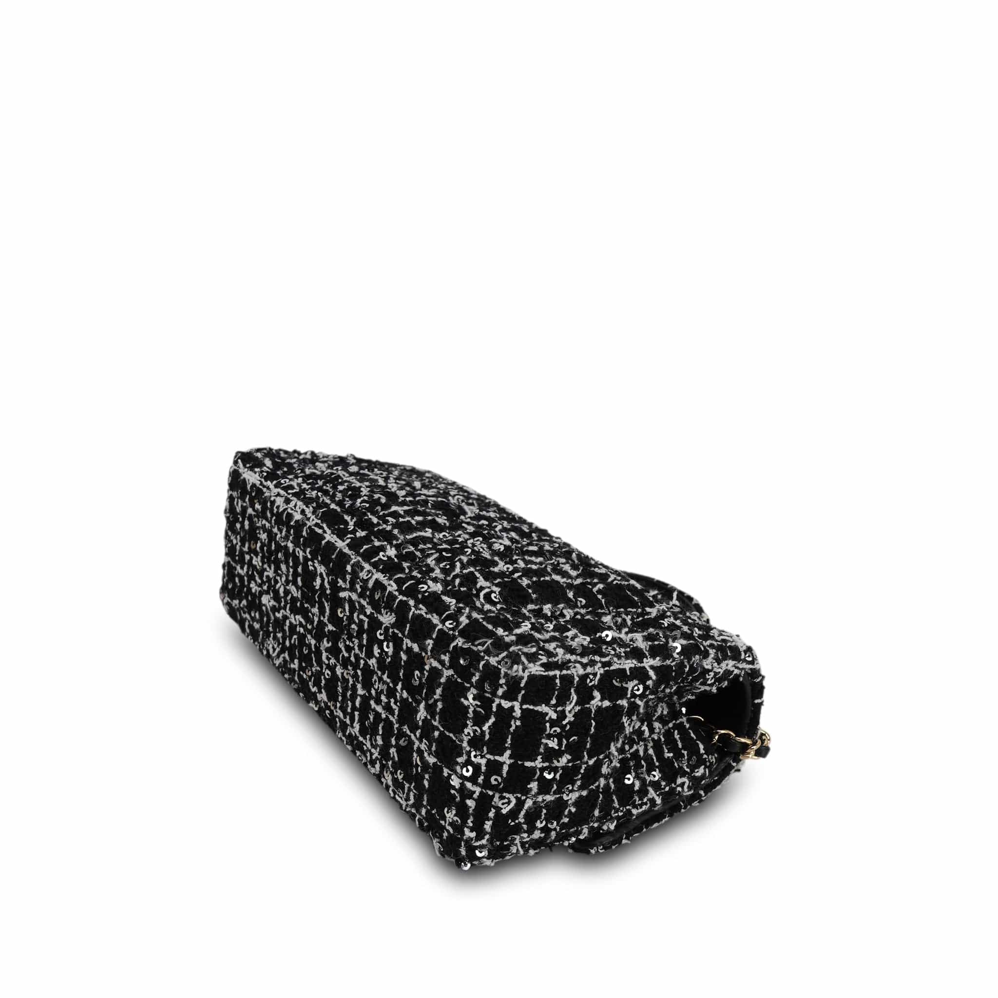24P Black White Tweed Sequin Quilted Mini Top Handle LGHW