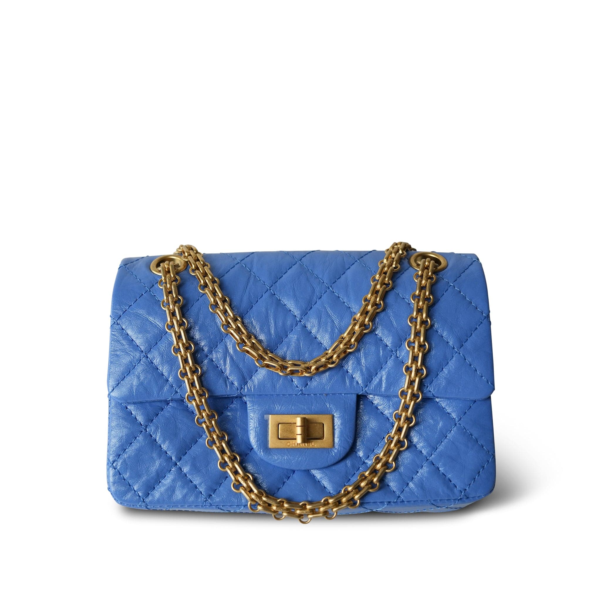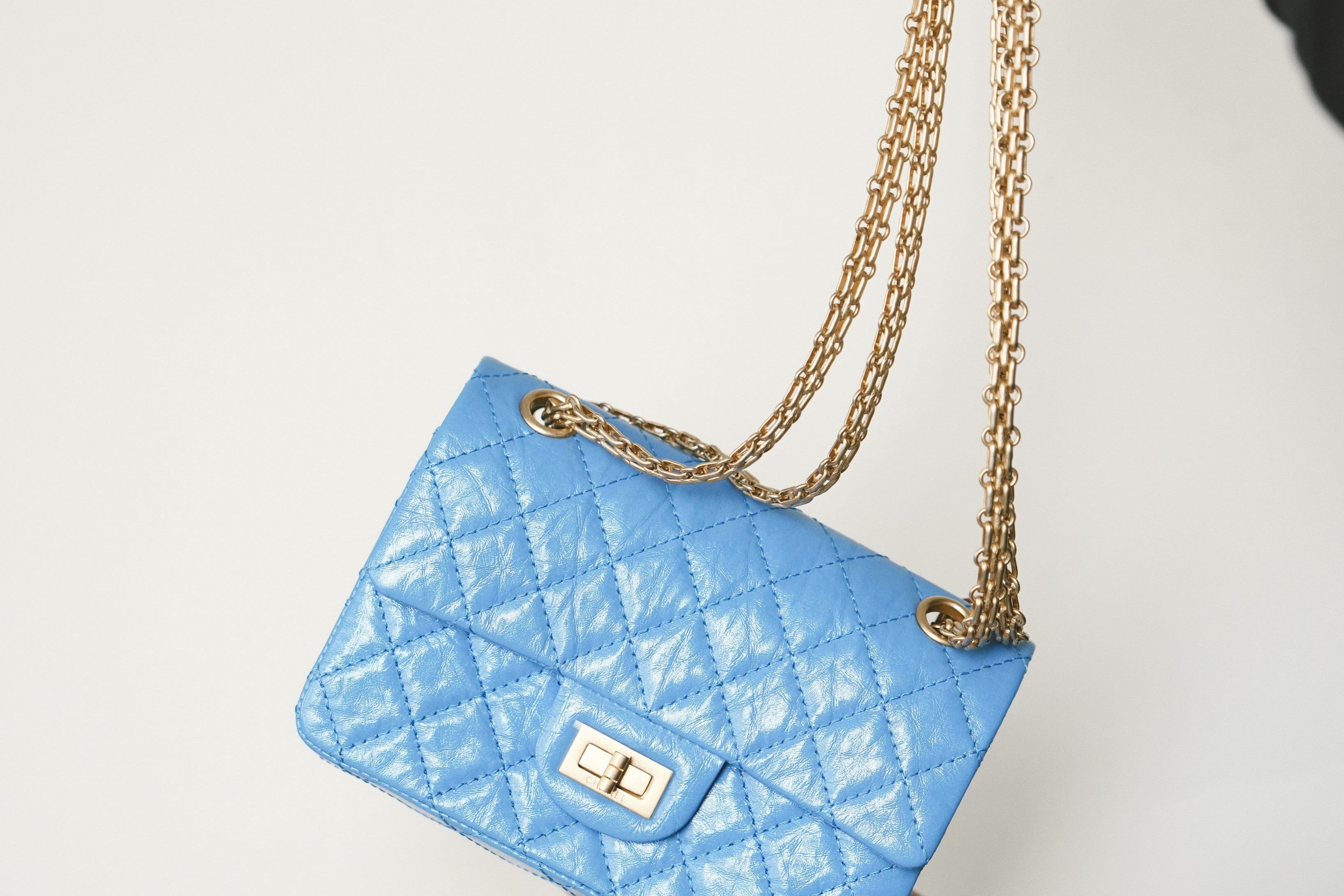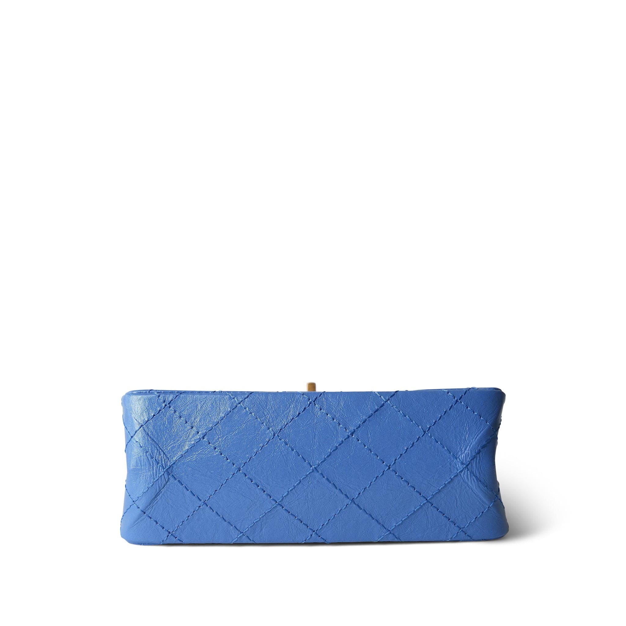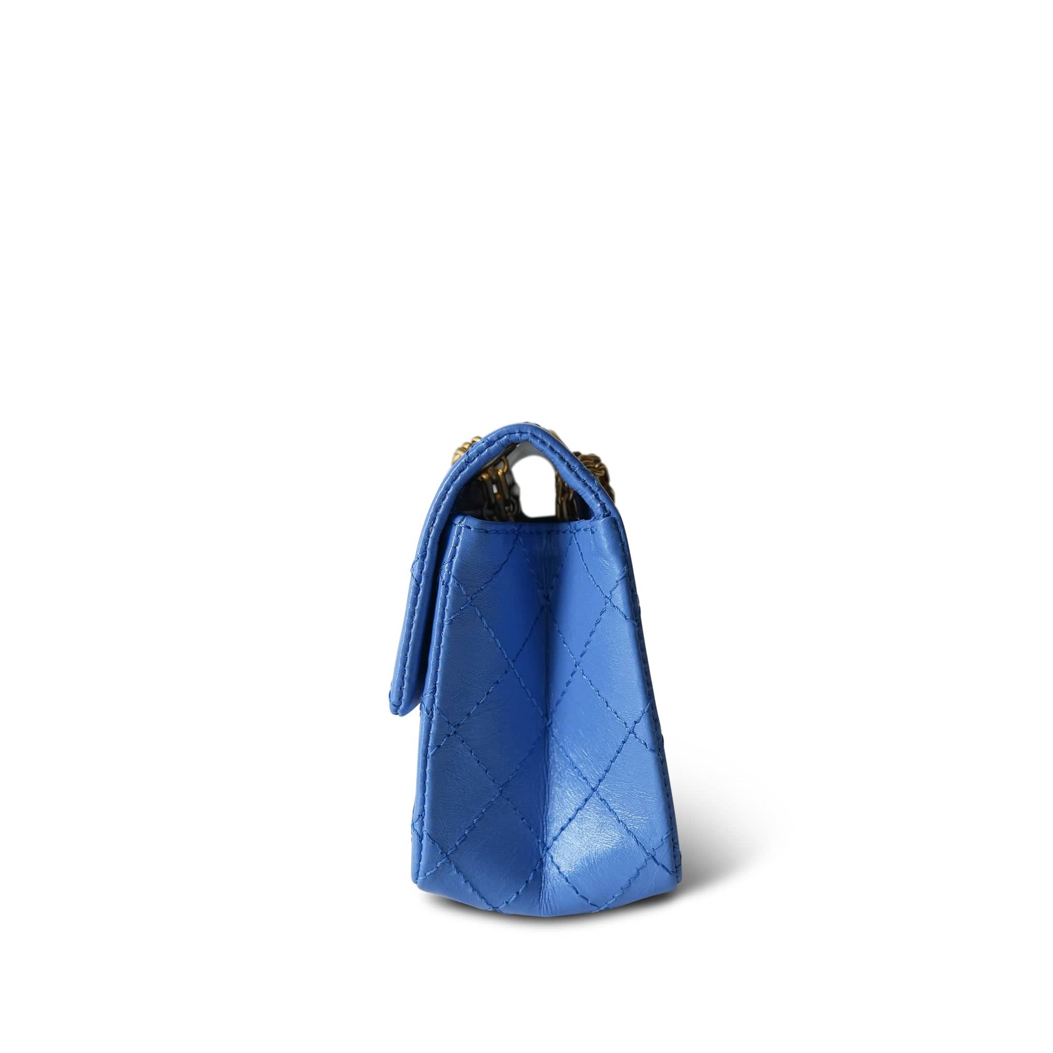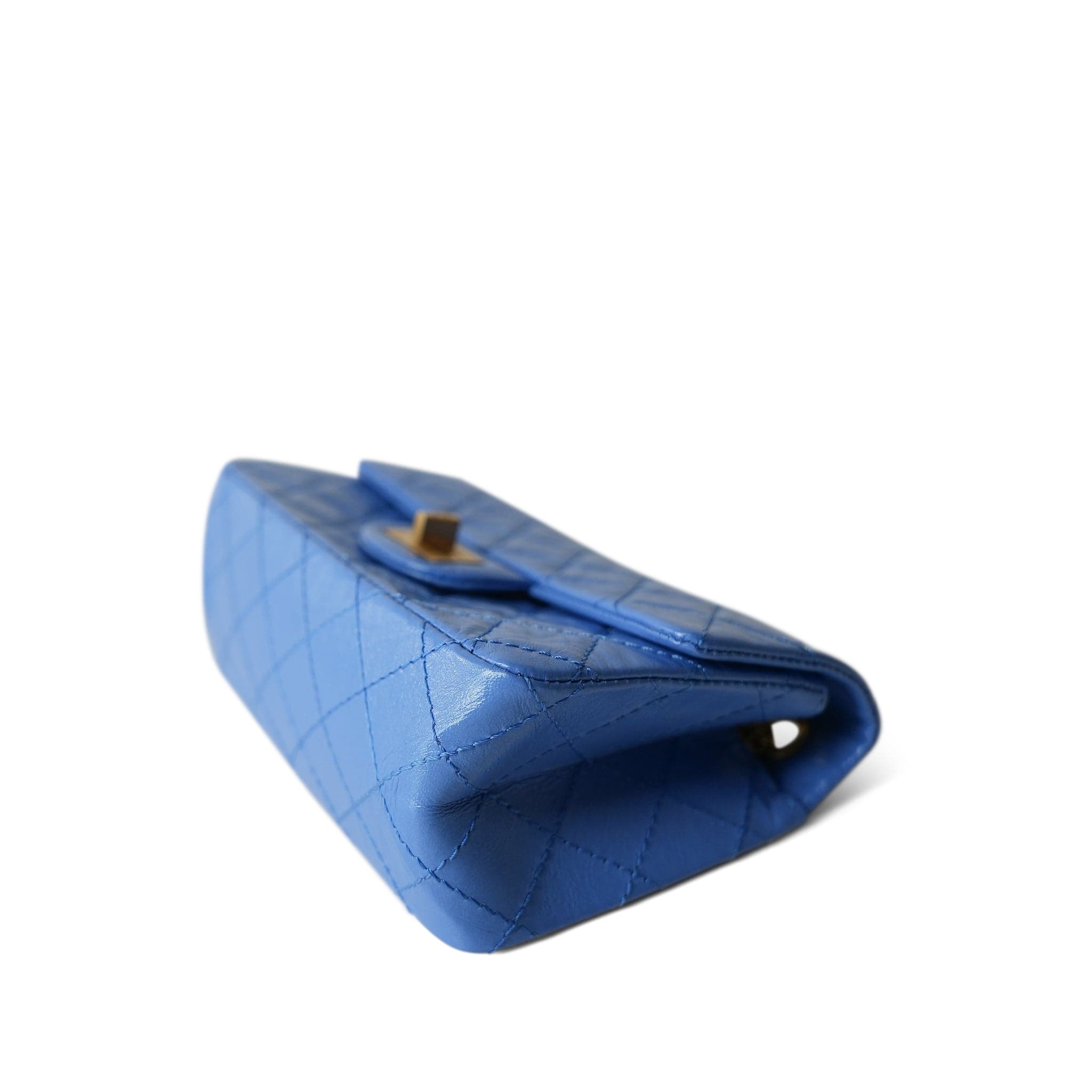 24P Blue Aged Calfskin Quilted Mini Reissue 2.55 Flap Aged Gold Hardware