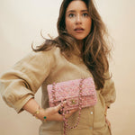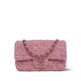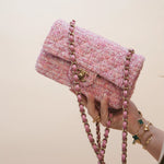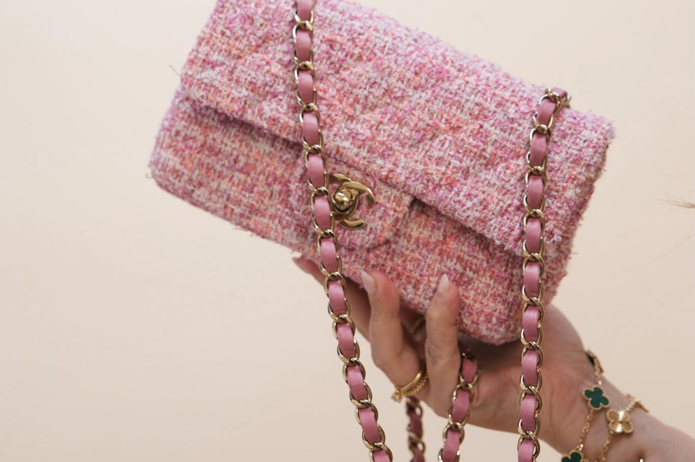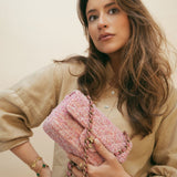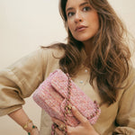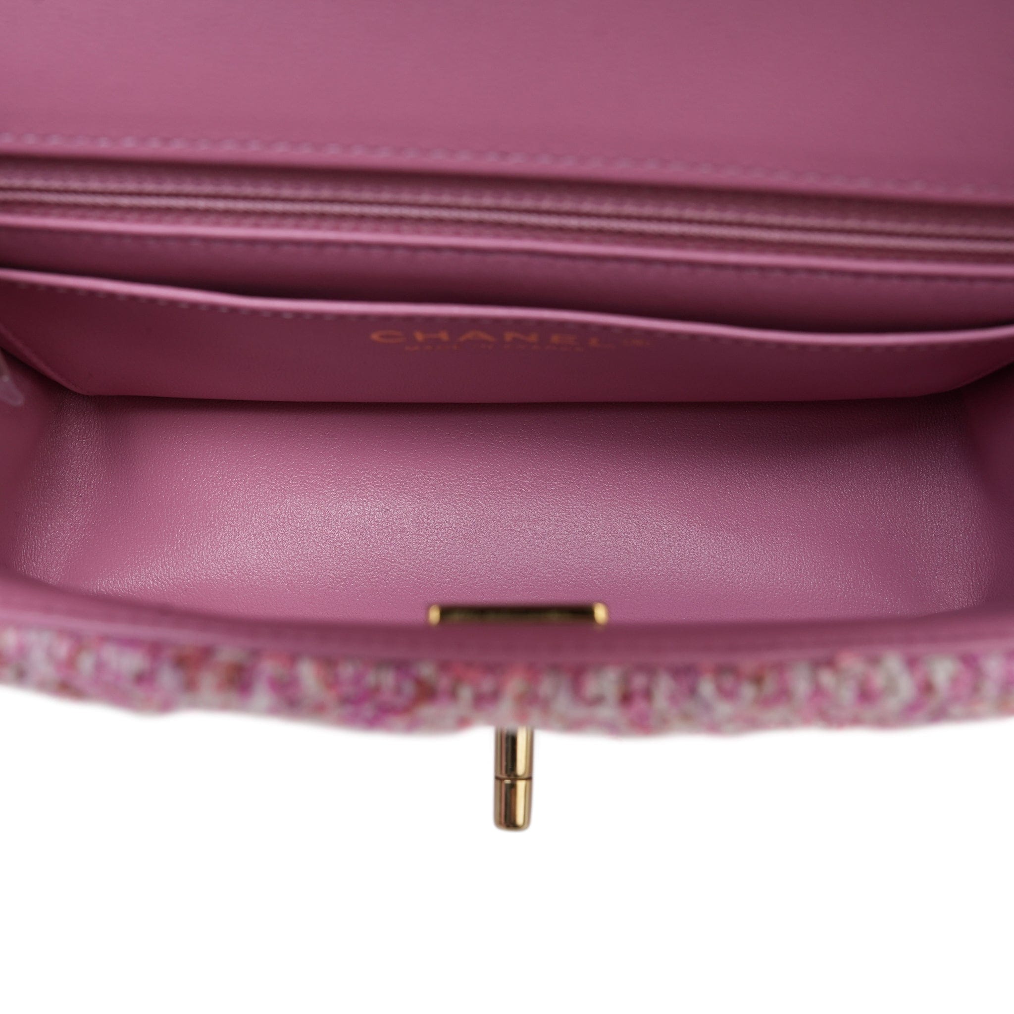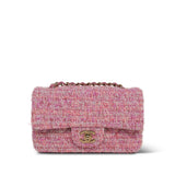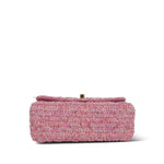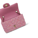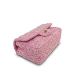 24P Pink White Tweed Quilted Mini Rectangular Flap Light Gold Hardware