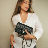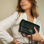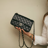 24S Black Lambskin Quilted Mini Rectangular Flap Light Gold Hardware