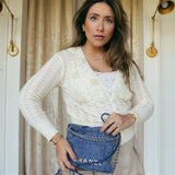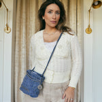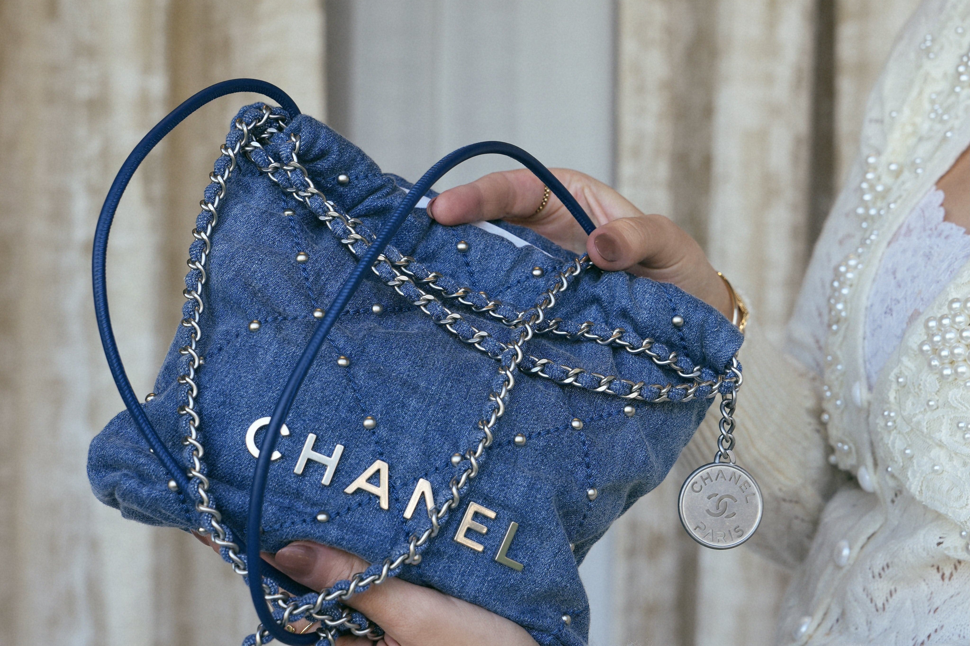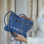 24S Blue Denim Quilted Studded Mini 22 Bag Aged Silver Hardware