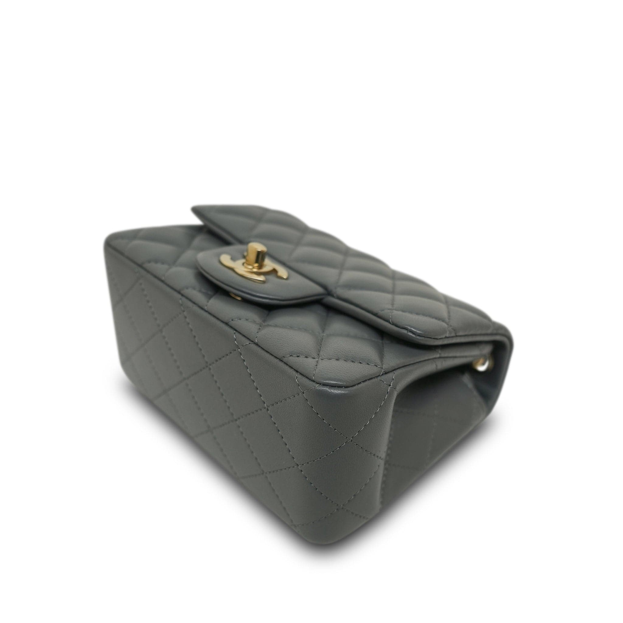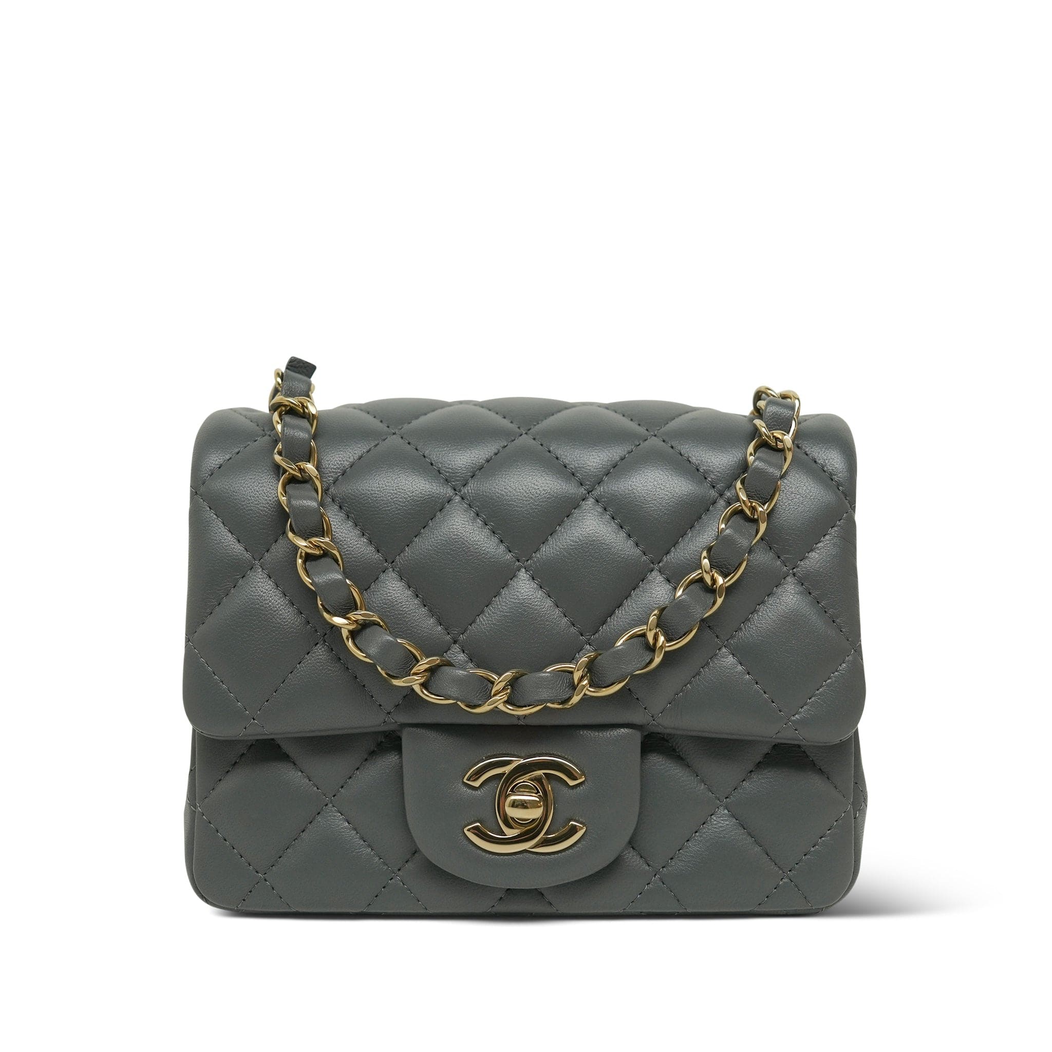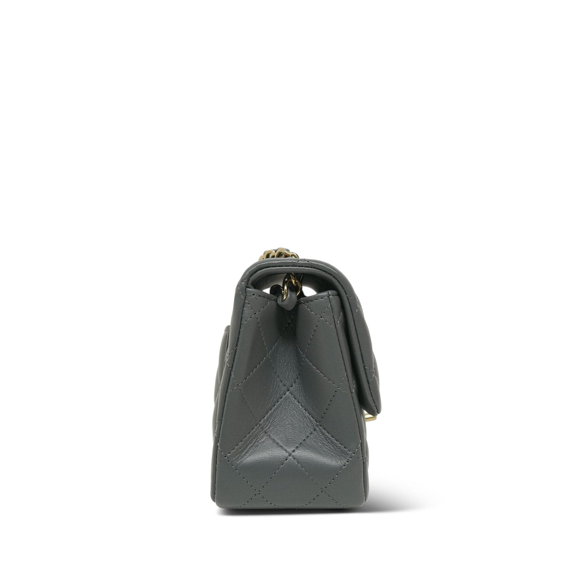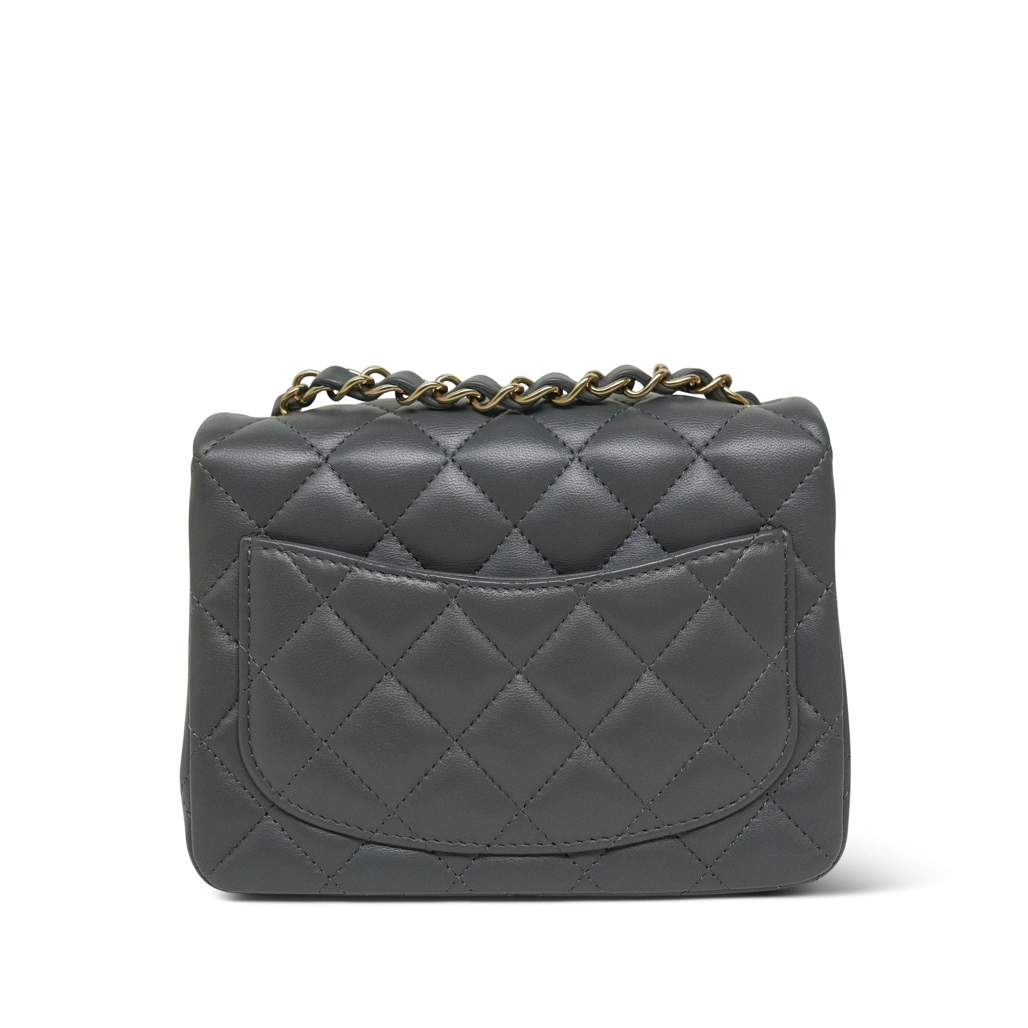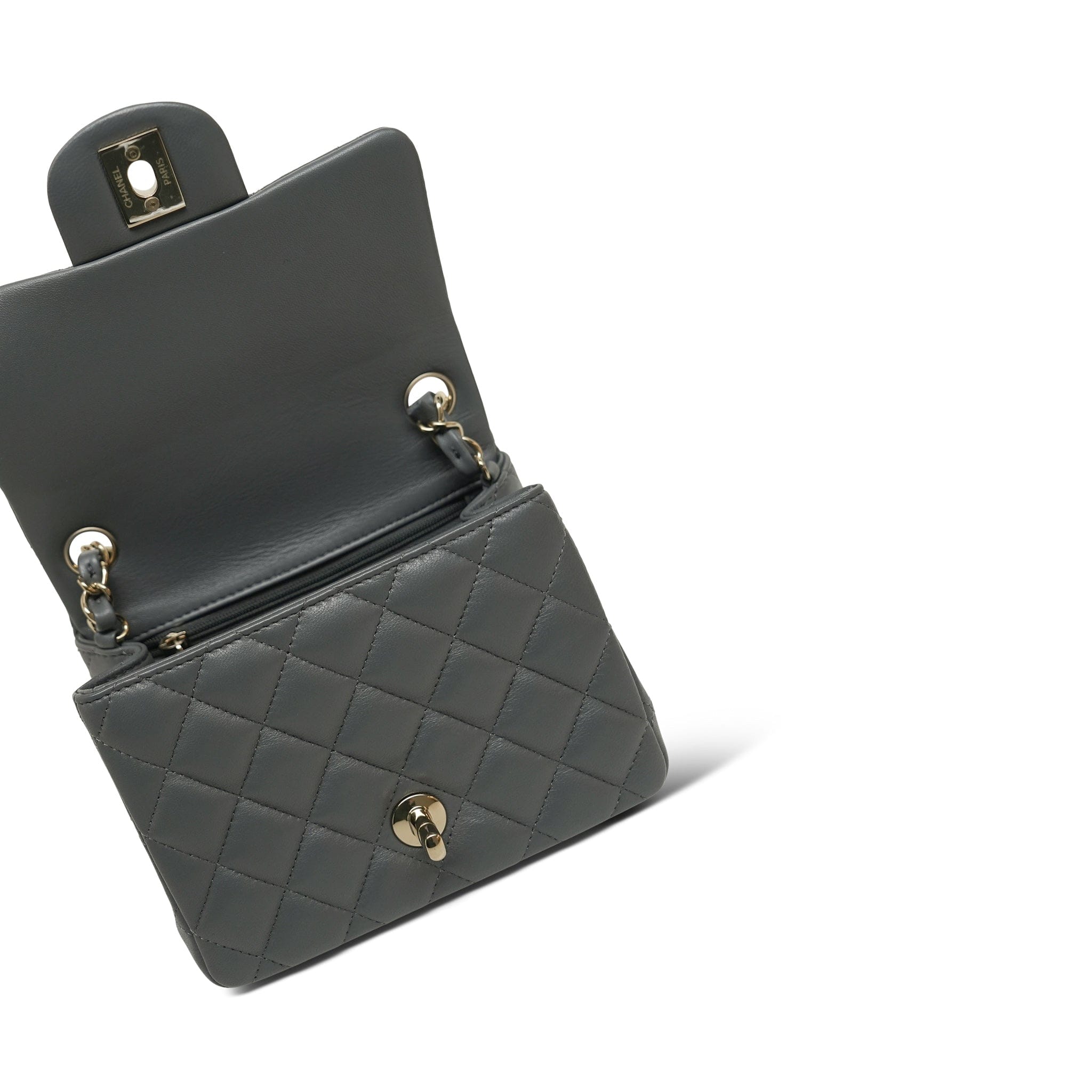25B Dark Grey Lambskin Quilted Mini Square Flap Light Gold Hardware