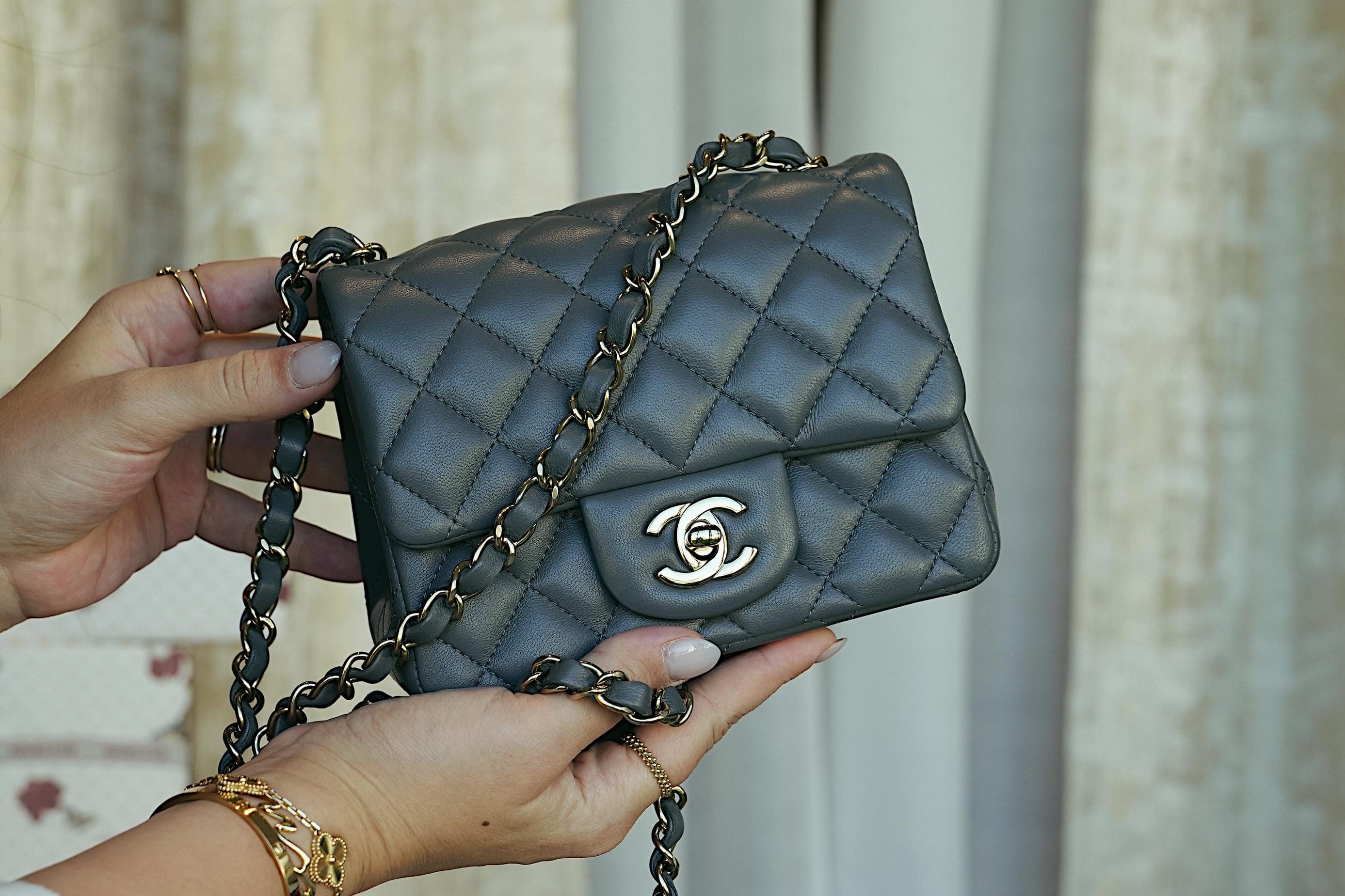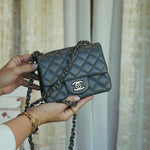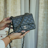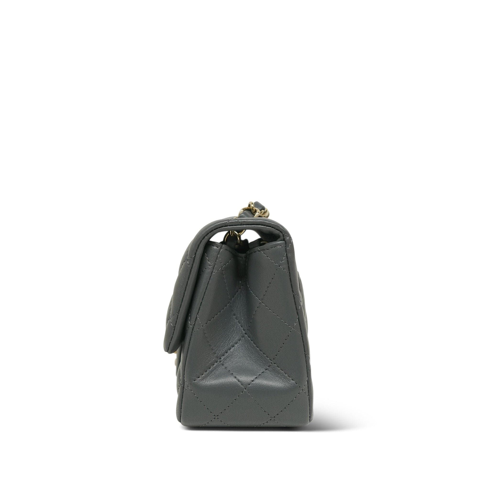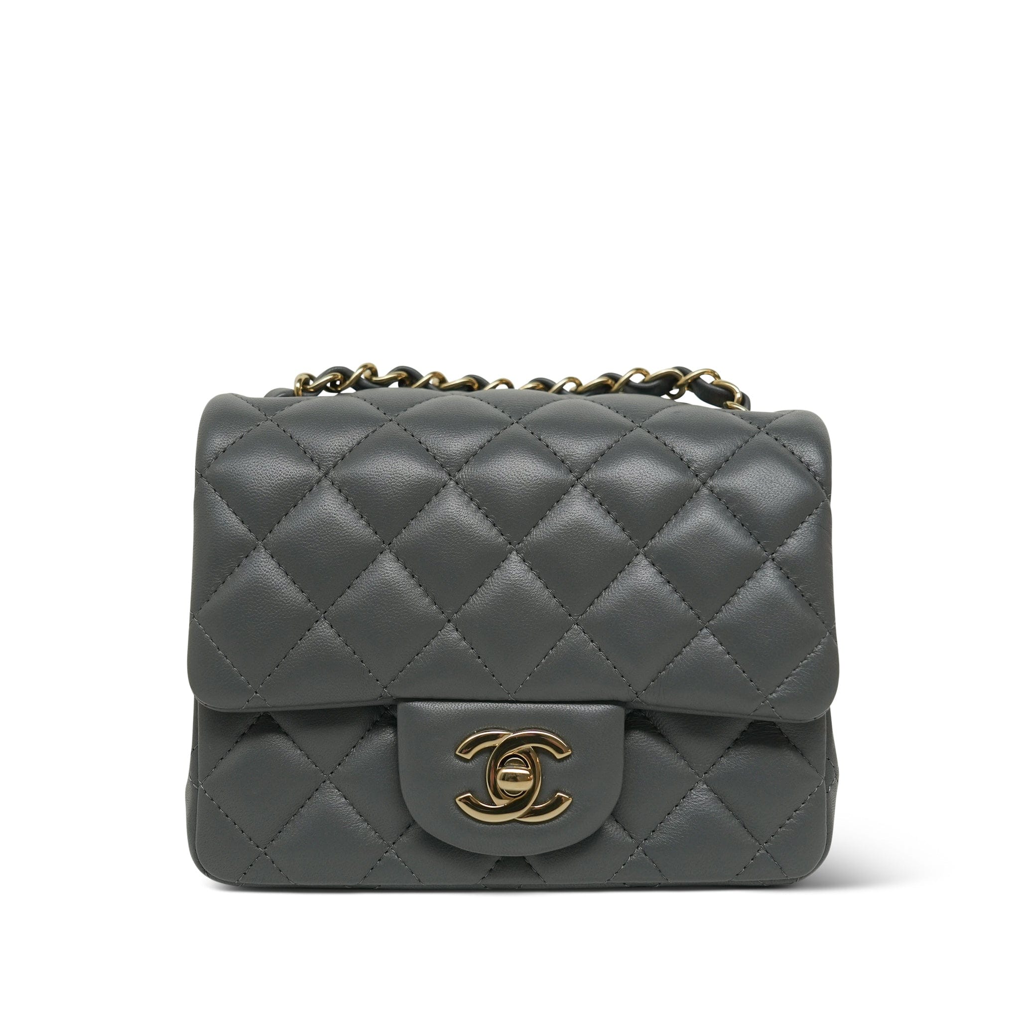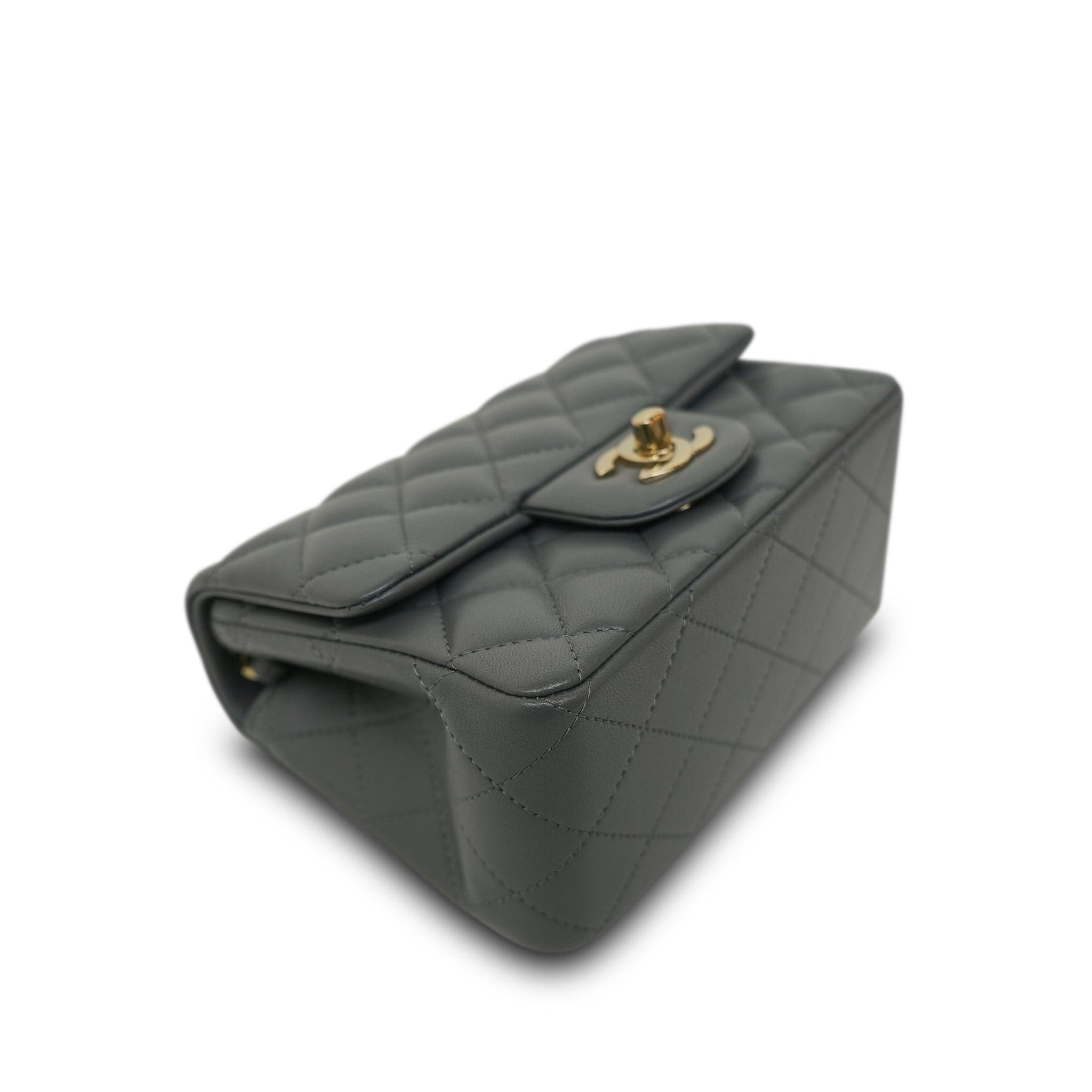 25B Dark Grey Lambskin Quilted Mini Square Flap Light Gold Hardware