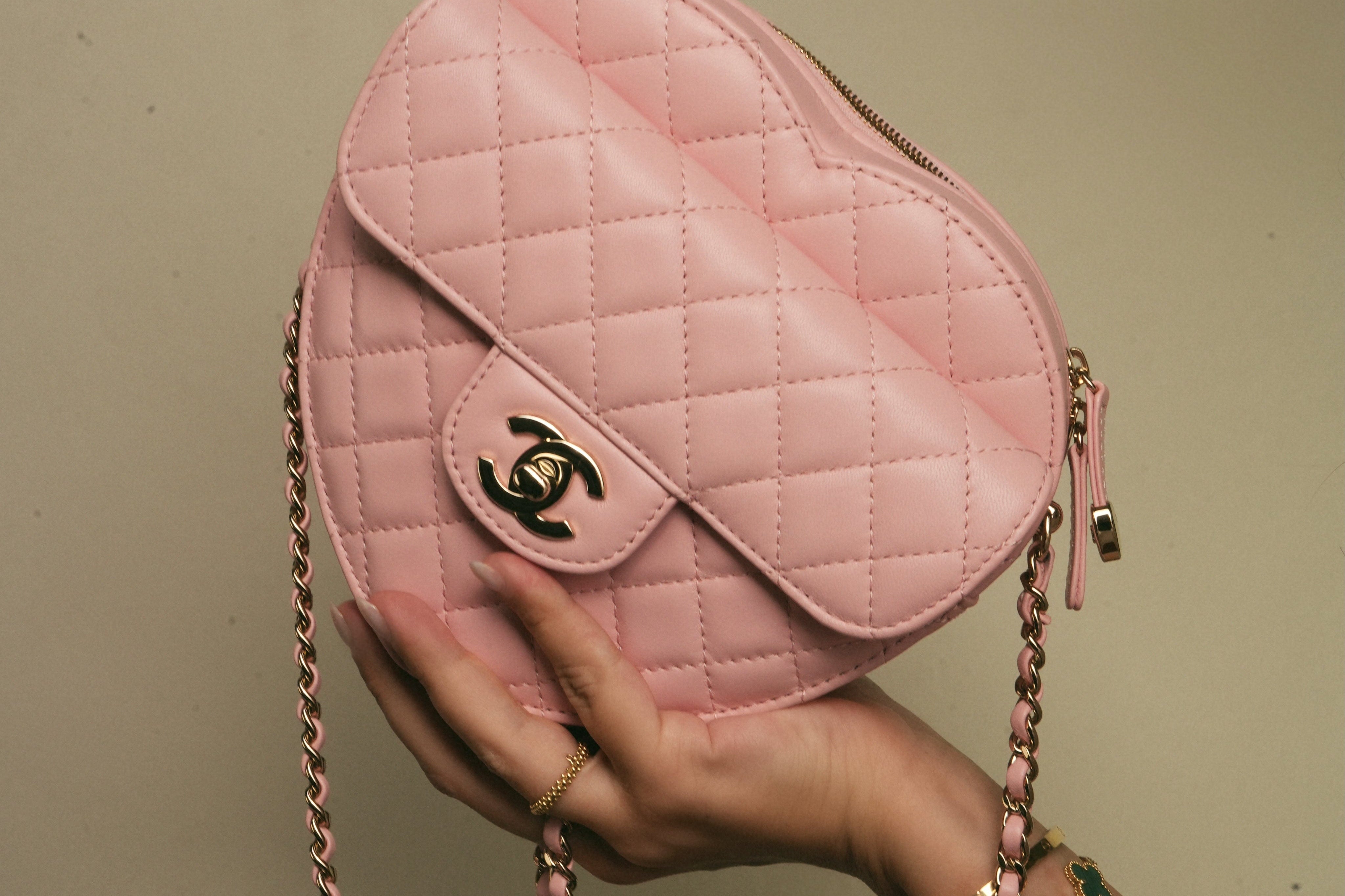 25B Light Pink Lambskin Quilted Heart Bag Large LGHW