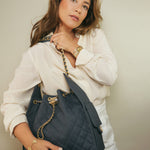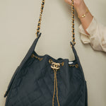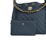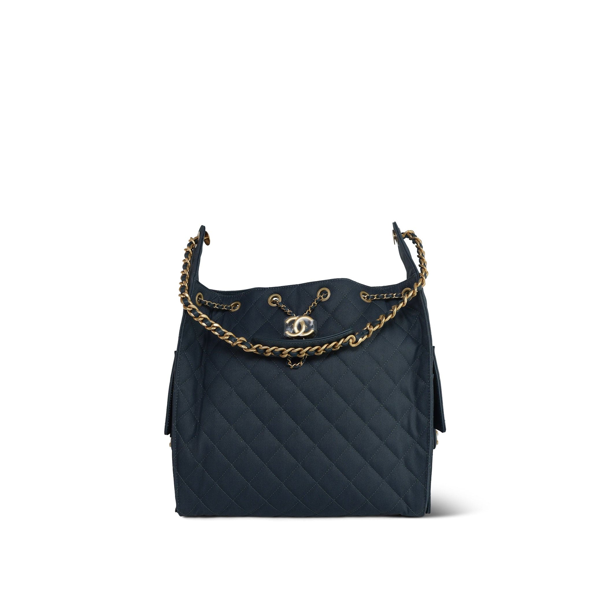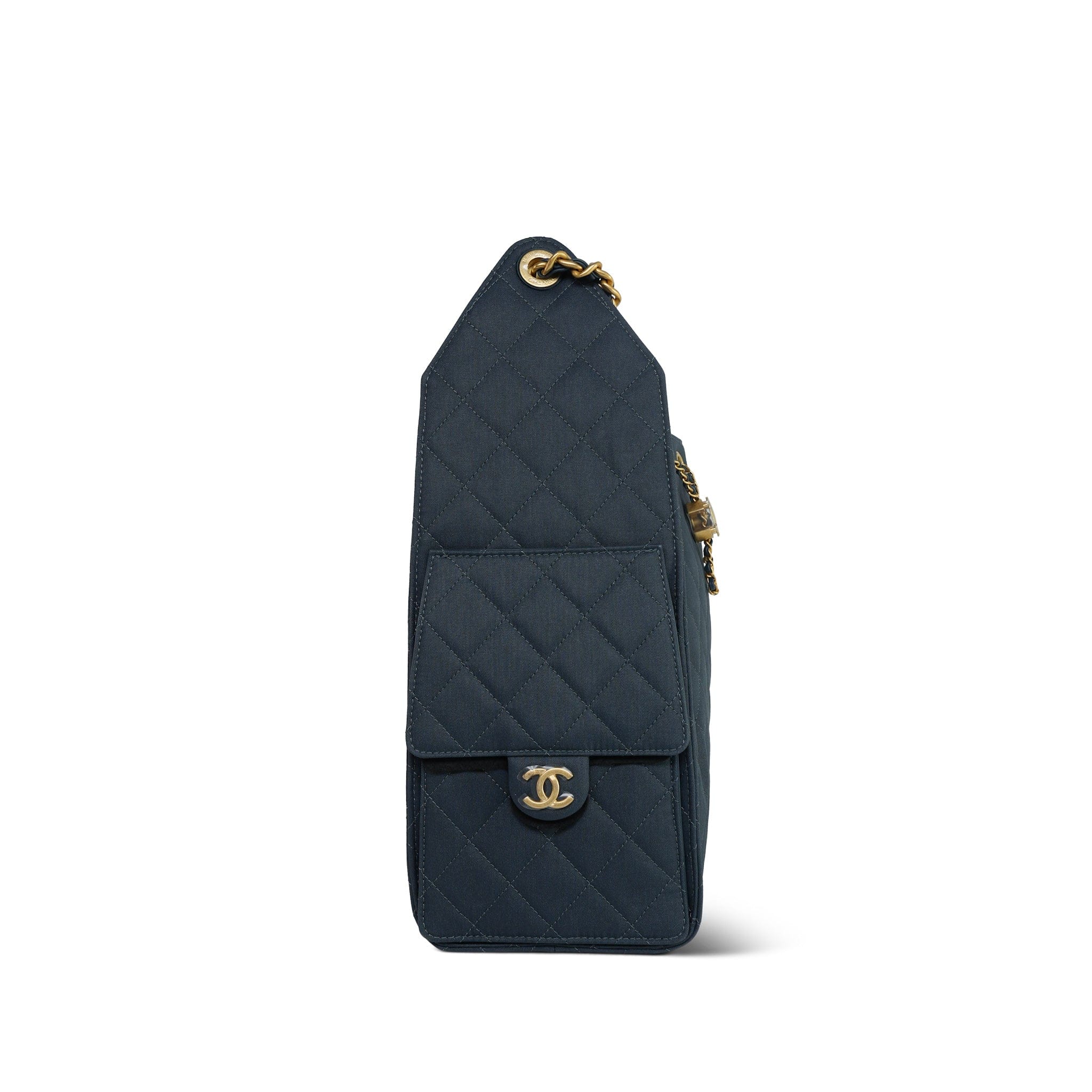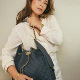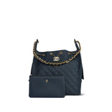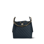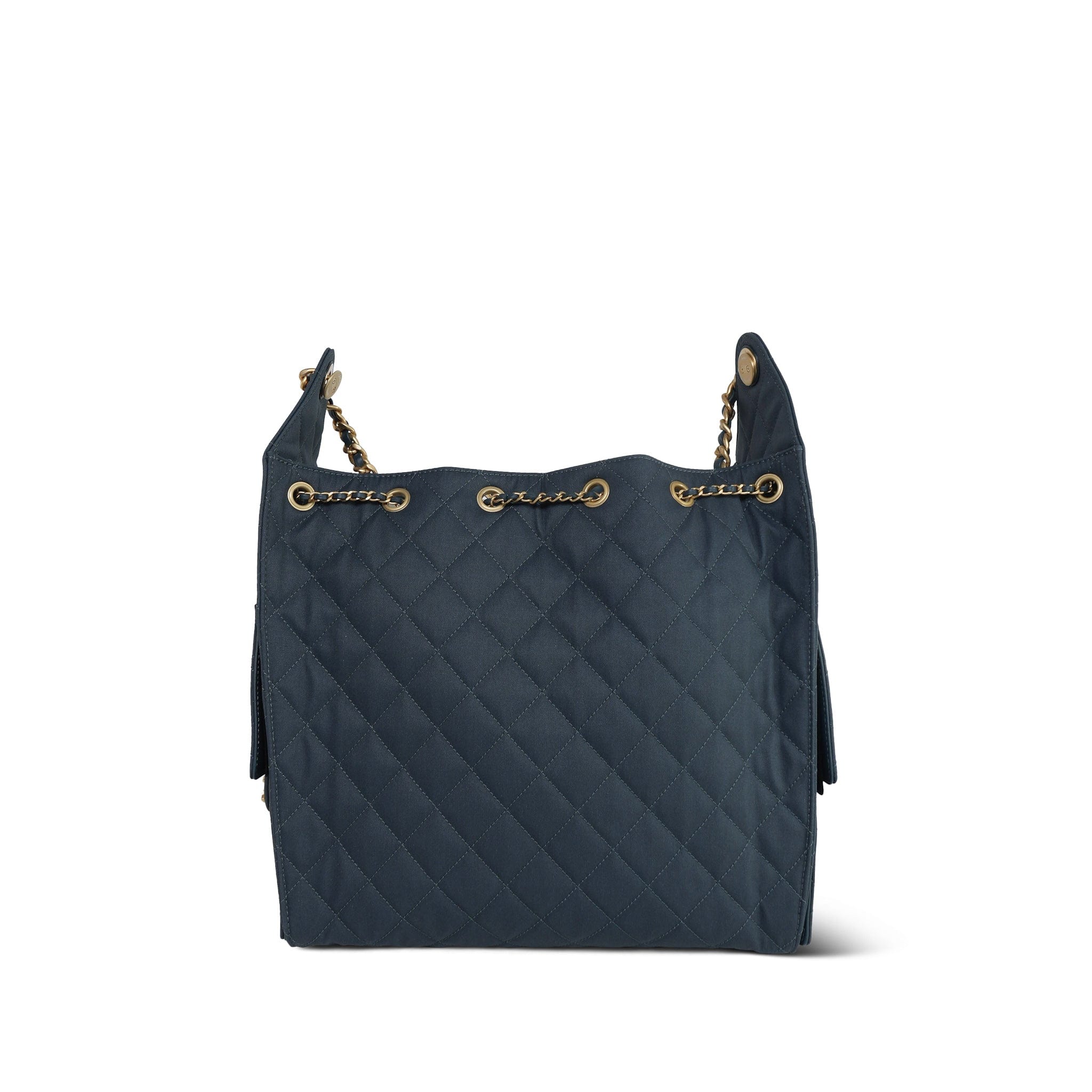 25B Navy Canvas Quilted 25 Hobo Bag Medium Aged Gold Hardware