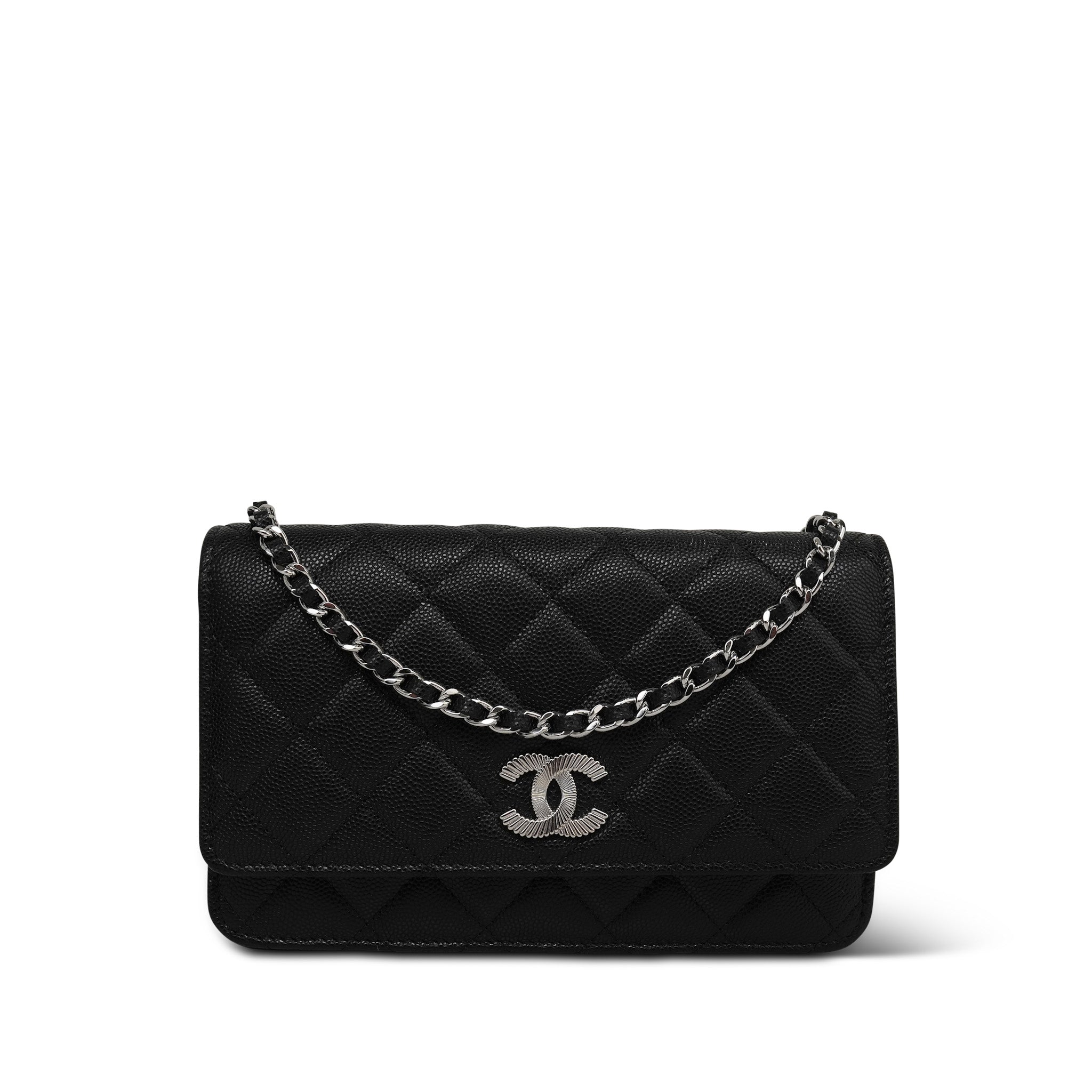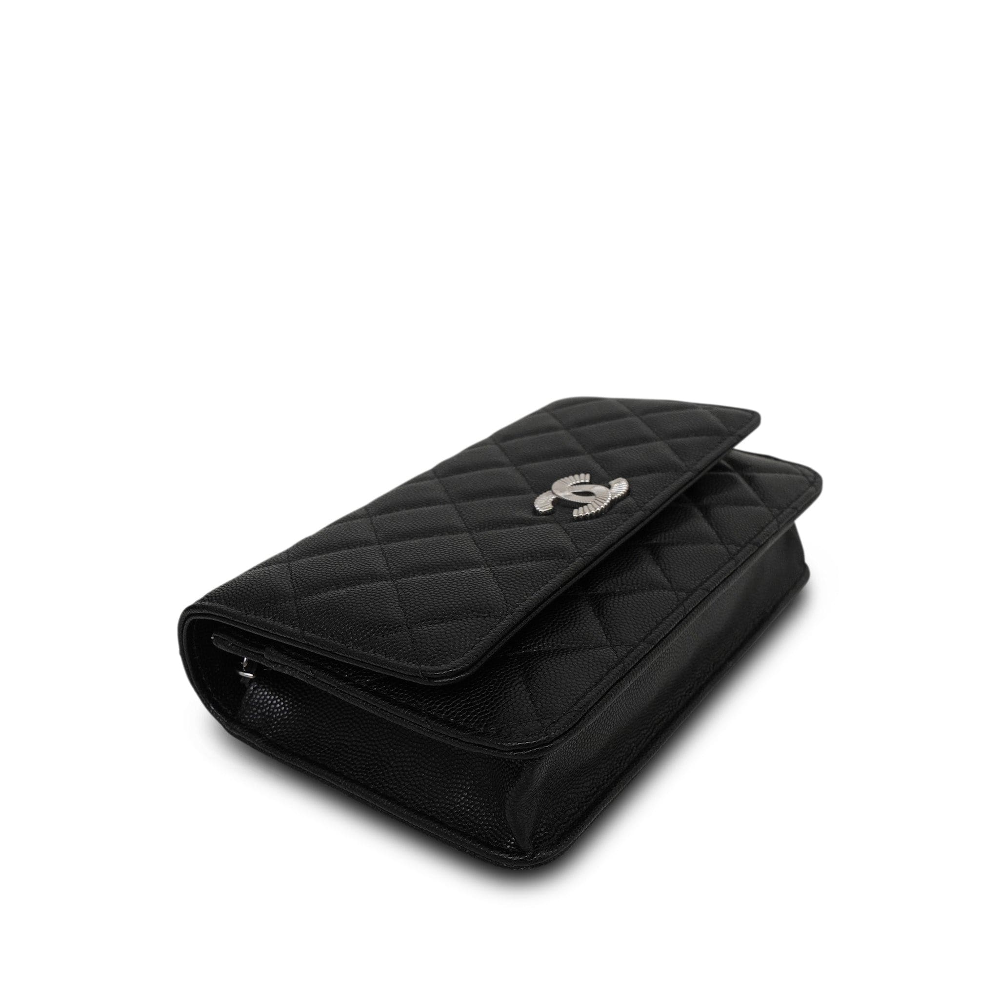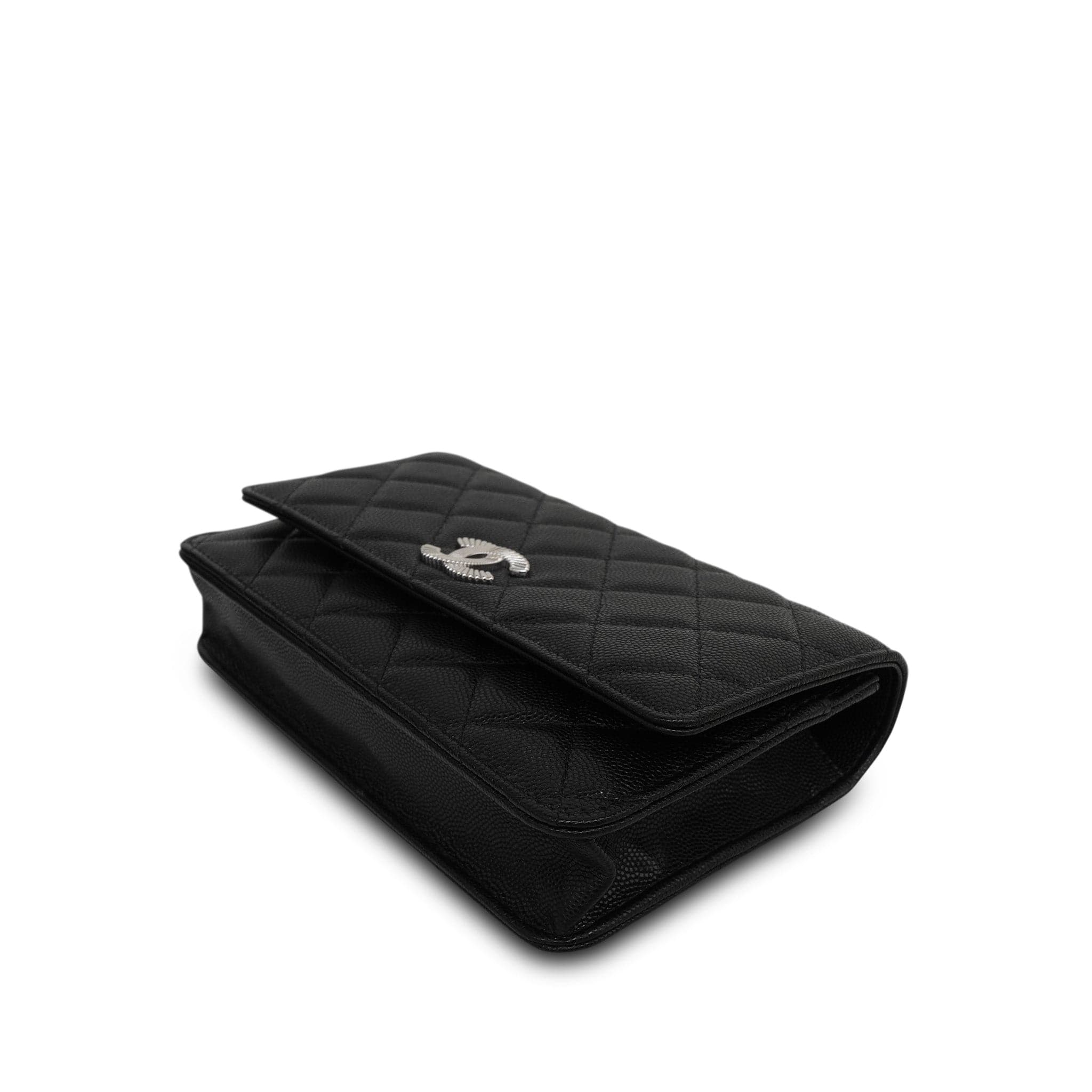 25C Black Caviar Fish Print Quilted Wallet on Chain WOC LGHW