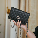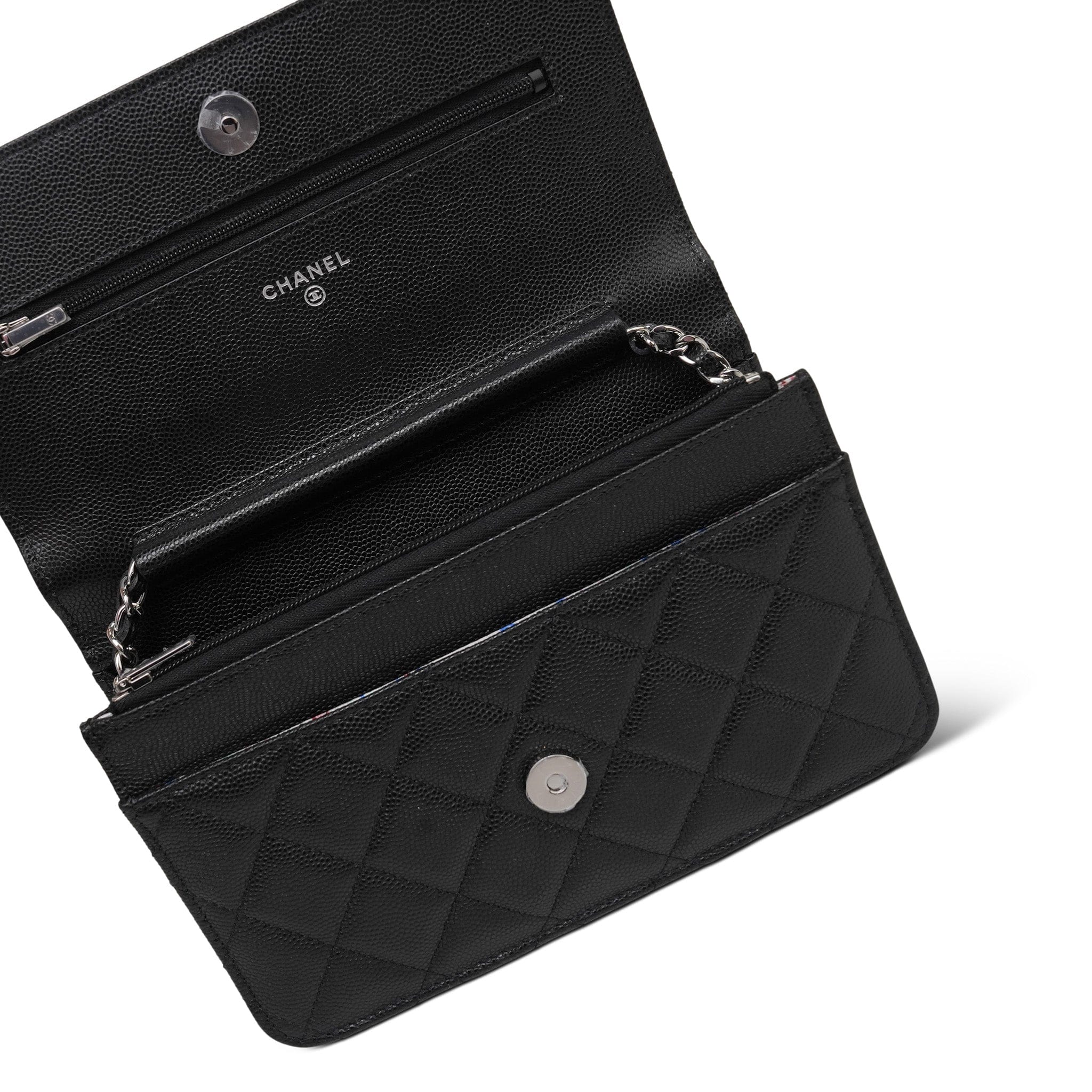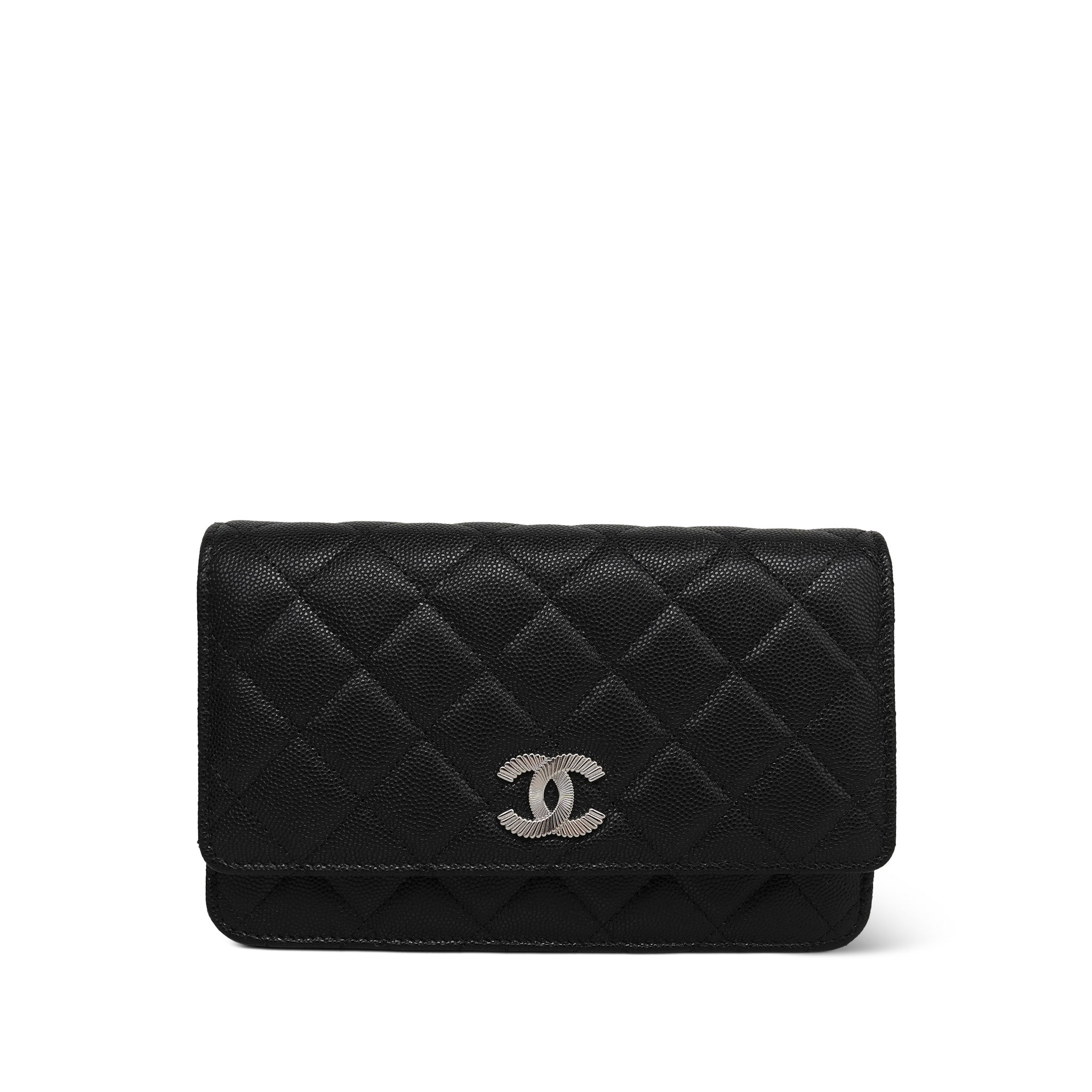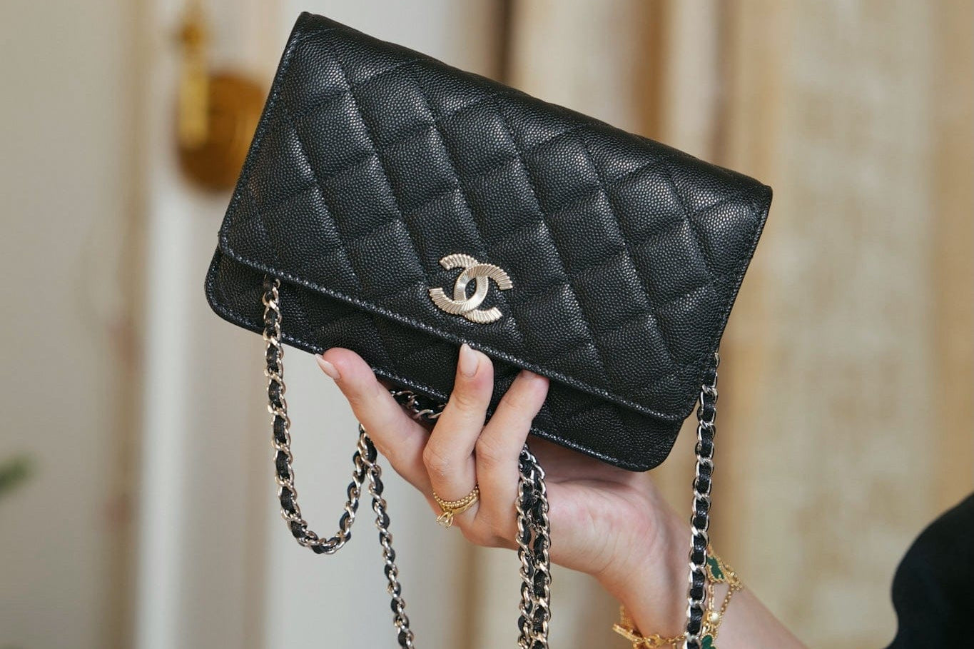 25C Black Caviar Fish Print Quilted Wallet on Chain WOC LGHW