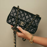 25C Black Lambskin Quilted Mini Rectangular Flap Light Gold Hardware