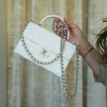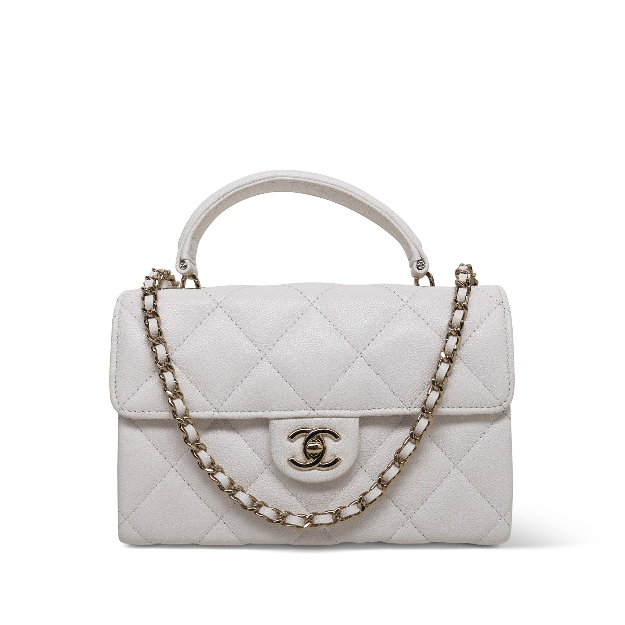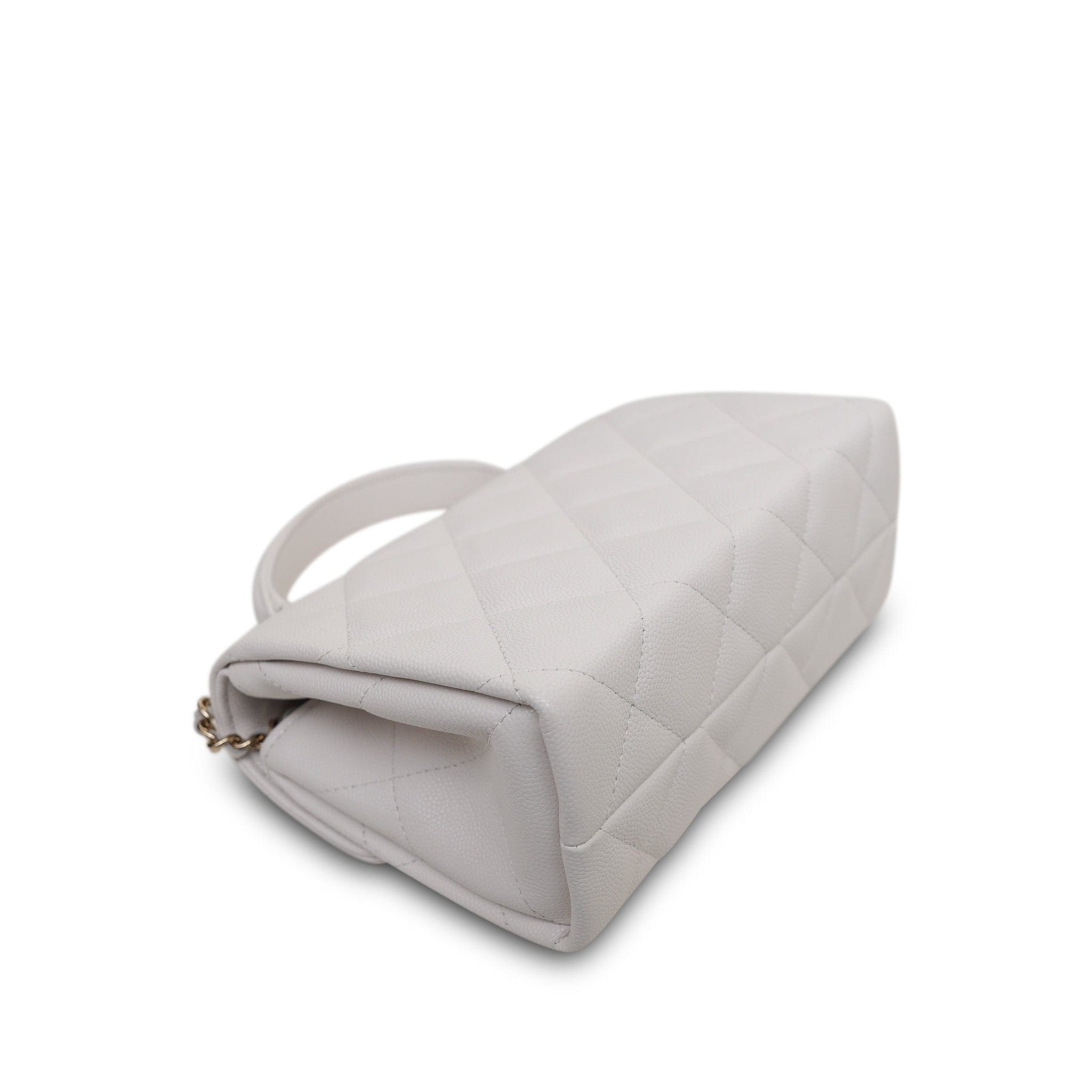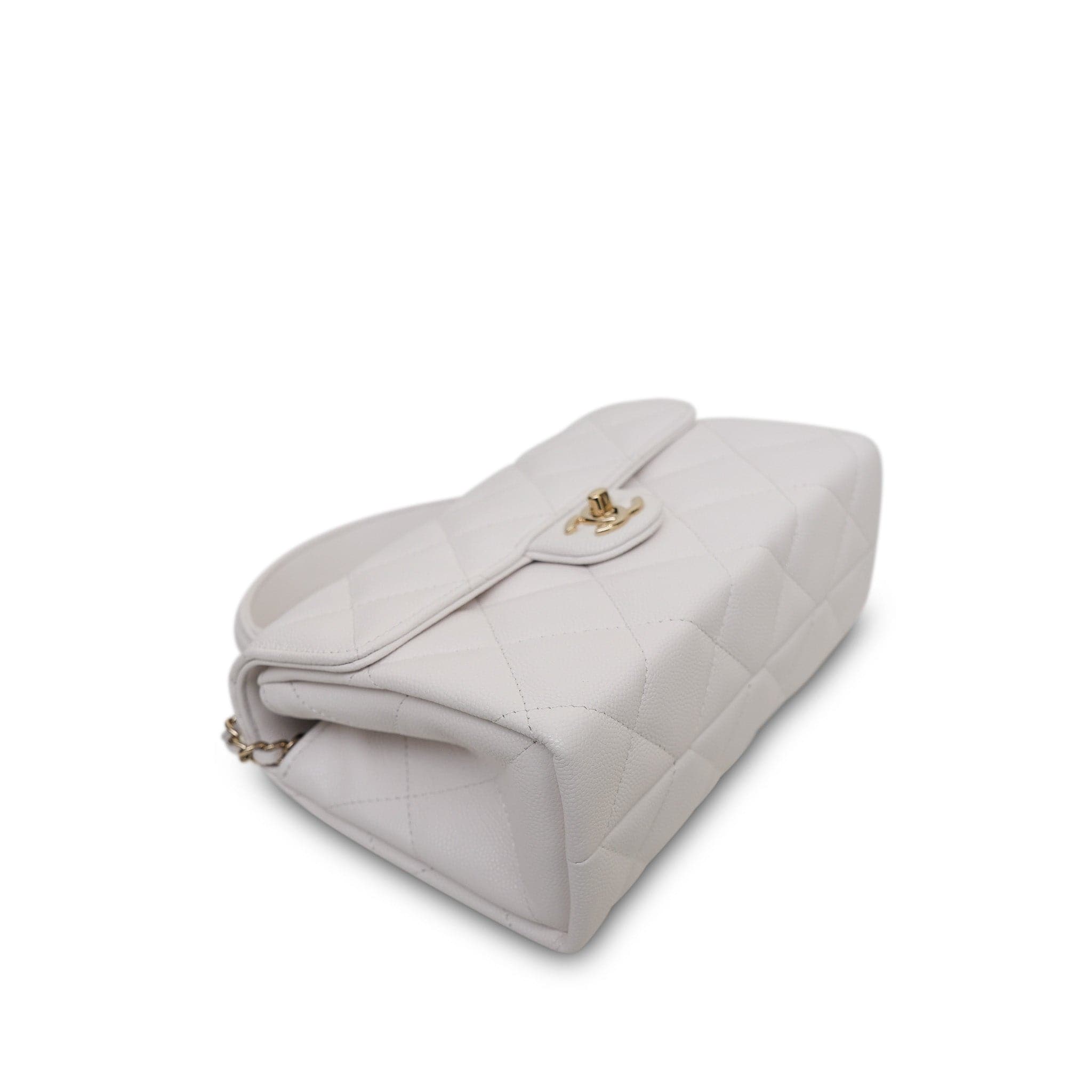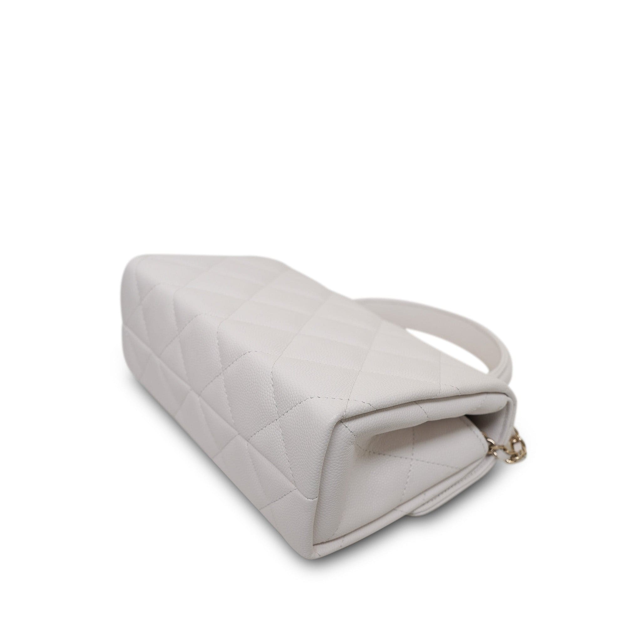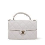 25S White Caviar Quilted Top Handle on Chain LGHW