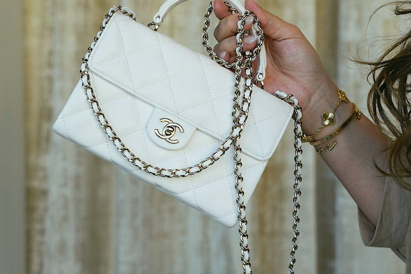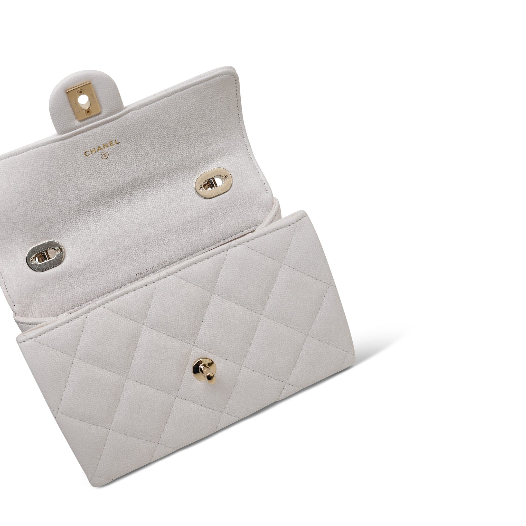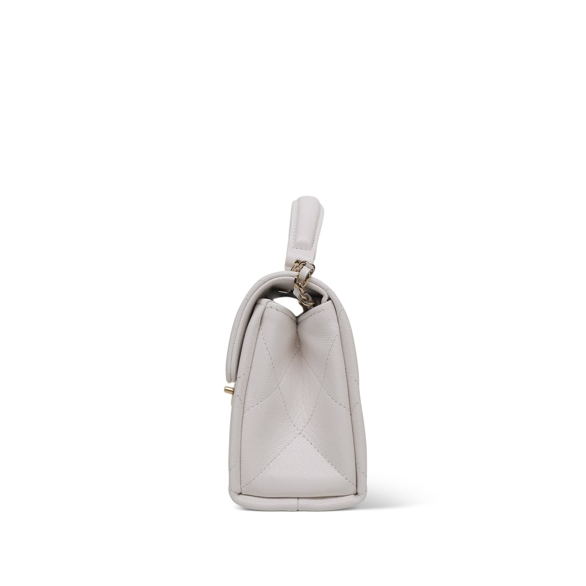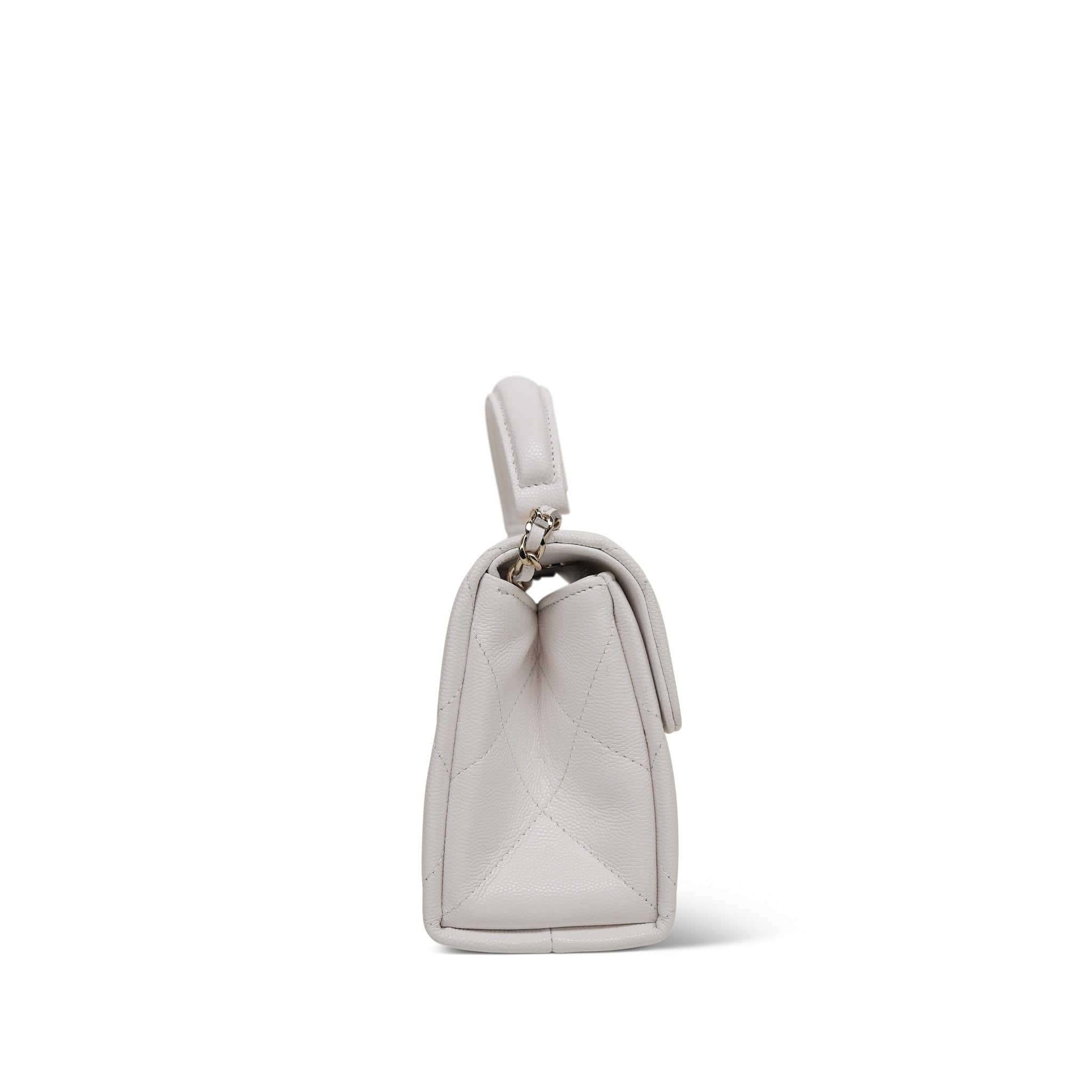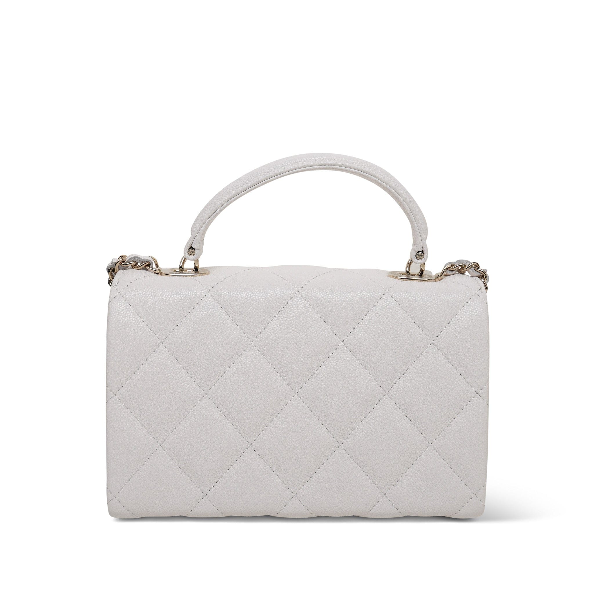 25S White Caviar Quilted Top Handle on Chain LGHW