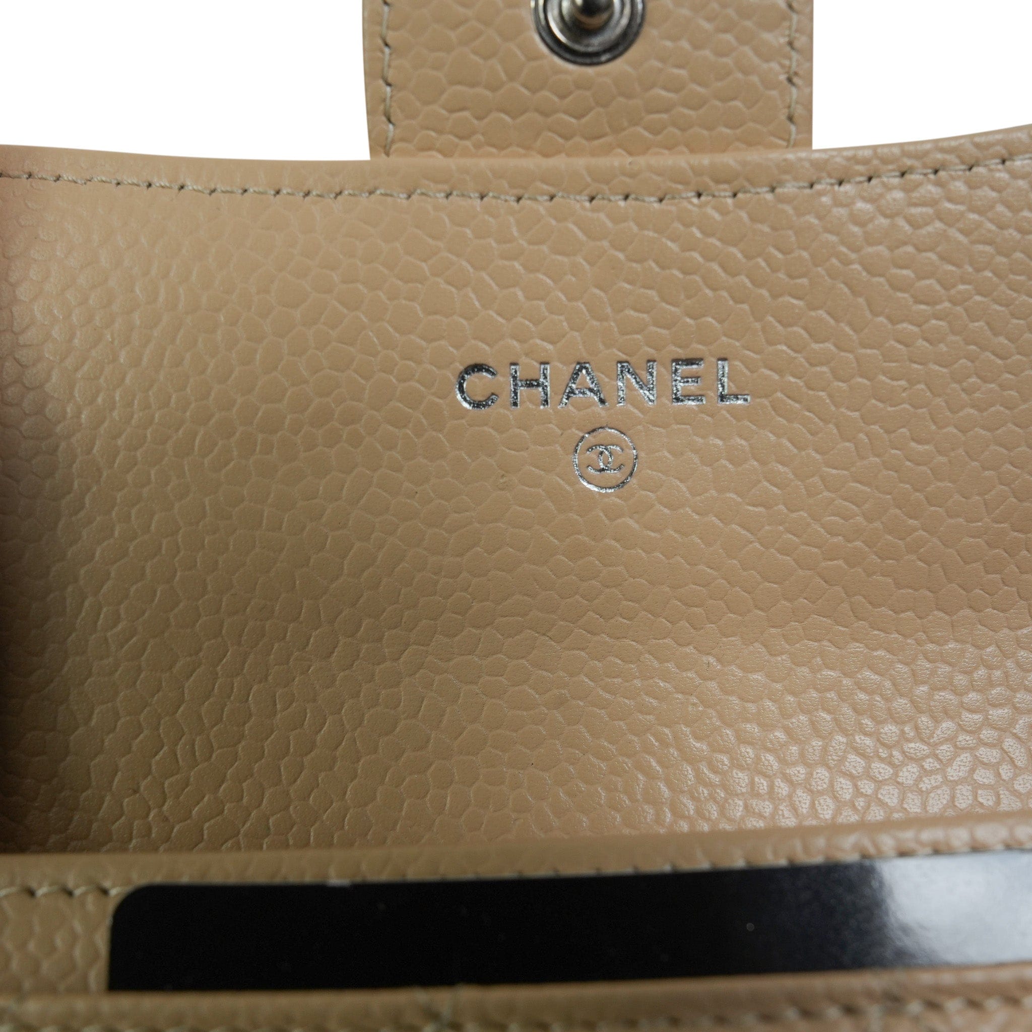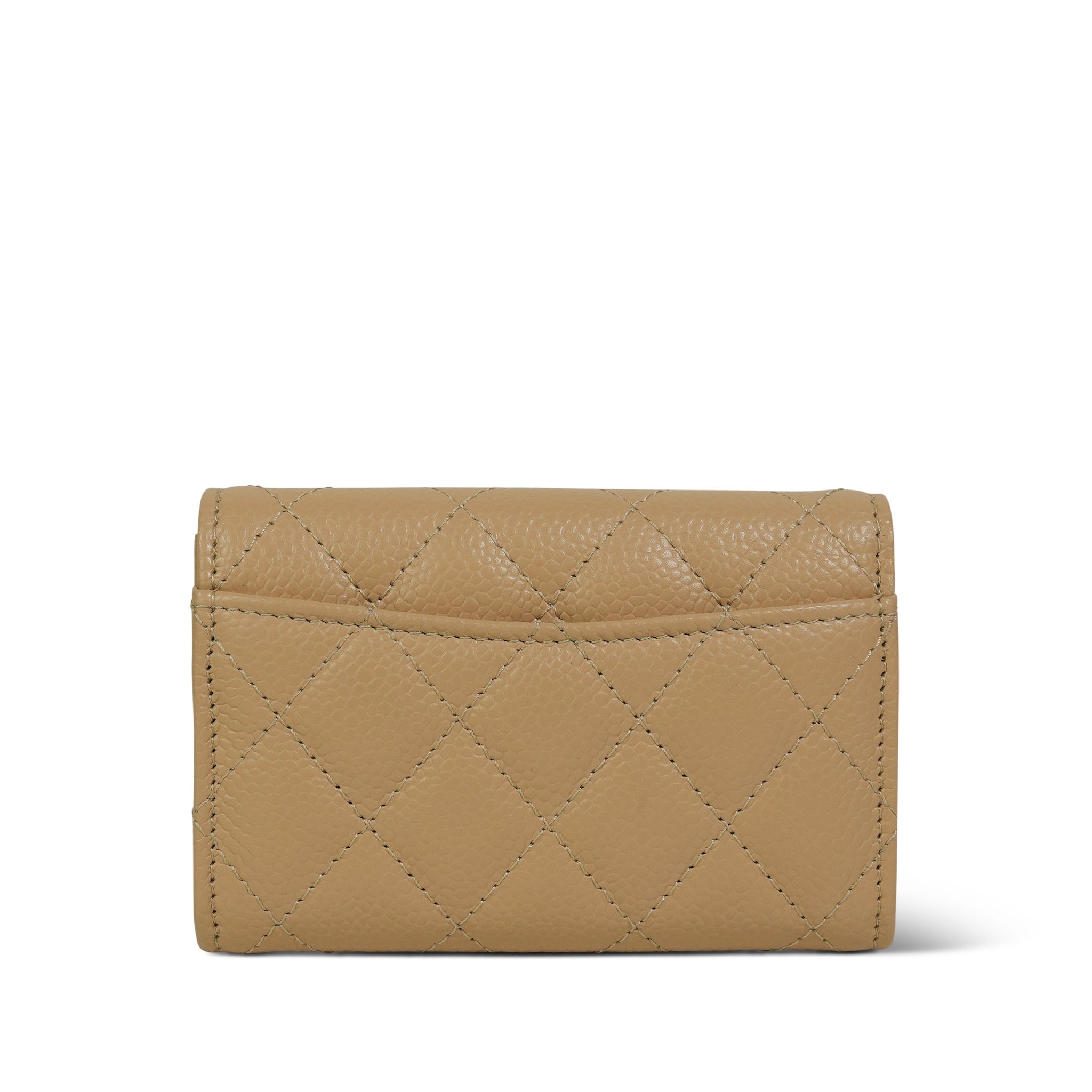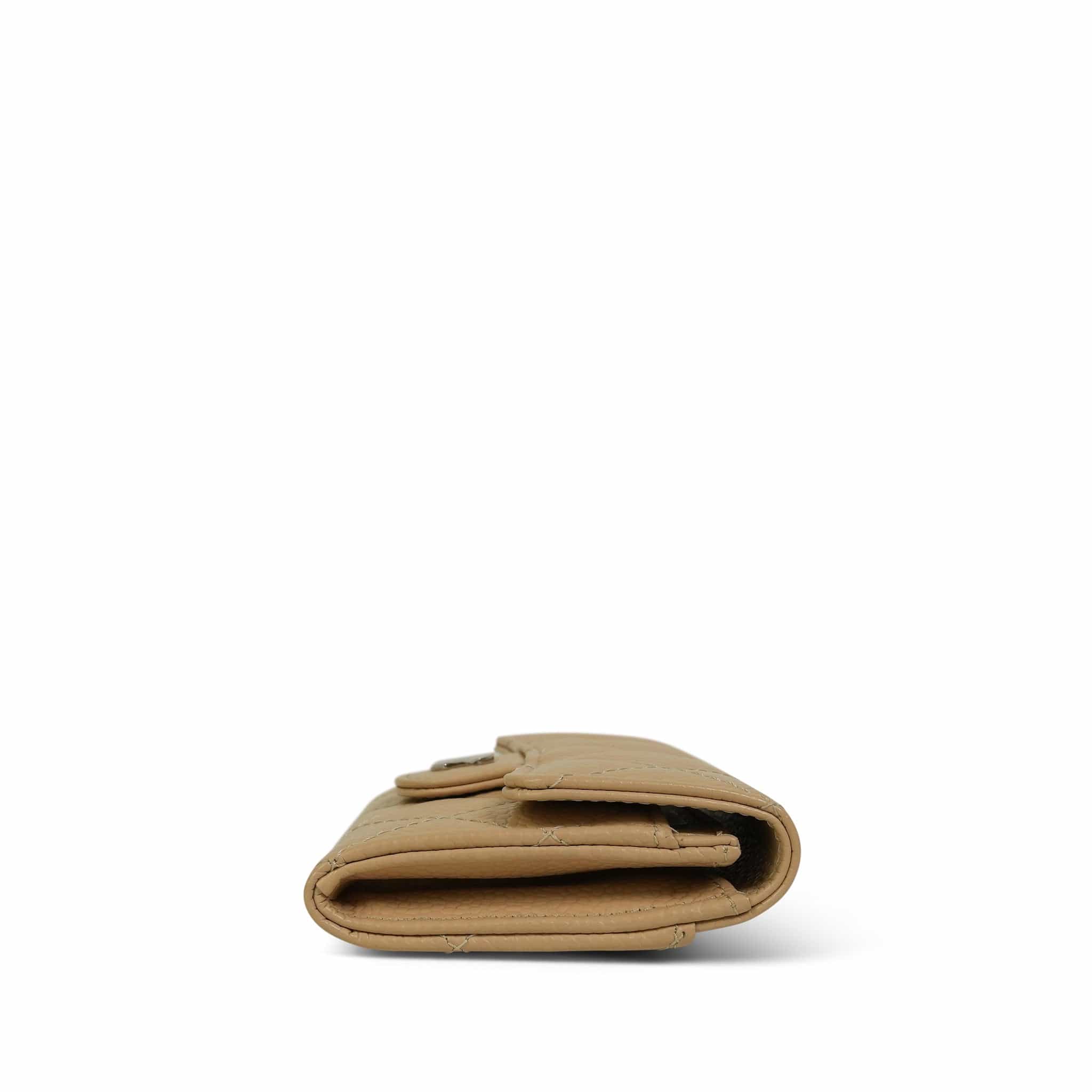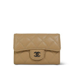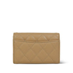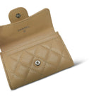 Beige Caviar Quilted Classic Flap Card Holder Silver Hardware