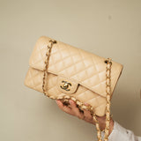 Beige Clair Caviar Quilted Classic Flap Small GHW