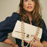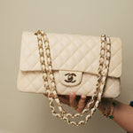 20C Beige/Ivory Caviar Quilted Classic Flap Medium LGHW