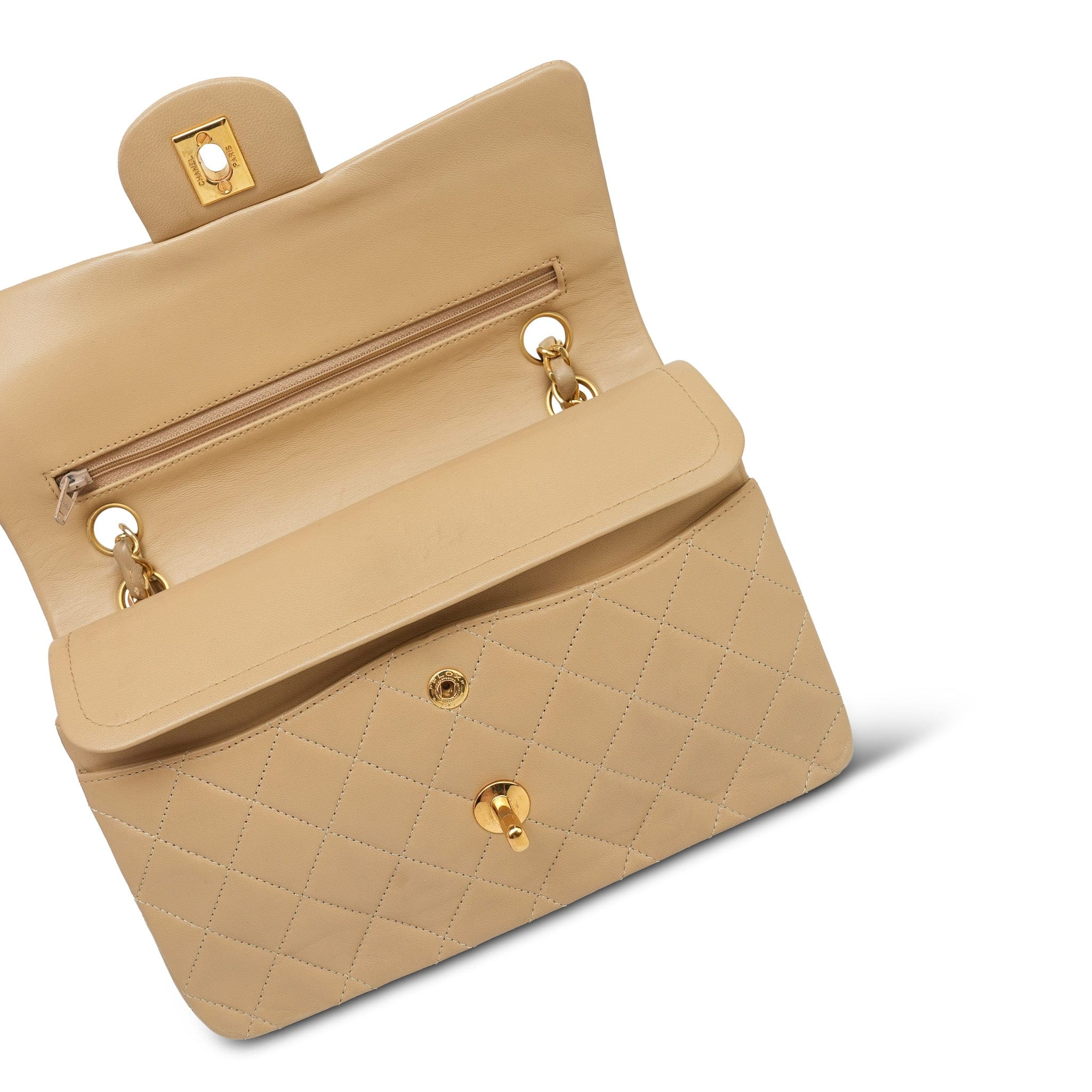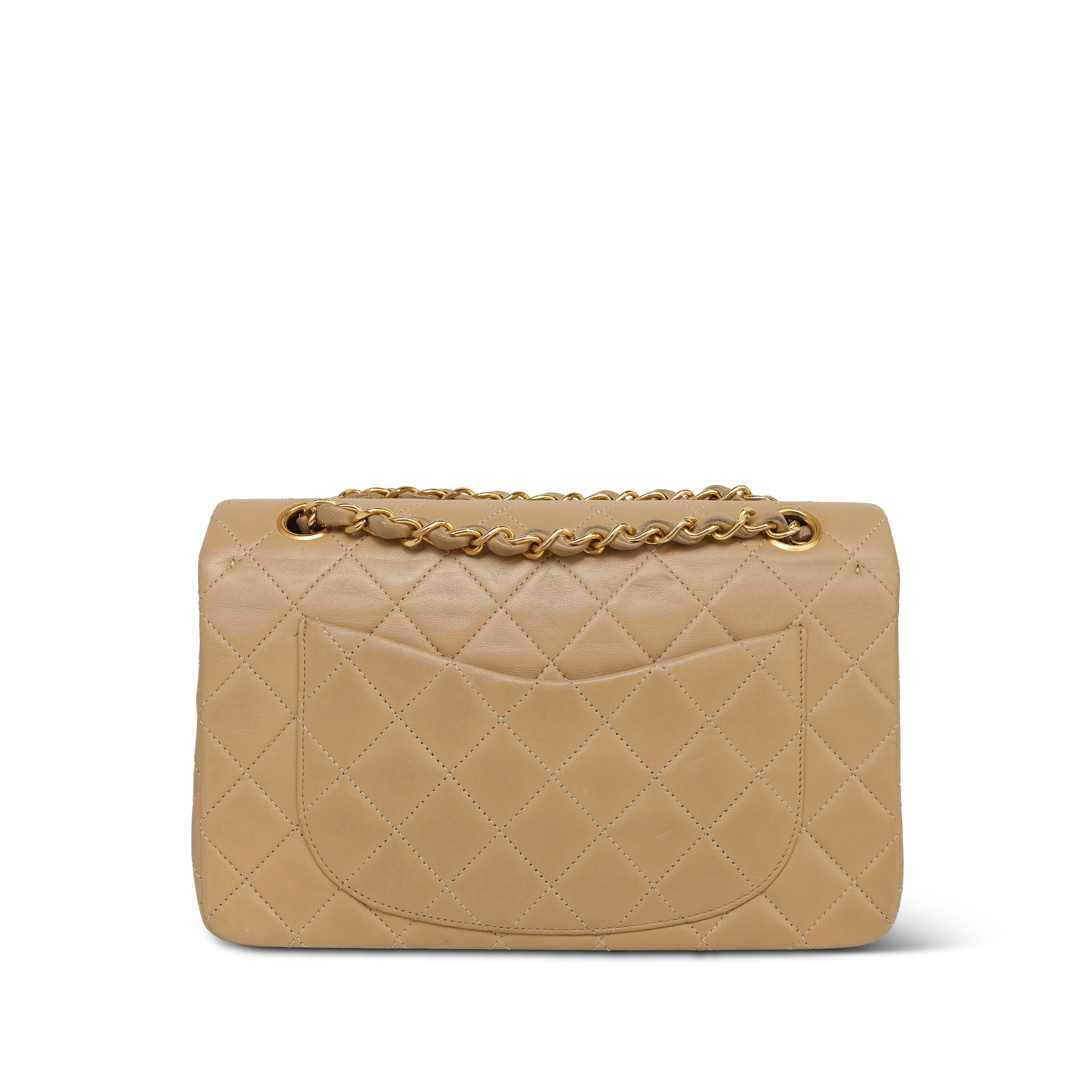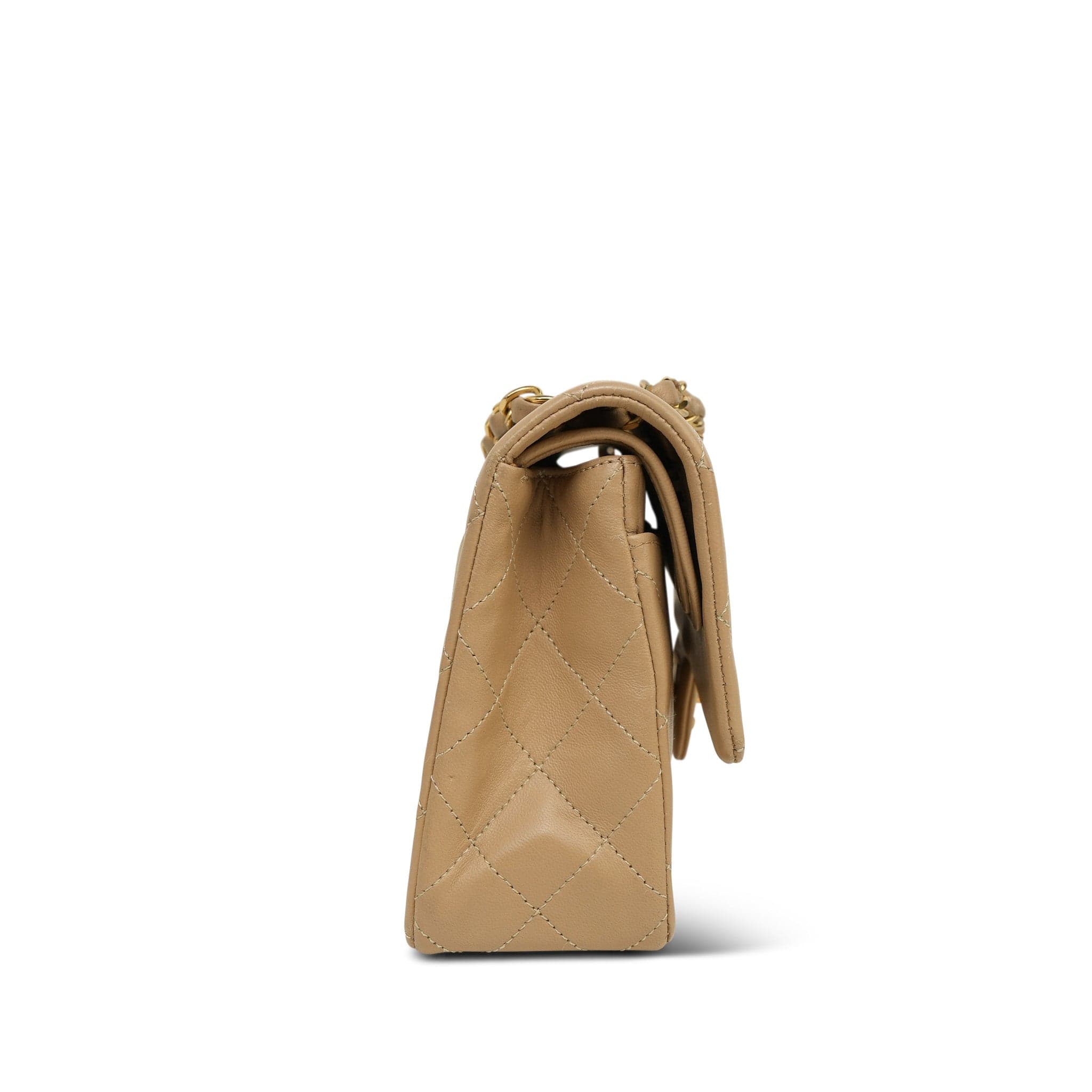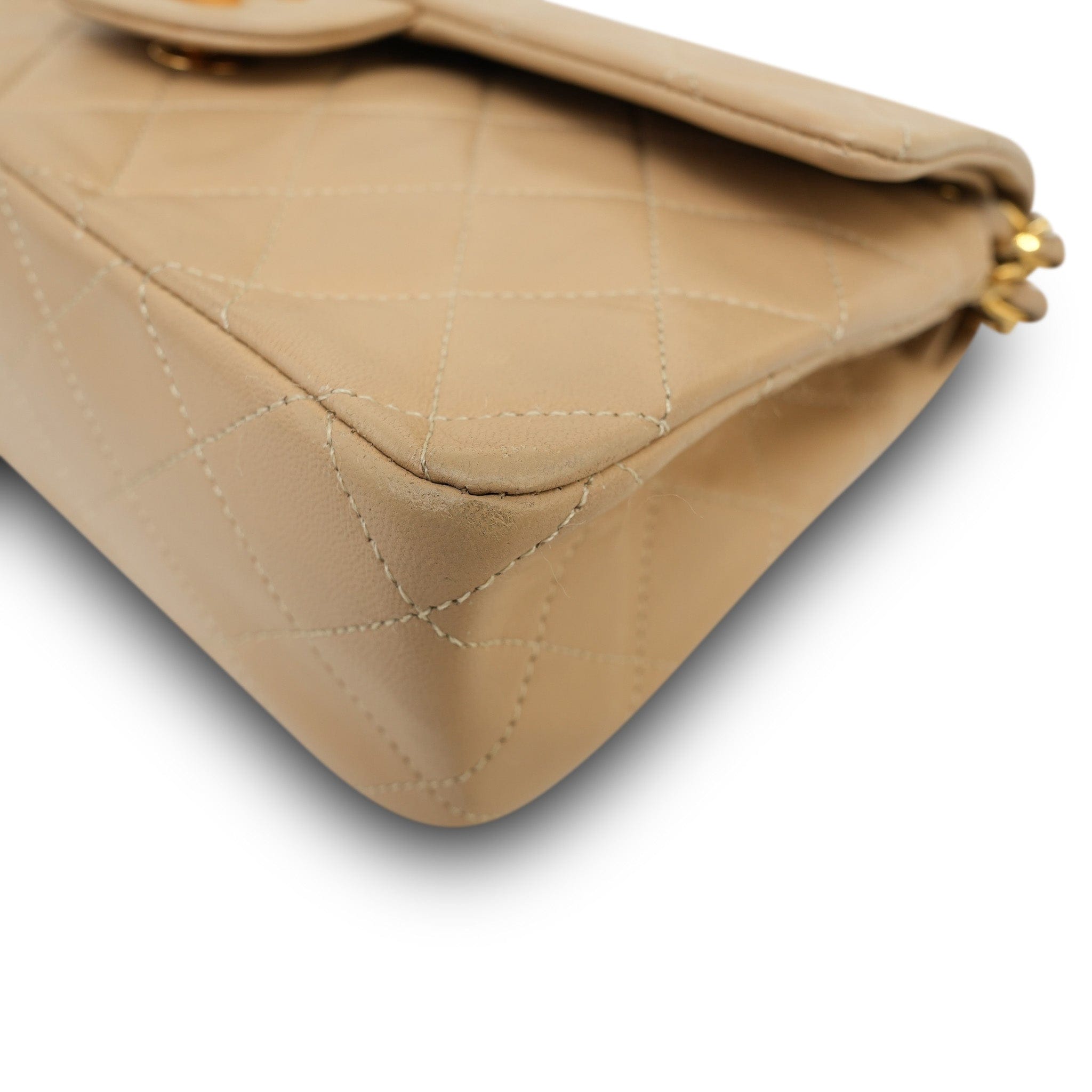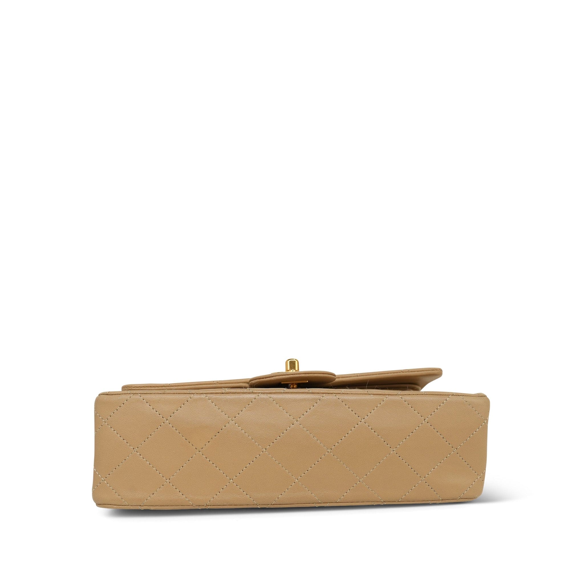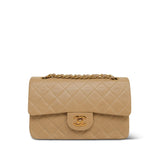 Beige Lambskin Quilted Double Flap Small GHW