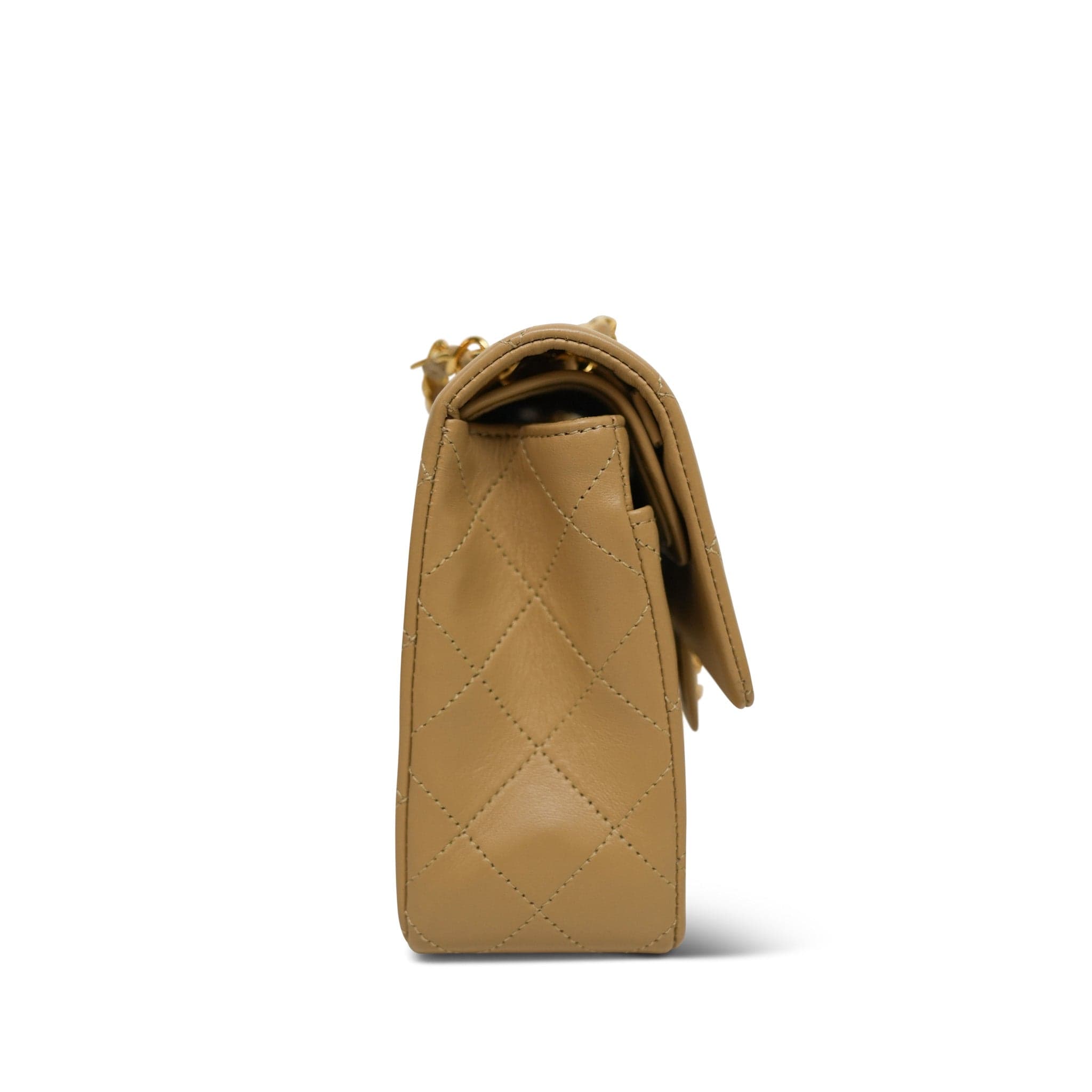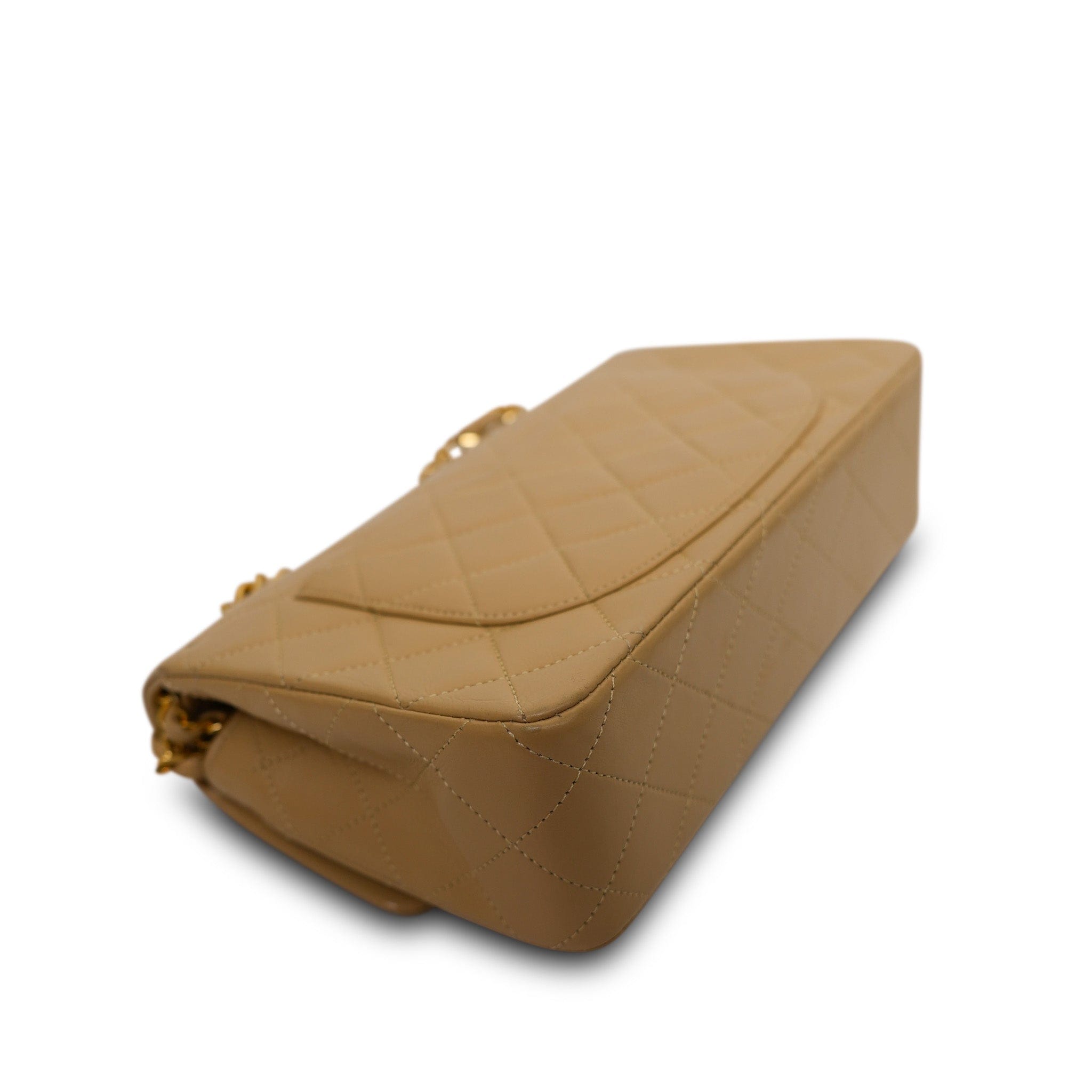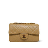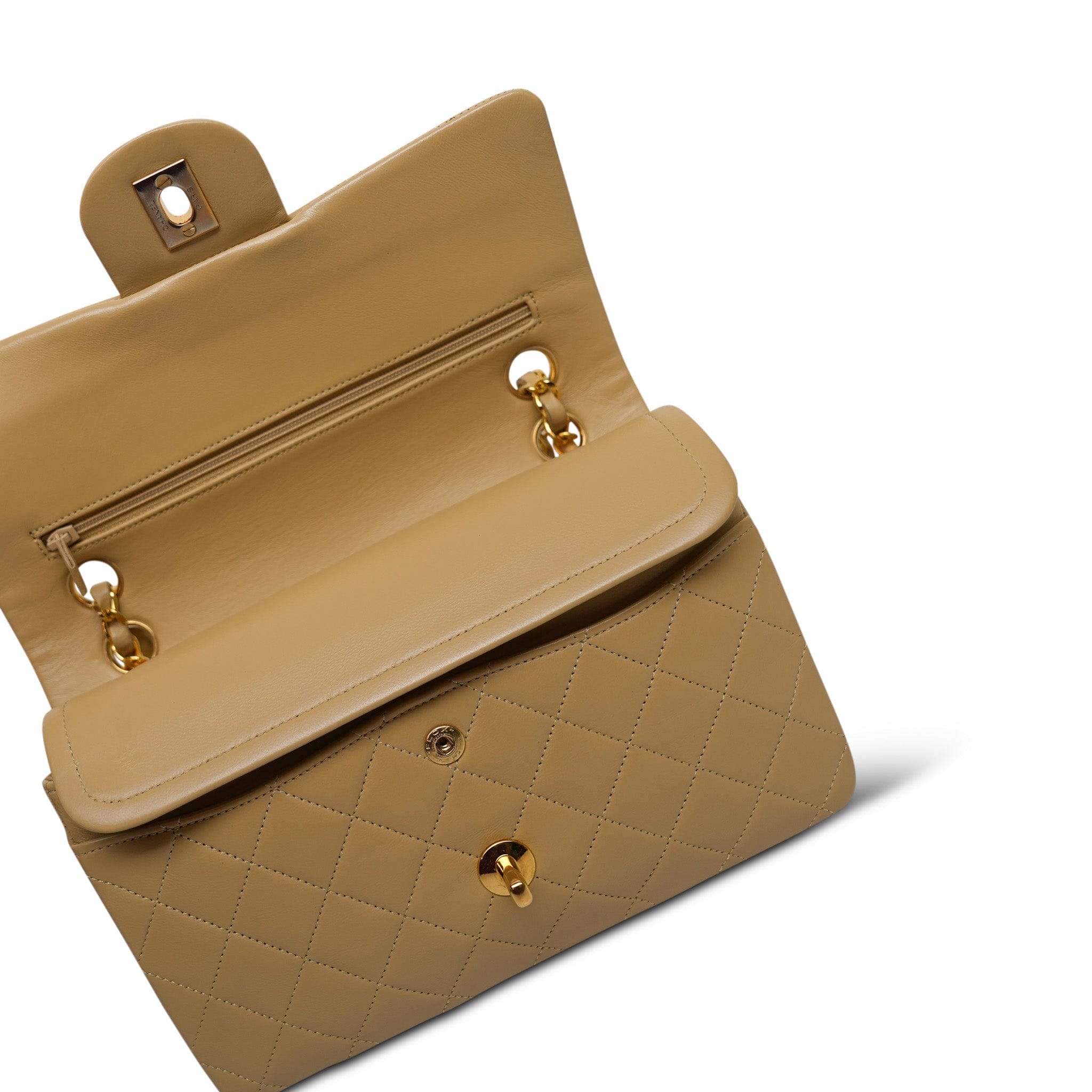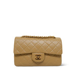 Beige Lambskin Quilted Small Classic Flap Gold Hardware